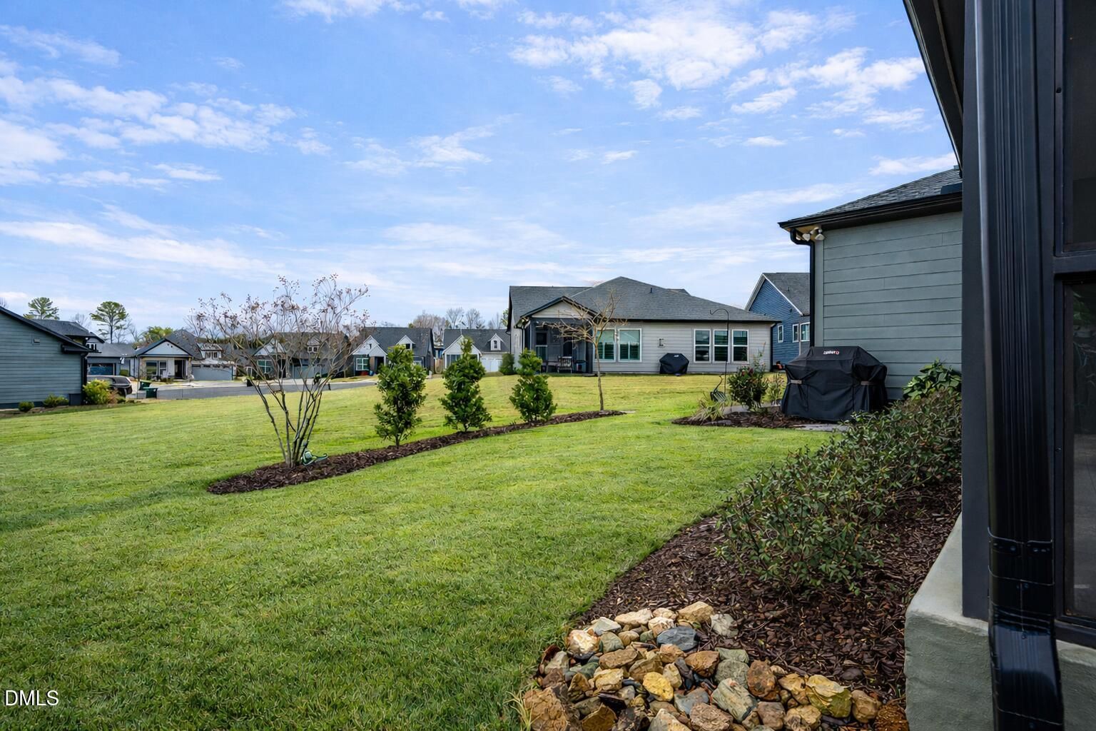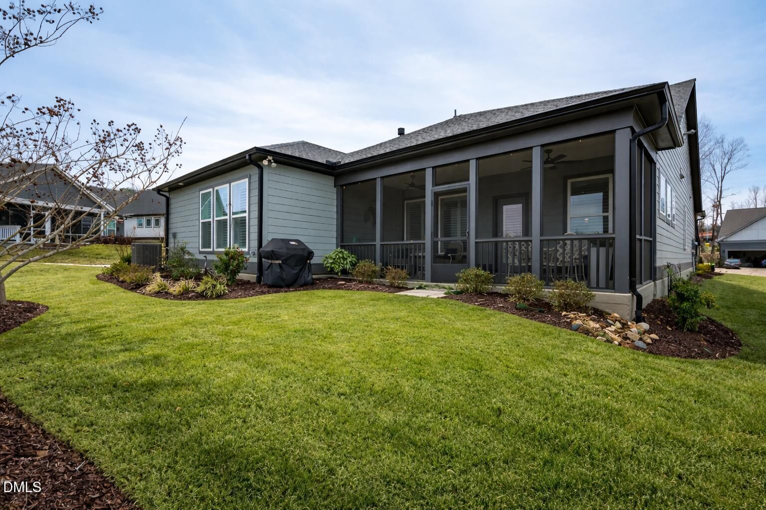BETTER THAN NEW single-level living in Encore, Chatham Park's 55+ community! This beautifully designed home sits on a premium homesite with open space on TWO SIDES in a completed phase of the development without construction traffic & noise or retaining walls. David Weekley's EDGEMONT floorplan is one of the wider layouts to accommodate the home's ranch design, which features a bright, open-concept living area with GAS FIREPLACE and a separate home office w/ French doors. The central chef's kitchen includes a large island, tile backsplash, quartz counters & stainless appliances. All three bedrooms are on the main level, including a private primary suite w/ zero-entry shower, dual vanities & large walk-in closet. Two large guest bedrooms in front of the home can comfortably fit king-sized beds with room to spare and the private half-bath and spacious 10x23 screened porch are perfect for guests when entertaining. Don't miss the WALK-UP STORAGE located above the 2-car garage! This green-certified home has a tankless water heater, 2x6 exterior walls and other high-performance features making it ~34% more energy-efficient than a typical new home. There is also a NEMA 14-50 EV charging outlet for your electric vehicle. OTHER IMPROVEMENTS include louvered shutters throughout ($10k), tile flooring on screened porch, upgraded interior paint, additional wood flooring, updated kitchen hardware & pull-out shelving, additional landscaping, updated lighting fixtures & ceiling fans, extended appliance warranties through Jan 2028, and more! Encore is a 55+ resort-style community with included lawn maintenance and exclusive access to a Lifestyle Club with 5000sf clubhouse, well-equipped fitness center, tennis & pickleball courts, putting green, pool & hot tub, indoor/outdoor gathering spaces, meditation garden & gas firepits, meeting spaces, miles of scenic trails, and a lifestyle director coordinating year-round events & activities! The convenient location has easy access to US-64, 15-501 & I-540 and is just 4 min to world-class medical care, 5 min to coffee, retail, dining & entertainment, 7 min to new YMCA, 14 min to Jordan Lake & 33 min to RDU Airport. VIDEO TOUR: bit.ly/112Imagine-Video *Ask about available lender credit!