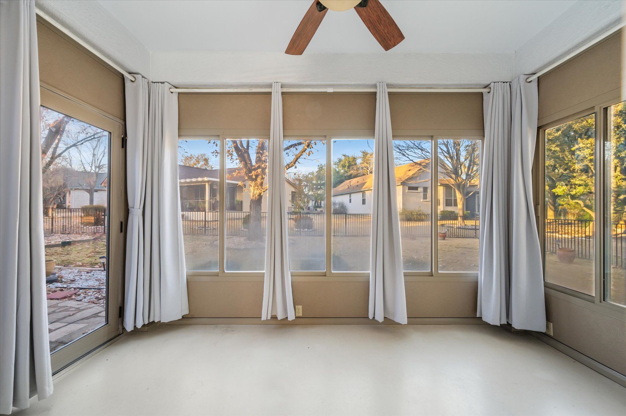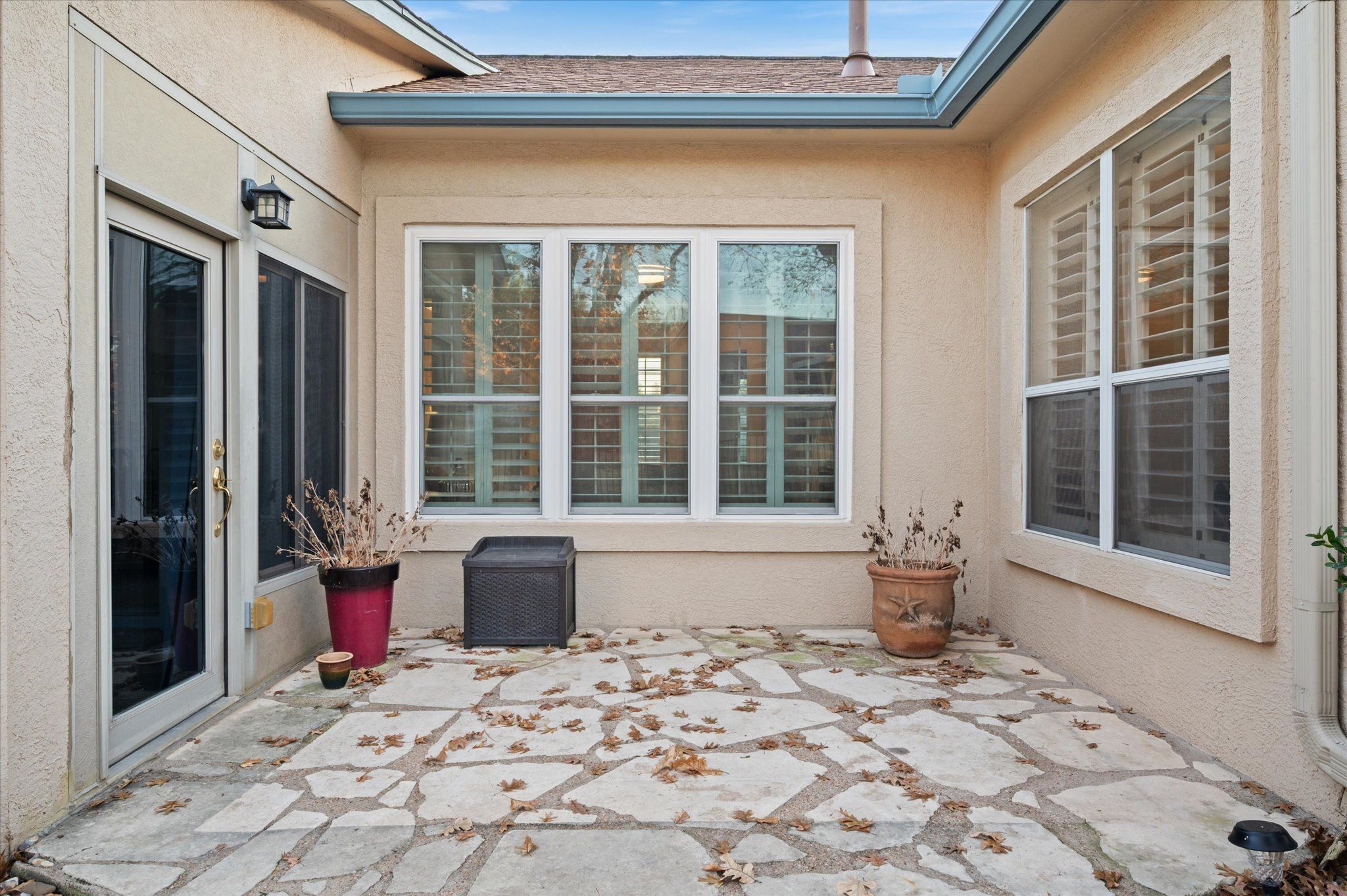 Original Del Webb Trinity floorplan—one of Sun City’s most loved designs! This inviting home offers 10’ ceilings, 2 bedrooms + flex room, 2 baths, and a comfortable layout made for easy living. The living room with fireplace flows naturally into a formal dining area and a nice-sized eat-in nook overlooking the main living space. Kitchen is set up with built-in electric stove-top, but is also plumbed for gas! The home features carpet throughout with tile in the kitchen and hallway. A glassed-in sunroom extends your living area year-round and opens to a patio with flagstone and a fenced backyard—perfect for pets, gardening, or relaxing afternoons. Enjoy added privacy with generous space between homes on one side and beautiful original trees creating a peaceful setting. The home has no interior steps, with only a couple of exterior steps at the front entry. Lovingly cared for by previous owners, this home is ready for someone with vision to add their personal touches and make it their own. *Roof 6-years Living in Sun City Texas means more than just a beautiful home — it’s a lifestyle filled with connection and possibility. Enjoy three championship golf courses, multiple fitness centers and pools, scenic walking trails, and over 100 clubs for every interest, from pickleball to pottery. Friendly neighbors, resort-style amenities, and the charm of Georgetown make this community truly special.