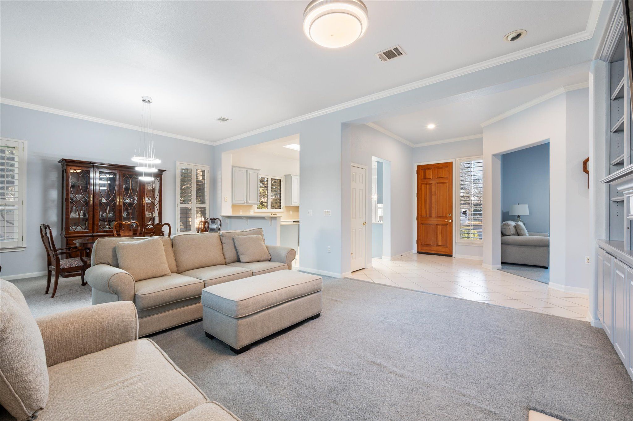 - Breakfast Bar, Bookcases, Built-in Features, Ceiling Fan(s), Crown Molding, Separate/Formal Dining Room, Double Vanity, Entrance Foyer, Eat-in Kitchen, High Ceilings, Kitchen Island, Multiple Dining Areas, Main Level Primary, Open Floorplan, Pantry, Storage, Solid Surface Counters, Study, Walk-In Closet(s), High Speed Internet
