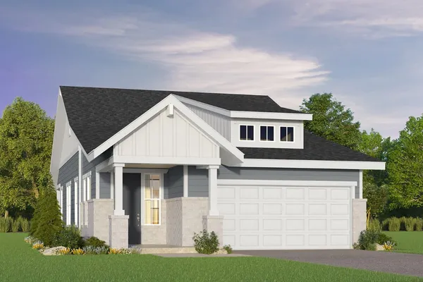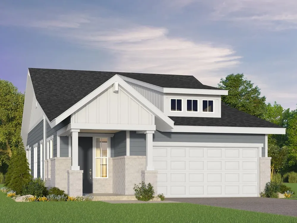 New Reed plan with upgraded kitchen, quartz countertops, upgraded ENCHANTED ROCK flooring, 4' garage extension, 8' doors throughout, Express cordless blinds
