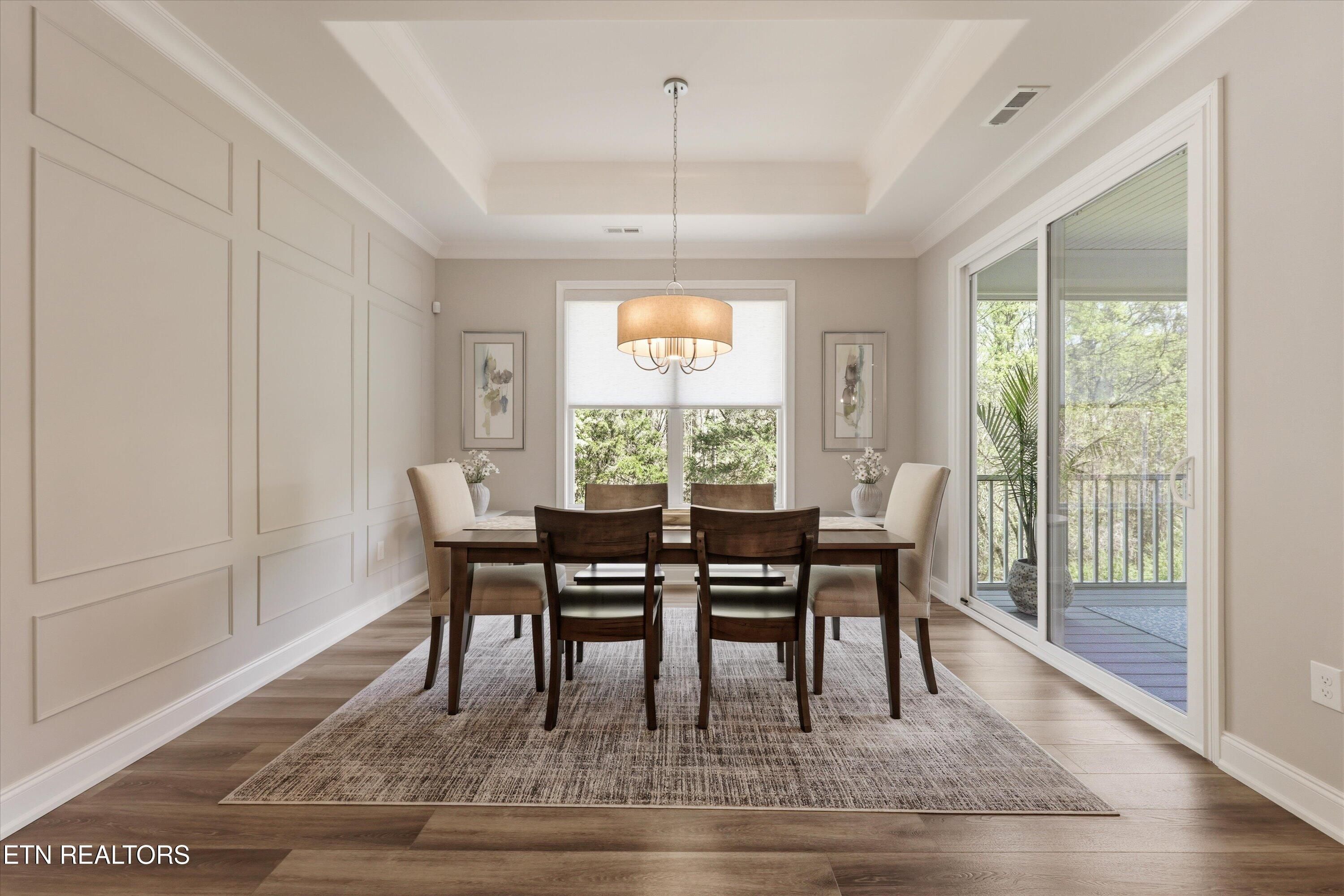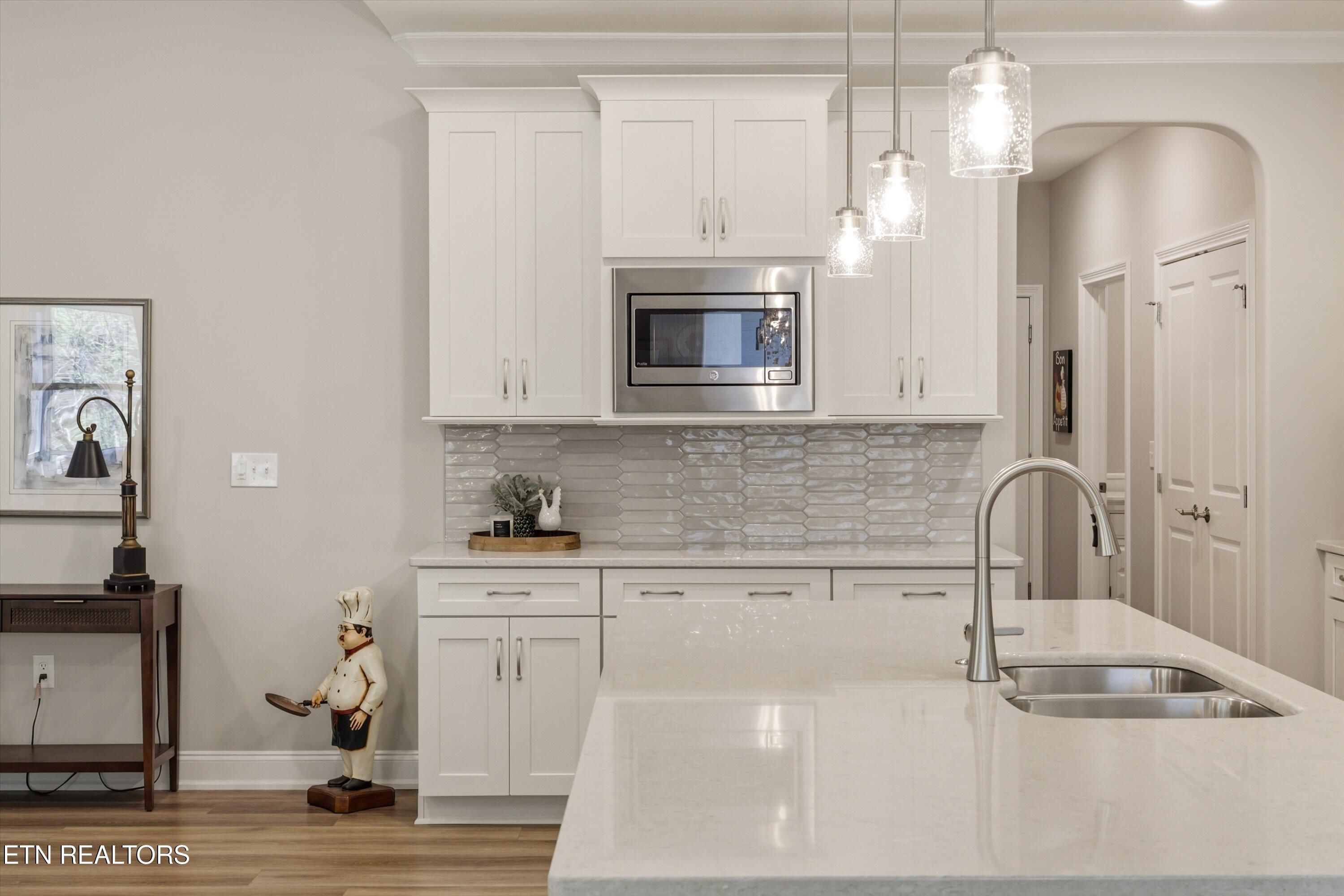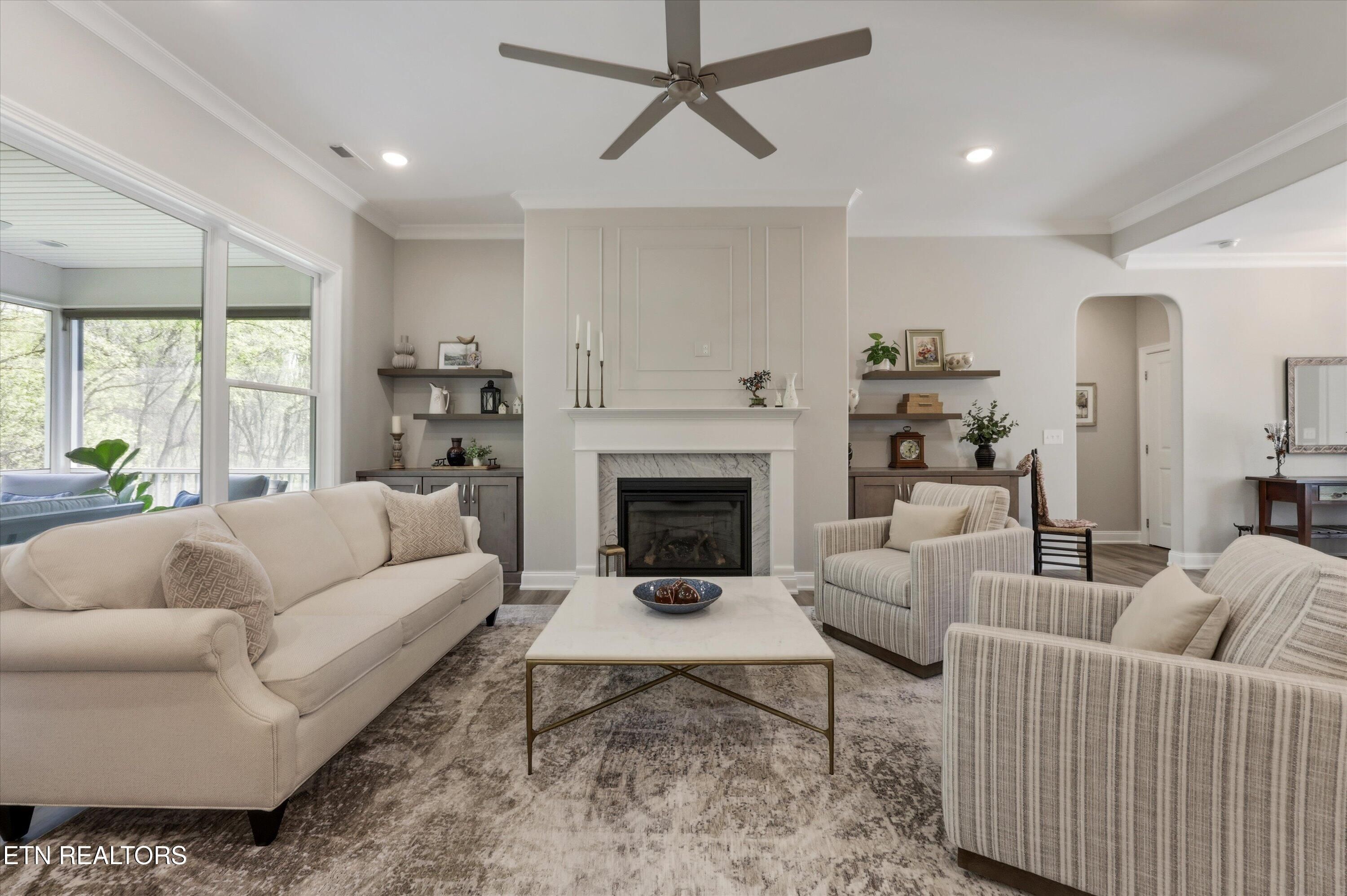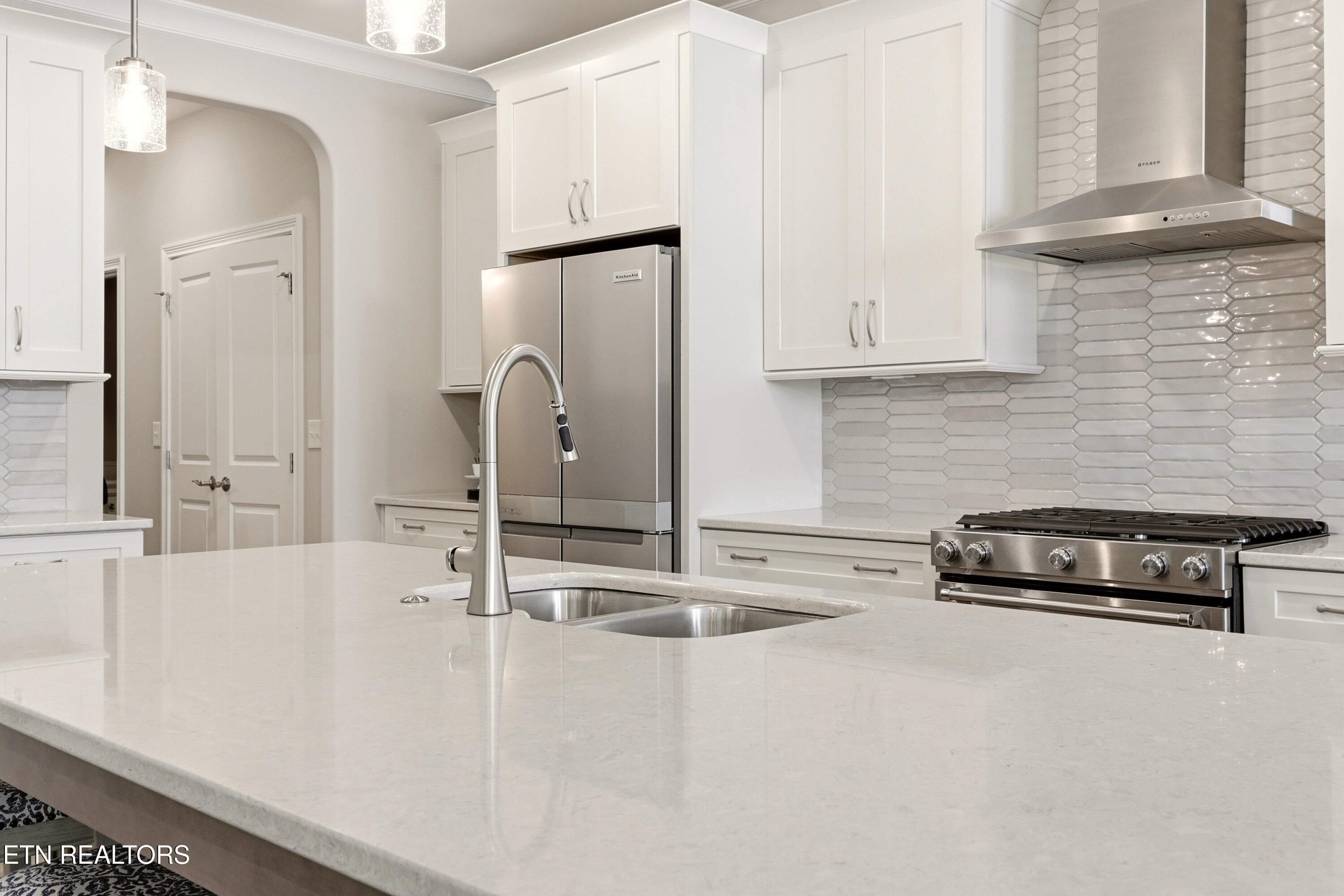 Welcome to this beautifully built 2024 Modern Craftsman-style home located in the highly sought-after Tellico Village community, offering true one-level living with a clean, functional layout and upscale finishes throughout. This home features 3 bedrooms, 2.5 bathrooms, and a versatile flex room, offering a highly convenient and functional layout for everyday living. The open-concept design seamlessly connects the living room and kitchen, creating an ideal space for living and entertaining, with a gas fireplace and abundant windows that fill the space with natural light for a bright, airy feel. The kitchen is thoughtfully designed with luxury cabinetry, quartz countertops, and KitchenAid appliances, including the refrigerator, gas range, and dishwasher. The primary suite features a spacious bedroom with tray ceilings, complemented by a well-appointed bathroom with dual vanities, quartz countertops, a large tile walk-in shower with seating, and an oversized walk-in closet. The additional bedrooms and flex room provide flexibility for guests, an office, or hobbies. Highlighted features include 10' ceilings, custom wall moldings, and tray ceilings in the primary bedroom and dining room. Enjoy outdoor living in a private, tree-lined setting on the screened-in deck with composite decking, offering a low-maintenance space to relax year-round. Additional features include an oversized 2-car garage with attic storage above, a tall crawl space for ample storage, and a full irrigation system. Homes like this don't come available often--schedule your showing today.