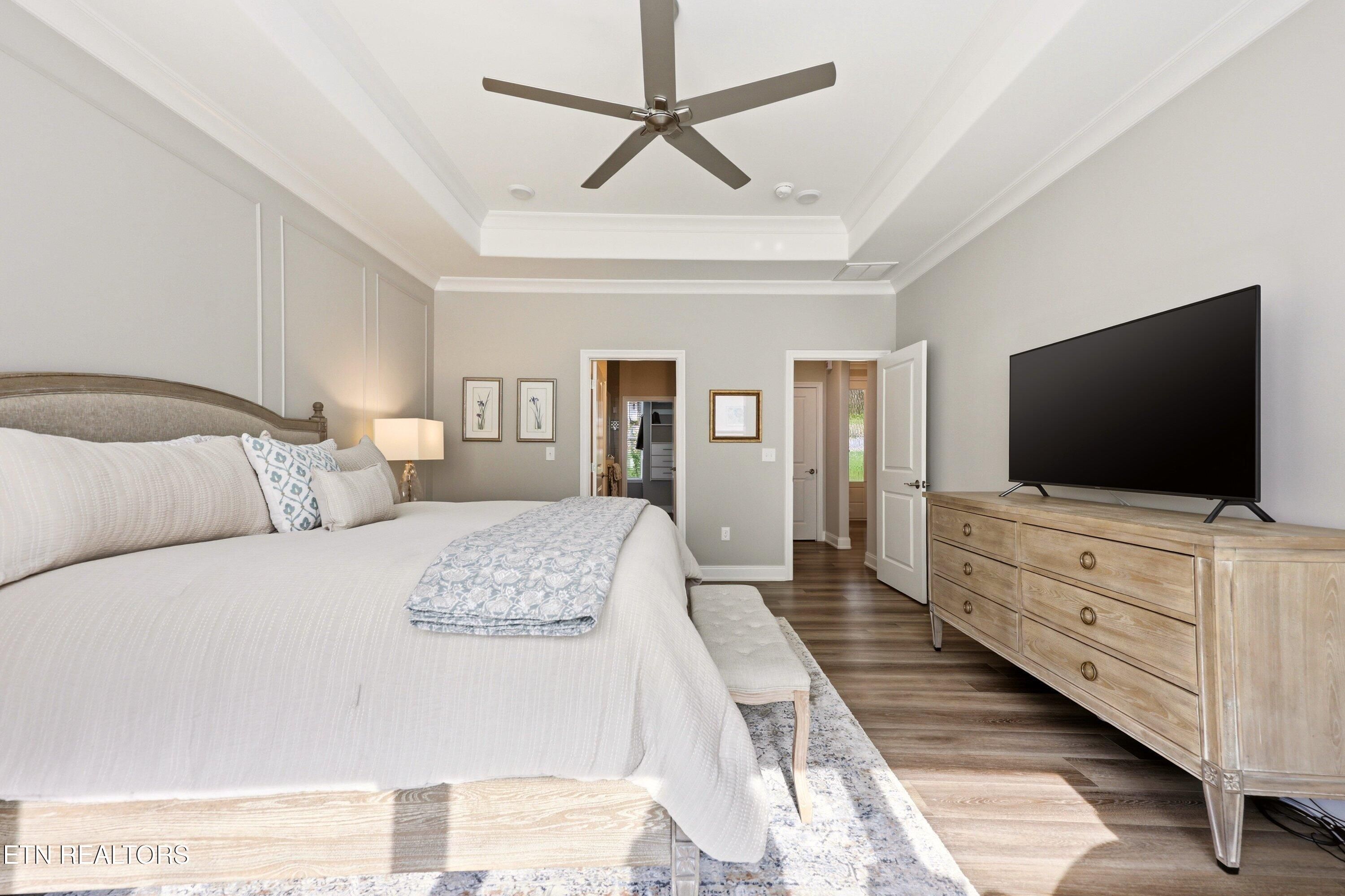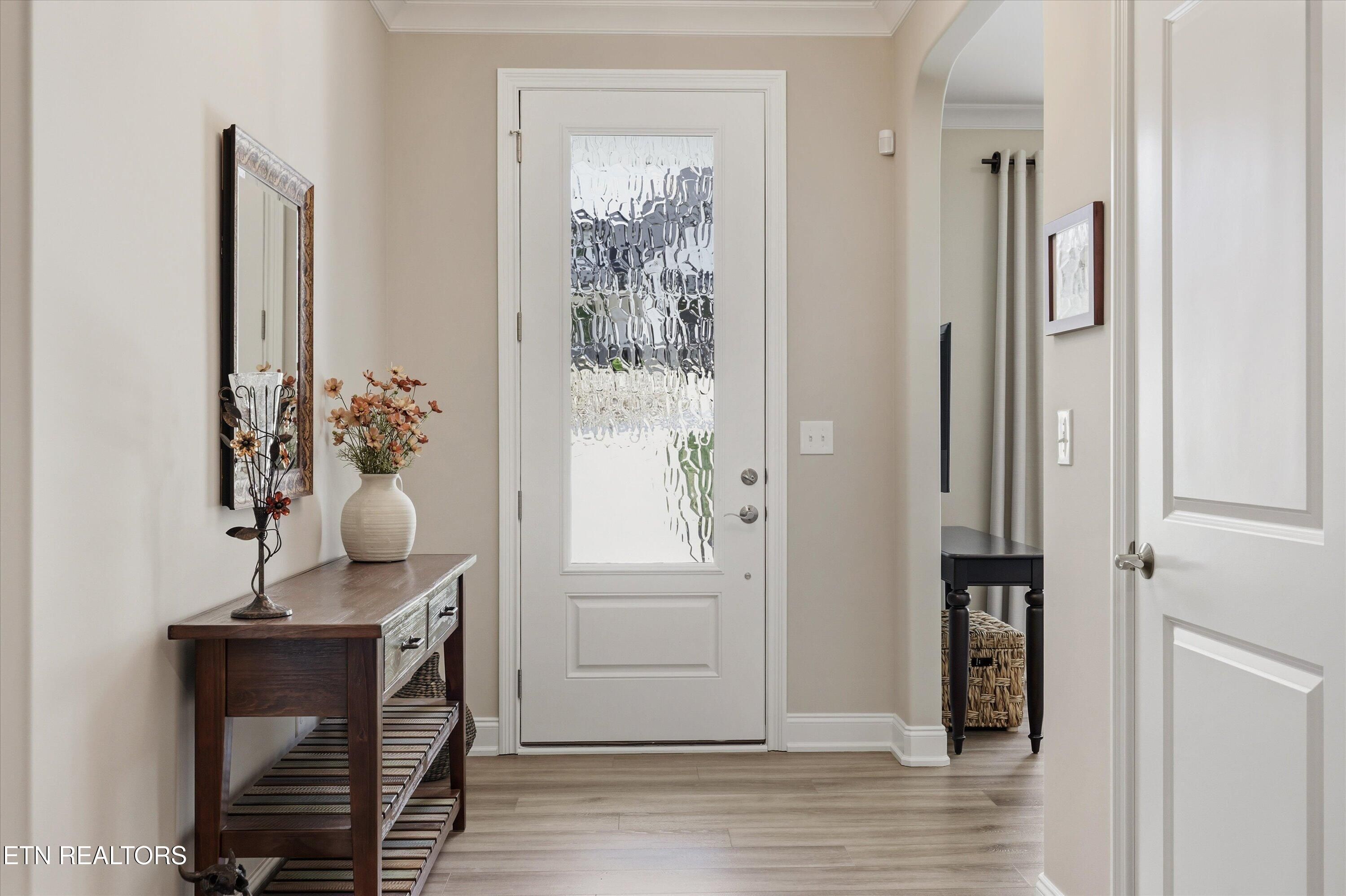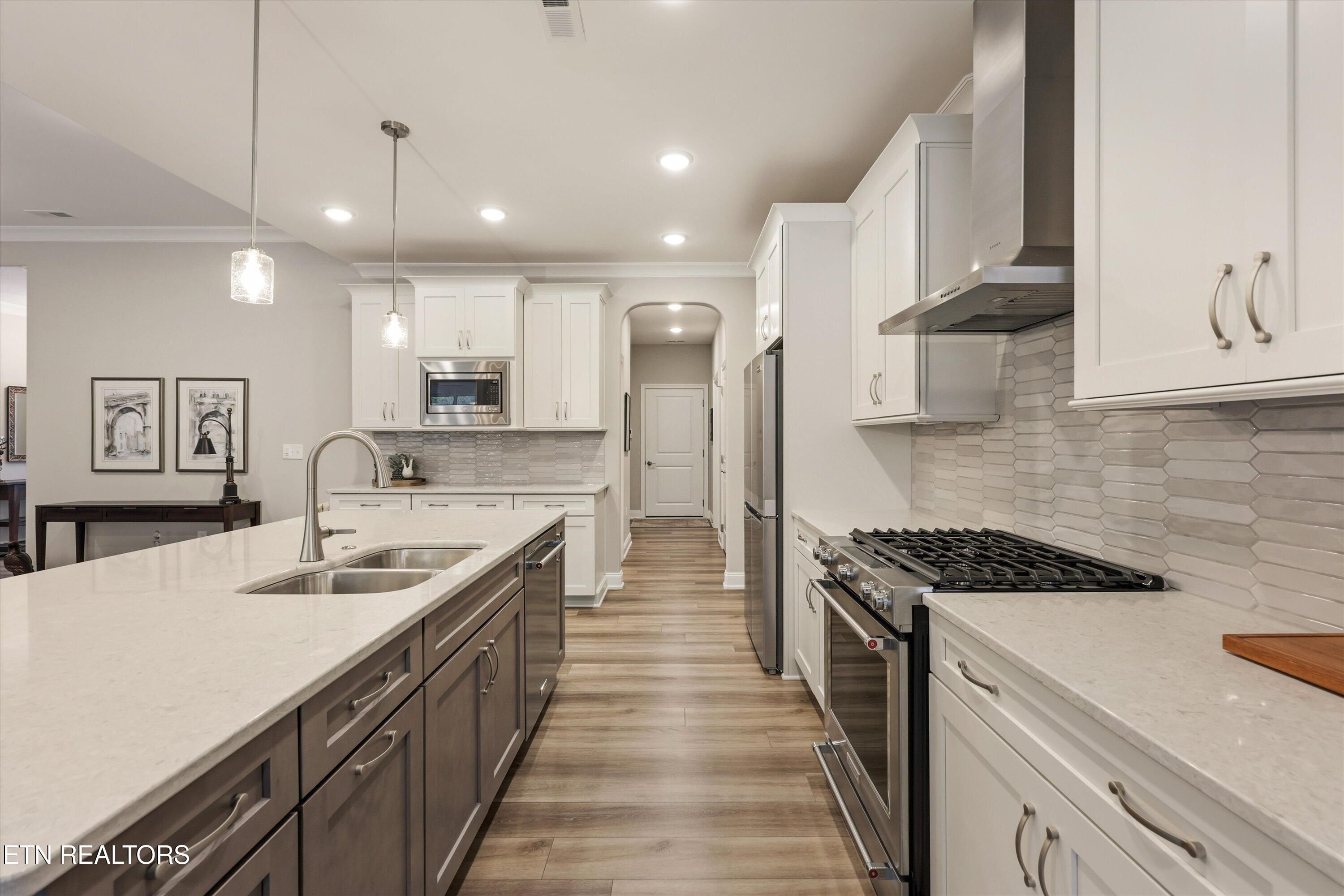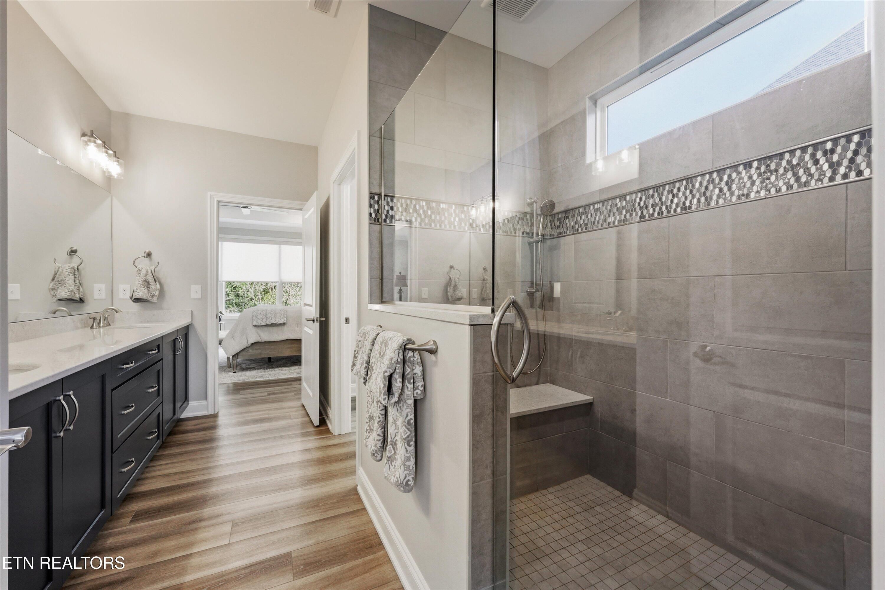 Welcome to this beautifully built 2024 Modern Craftsman-style home located in the highly sought-after Tellico Village community, offering true one-level living with a clean, functional layout and upscale finishes throughout. This home features 3 bedrooms, 2.5 bathrooms, and a versatile flex room, offering a highly convenient and functional layout for everyday living. The open-concept design seamlessly connects the living room and kitchen, creating an ideal space for living and entertaining, with a gas fireplace and abundant windows that fill the space with natural light for a bright, airy feel. The kitchen is thoughtfully designed with luxury cabinetry, quartz countertops, and KitchenAid appliances, including the refrigerator, gas range, and dishwasher. The primary suite features a spacious bedroom with tray ceilings, complemented by a well-appointed bathroom with dual vanities, quartz countertops, a large tile walk-in shower with seating, and an oversized walk-in closet. The additional bedrooms and flex room provide flexibility for guests, an office, or hobbies. Highlighted features include 10' ceilings, custom wall moldings, and tray ceilings in the primary bedroom and dining room. Enjoy outdoor living in a private, tree-lined setting on the screened-in deck with composite decking, offering a low-maintenance space to relax year-round. Additional features include an oversized 2-car garage with attic storage above, a tall crawl space for ample storage, and a full irrigation system. Homes like this don't come available often--schedule your showing today.