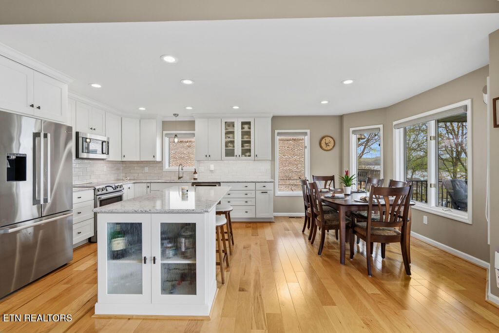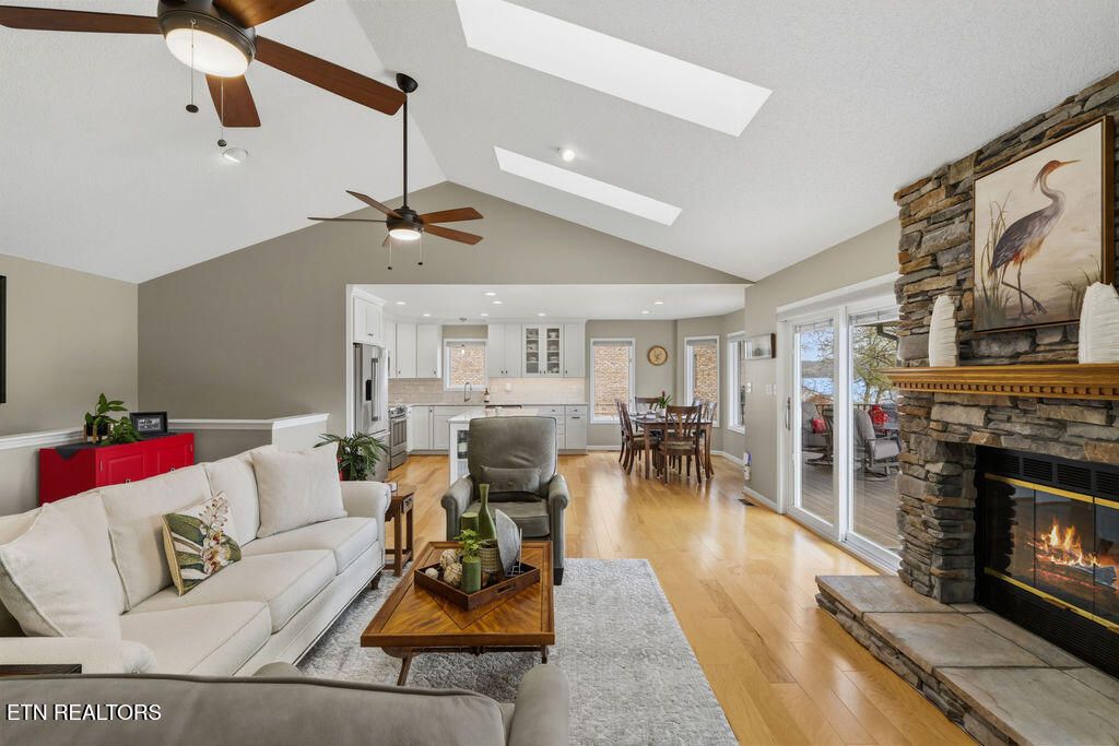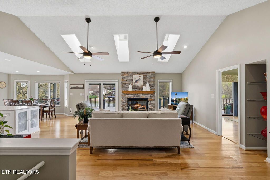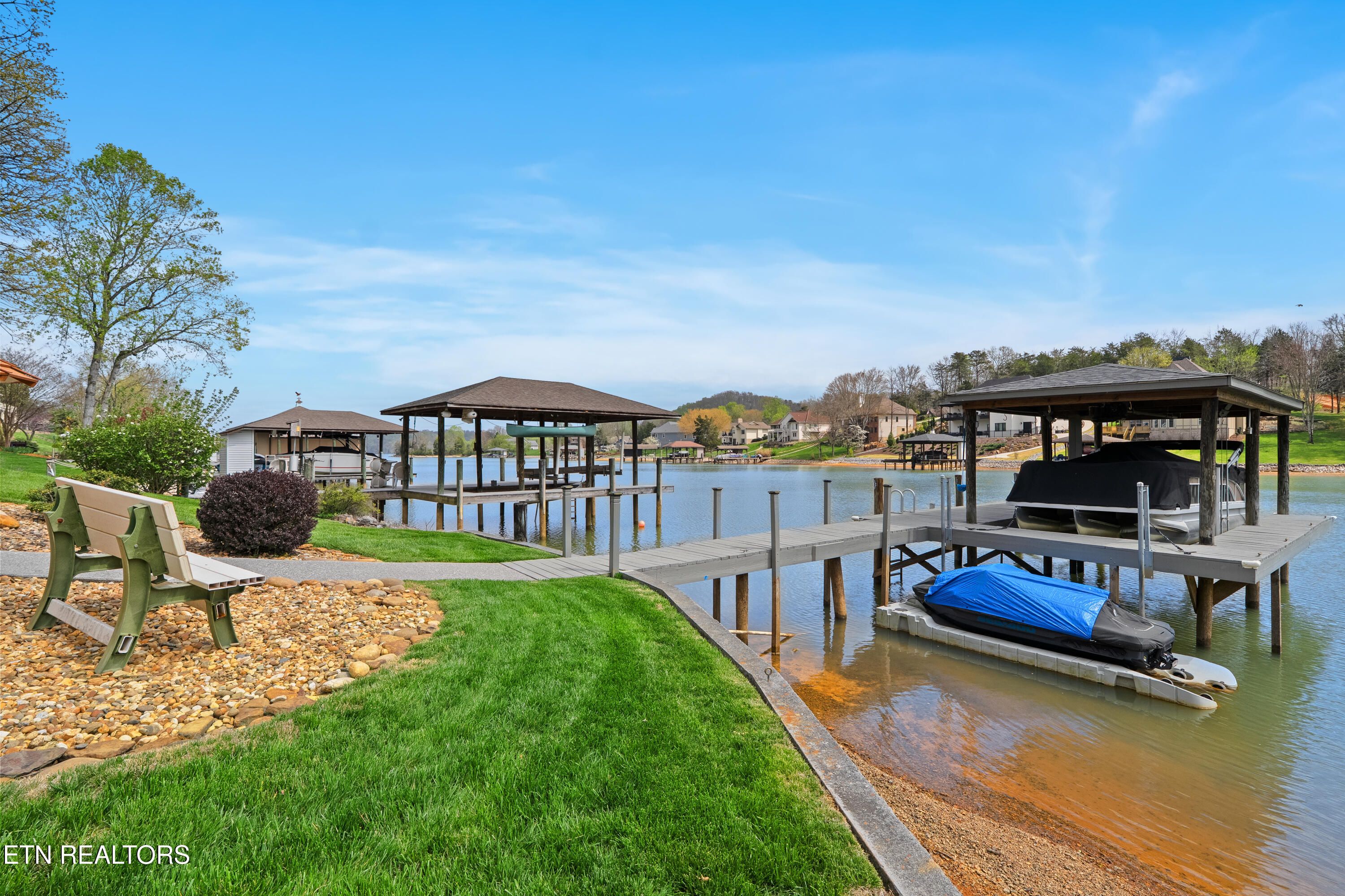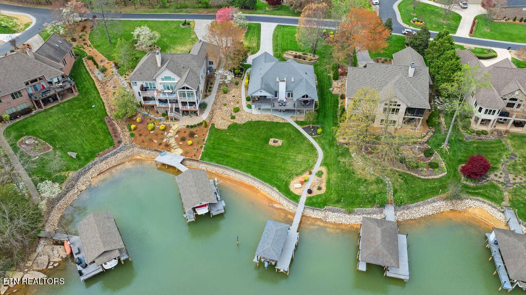 Welcome to your lakefront retreat in a deep water cove on Tellico Lake, where breathtaking lake views, year-round boating access, and thoughtfully designed living spaces create the ultimate East Tennessee lifestyle. This move-in ready Tellico Lake home with private dock and jet ski port offers the perfect blend of comfort, functionality, and recreation--designed for those who truly love life on the water. Inside, you'll find an open-concept floor plan filled with natural light, soaring vaulted ceilings, and panoramic lake views throughout. The redesigned gourmet kitchen is the centerpiece of the home, featuring white shaker custom cabinetry, quartz countertops, soft-close drawers, a large center island, under-cabinet lighting, and specialty storage including pull-out trash, lazy Susan, and spice cabinets--ideal for everyday living and entertaining. Main-level living is effortless with the spacious primary suite and two additional bedrooms conveniently located on the main floor. The luxurious primary ensuite showcases vaulted ceilings overlooking the lake, dual sink vanity, his-and-her walk-in closets with custom shelving, a beautifully appointed marble shower, and an oversized soaking tub--creating a private retreat at the end of the day. The lower level expands your living and entertaining space with a large recreation room, entertainer's kitchenette, two versatile flex rooms perfect for guests, office, or hobby space, and a generous storage room with workshop area. Additional features include Hickory hardwood floors, custom blinds, TimberTech decking, and abundant storage, including a dedicated exterior John Deere/lake toy storage closet for easy access to all your water equipment. Outdoor living is where this home truly shines. Enjoy double-decker porches and expansive decks designed to maximize lake views--perfect for morning coffee, sunset gatherings, or watching fireworks over the water. The gently sloping lot leads to the shoreline and private dock with jet ski port, making it easy to bring the boat, kayaks, and paddleboards and start enjoying lake life immediately. Located in coveted Tellico Village, one of East Tennessee's premier lake and golf communities, residents enjoy access to three championship golf courses, marinas, boating, fitness centers, pickleball, hiking trails, swimming, and an active social lifestyle. Conveniently situated just a short drive to Knoxville, Neyland Stadium, McGhee Tyson Airport, and the Great Smoky Mountains, this property is ideal as a primary residence, luxury lake home, or second home getaway for creating lasting memories with family and friends. Experience the best of Tellico Lake living--where every day feels like a vacation. (Buyer to verify all information--all measurements are approximate) Washer, Dryer, 2 Fridges, Upstairs Office Furniture Convey. Seller offering 1 Year Home Warranty with American Home Shield with Acceptable Offer.