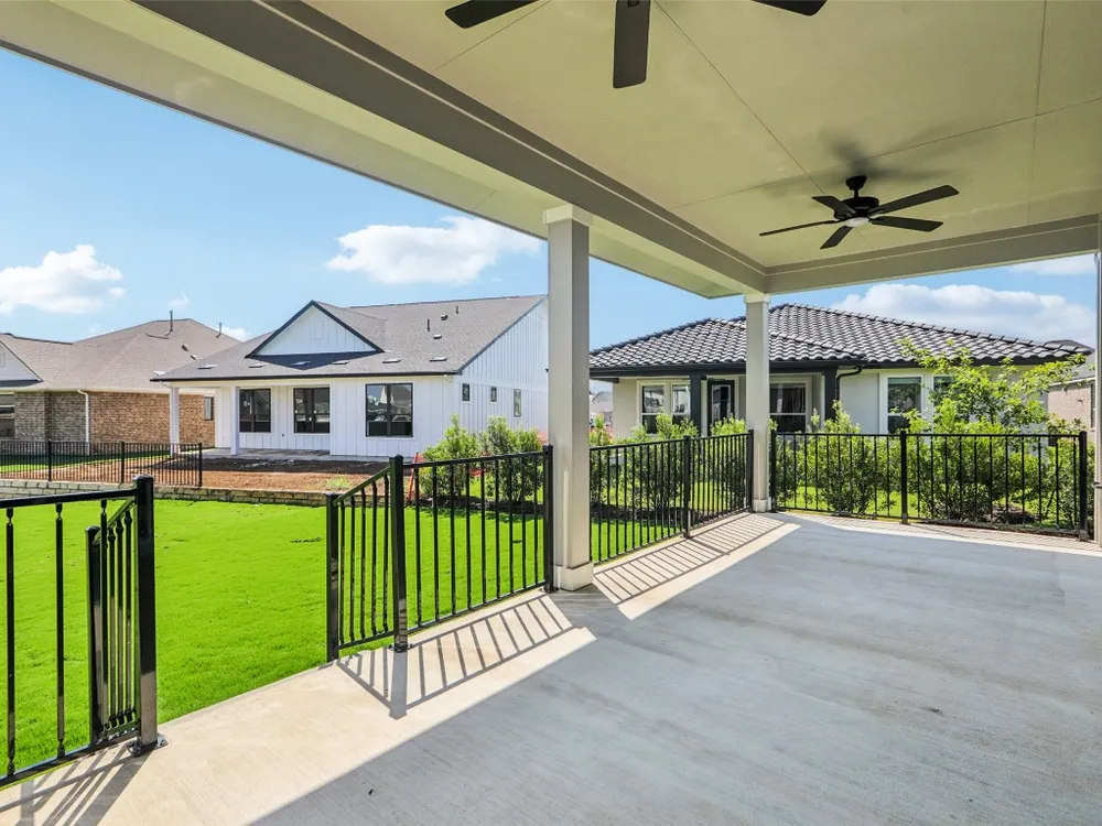 Monroe plan with upgraded kitchen, quartz countertops, tile flooring, optional tray ceilings in entry and master, optional study with double doors, optional cabinets in utility room with sink, sliding glass door in living, 42" fireplace in living, enlarged covered patio