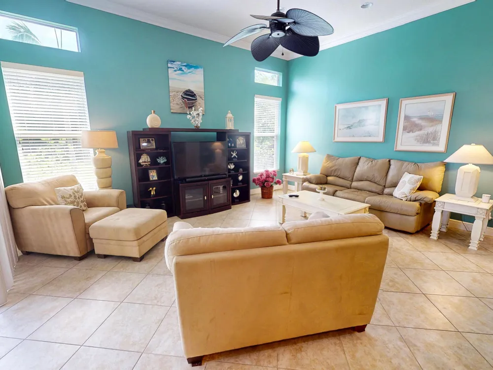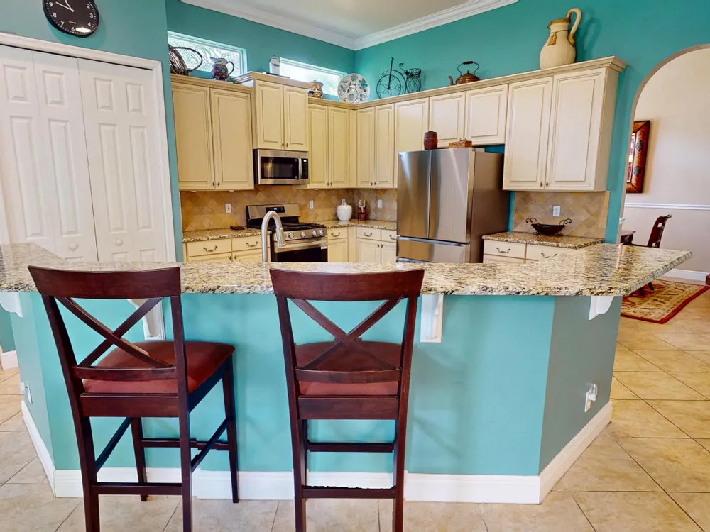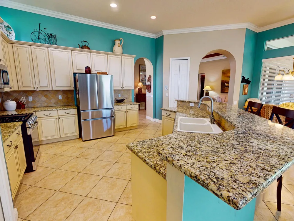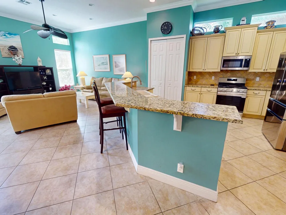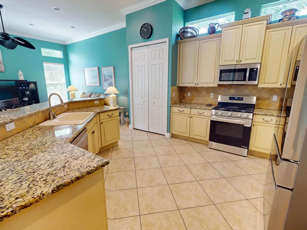This beautifully designed 3-bedroom, 3.5-bath home with a versatile den offers exceptional living space, thoughtful layout, high-end features throughout, and BRAND NEW APPLIANCES. Built with quality and durability in mind, the home features a classic barrel tile roof and impact-resistant windows for enhanced safety and energy efficiency. Inside, you'll find a large open floor plan that seamlessly connects the oversized family room and spacious living room, creating an ideal setting for entertaining or relaxing. The upgraded kitchen is a standout, boasting 42-inch cabinetry, and rich granite countertops ---perfect for the home chef. The expansive master suite is a private retreat, complete with dual walk-in closets and luxurious his-and-her bathrooms.