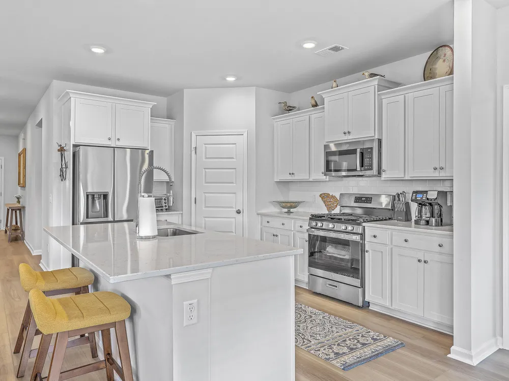 - Smooth Ceilings, Tray Ceiling(s), High Ceilings, Kitchen Island, Walk-In Closet(s), Ceiling Fan(s), Eat-in Kitchen, Entrance Foyer