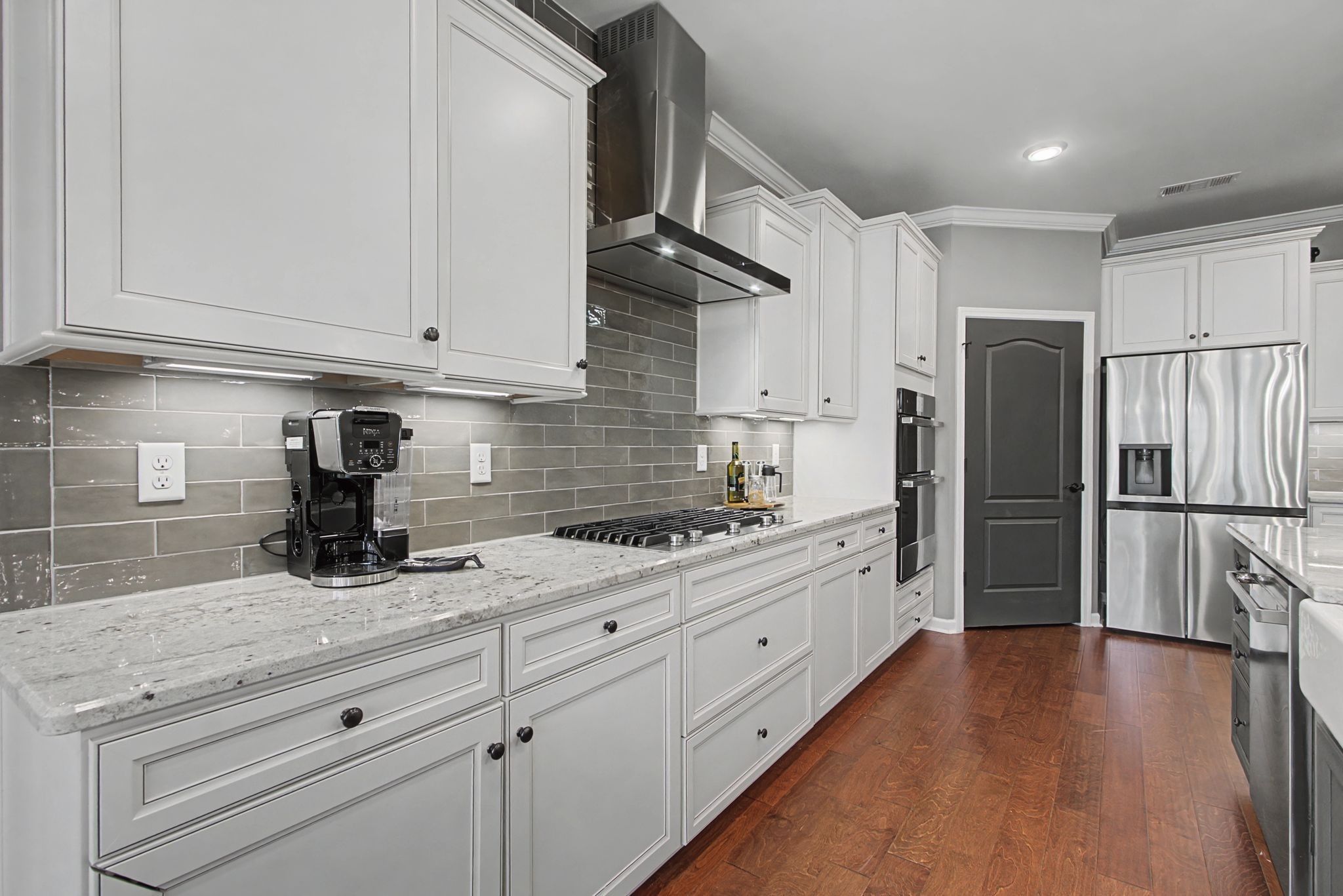 - Built-In Gas Oven, Cooktop, Dishwasher, Disposal, Dryer, Microwave, Refrigerator, Stainless Steel Appliance(s), Washer, Smart Appliance(s)