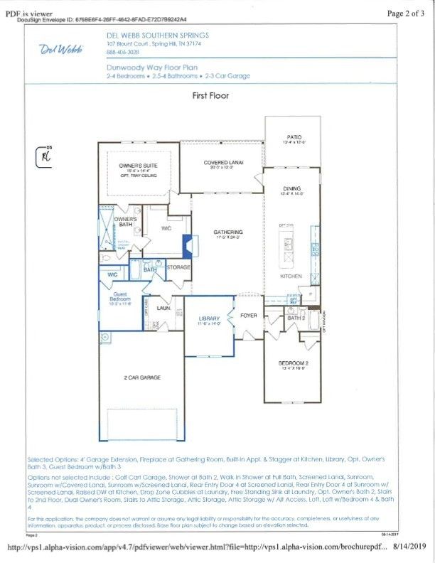 Awesome, 3 bedroom, 3 bath, Dunwoody floor plan in the highly sought after Southern Springs by Del Webb 55 plus active adult community with very low maintenance. Conveniently located in Spring Hill with easy access to I 65 and five minutes from shopping, dining, post office, and emergency room. This beautiful home is move in ready and available for immediate occupancy. Gorgeous gas log burning, stone fireplace in the open concept Great Room. Upgraded kitchen with wood cabinetry, soft close doors and drawers, beverage cooler, farmhouse sink, quartz countertops, gas cooktop, built in oven and microwave, walk in pantry, all appliances convey. Primary bedroom with accent wall, lots of natural light, engineered hardwood floors, and ensuite bath with double sink vanities, walk in tile shower with bench seat and rain shower head, separate water closet, linen closet, and access to huge owner's closet with modular closet system. Library/office with custom built in cabinetry perfect for the book and art collector. This executive style home, all one level, has many high end custom finishes. Storage in the laundry room with built in cabinetry, drop zone, and sink. Lanai with easy breeze windows for year round use overlooking the fenced backyard. Epoxy coating on front porch, lanai and garage for easy maintenance and cleaning. HOA maintains lawn. Community has both indoor and outdoor pools, pickle ball, and tennis courts, gas fire pit, pavilion with gas grills and patio tables, clubhouse with fitness center and fitness classes, ball rooms, kitchen, conference room, card/game room, massage room, men's and women's locker rooms, and a dog park. Over 70 clubs and special interest groups, special programs, presentations, concerts, Southern Springs choir and band, as well as photography, painting, quilting, solo clubs, coffee club, Veteran's club, and so much more. Living in Southern Springs is like vacationing at a very active resort. Thirty-five minutes to/from BNA.