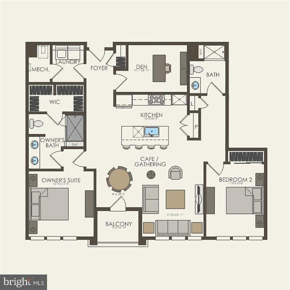 The Ethan in the community of The Flats at Northside is an open home design with a spacious den, perfect for remote work or a private retreat. This one-level, elevator condo includes Quartz countertops, stainless steel Gourmet Kitchen appliances, ceramic tile backsplash, and luxury vinyl plank flooring throughout! Choose low-maintenance living and enjoy walkability to restaurants and shopping within Park Potomac!