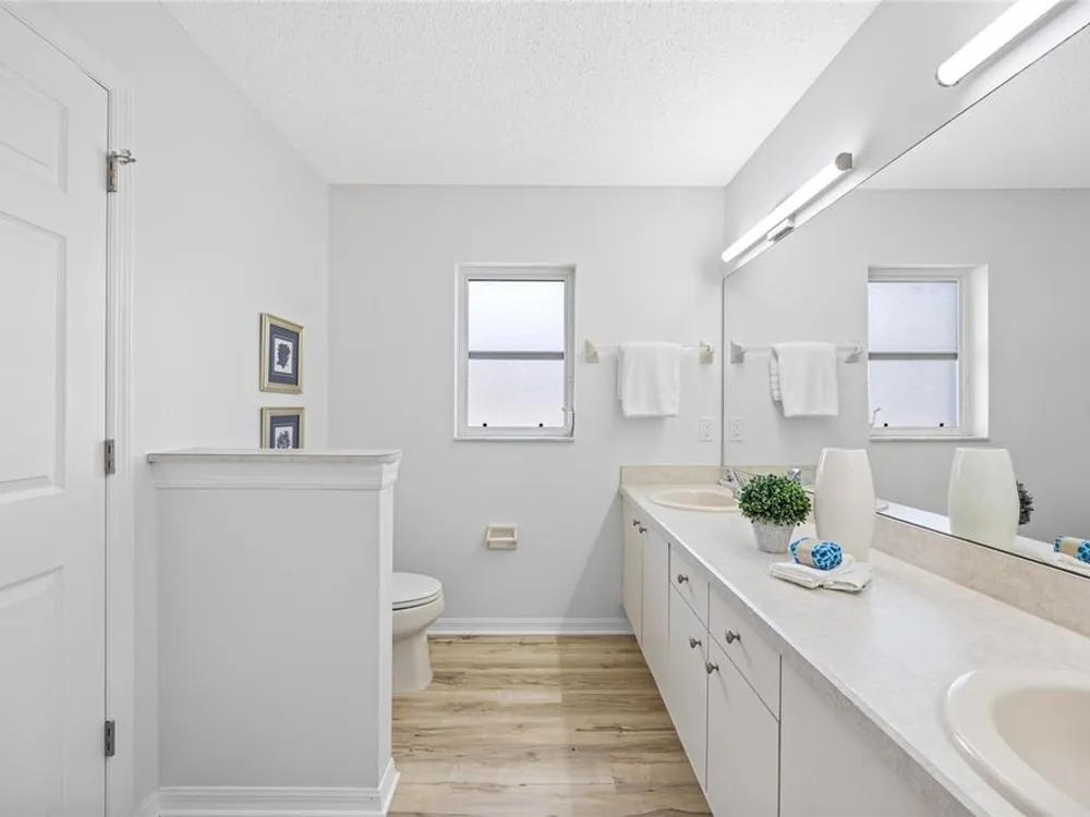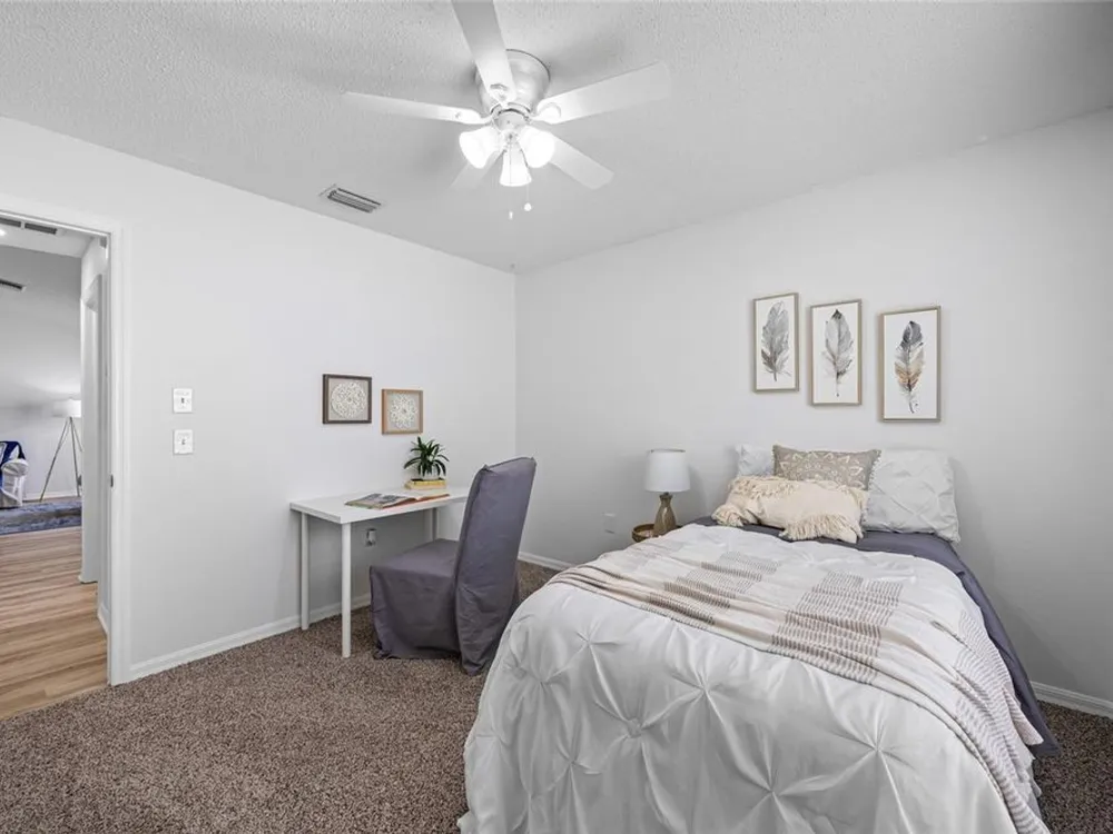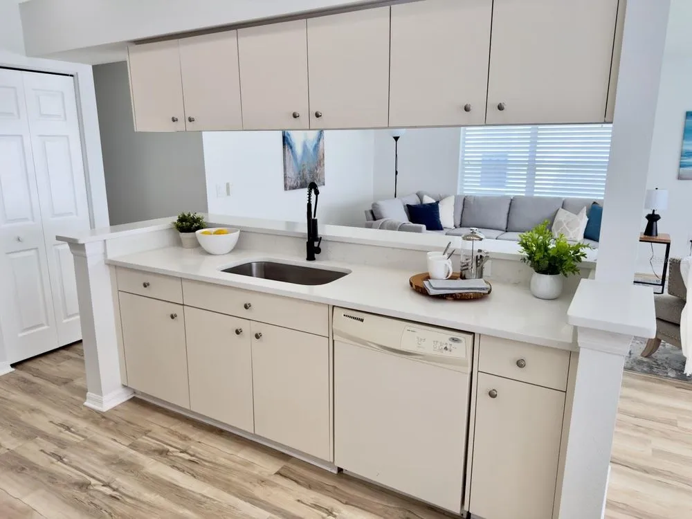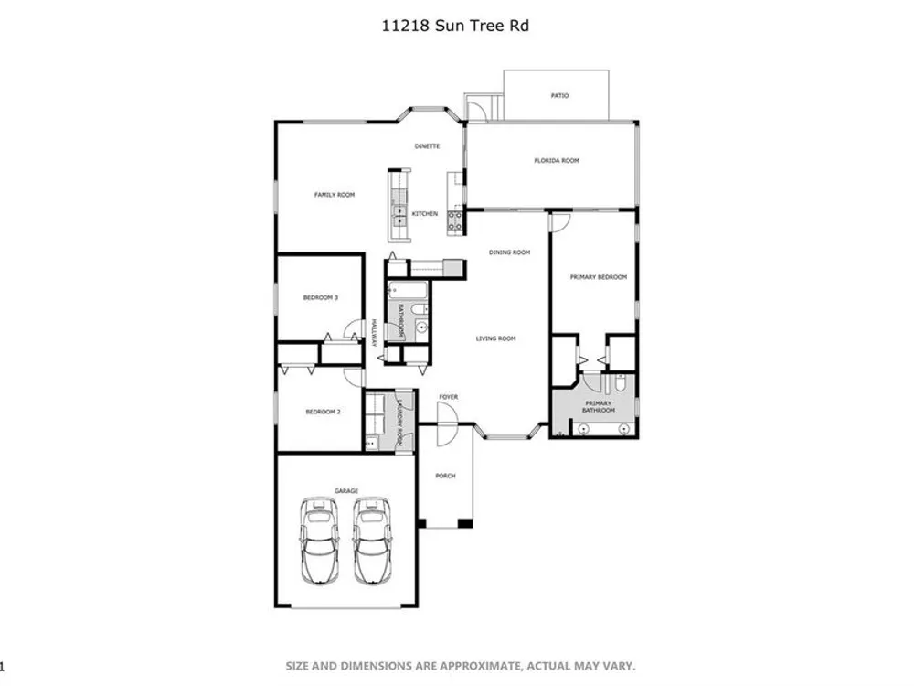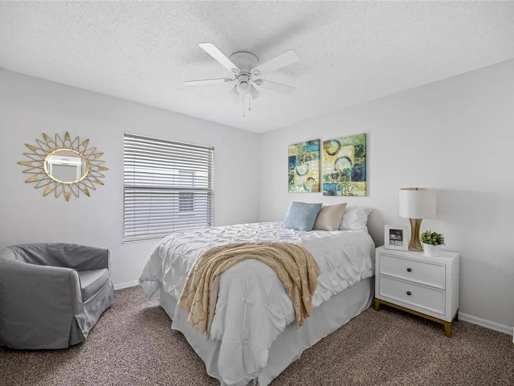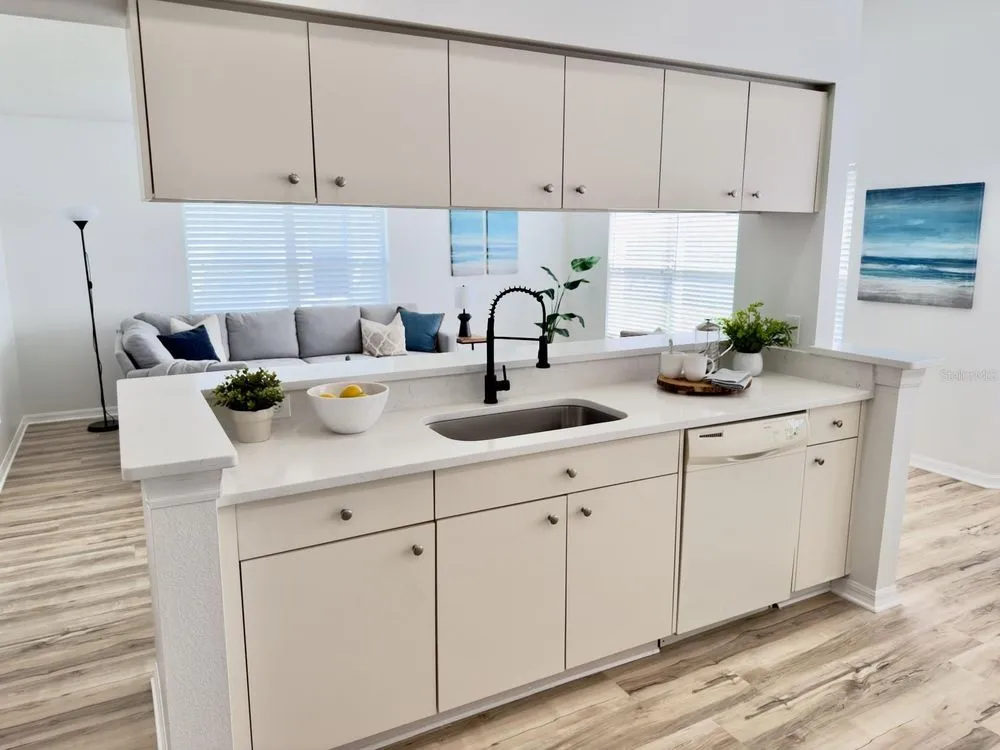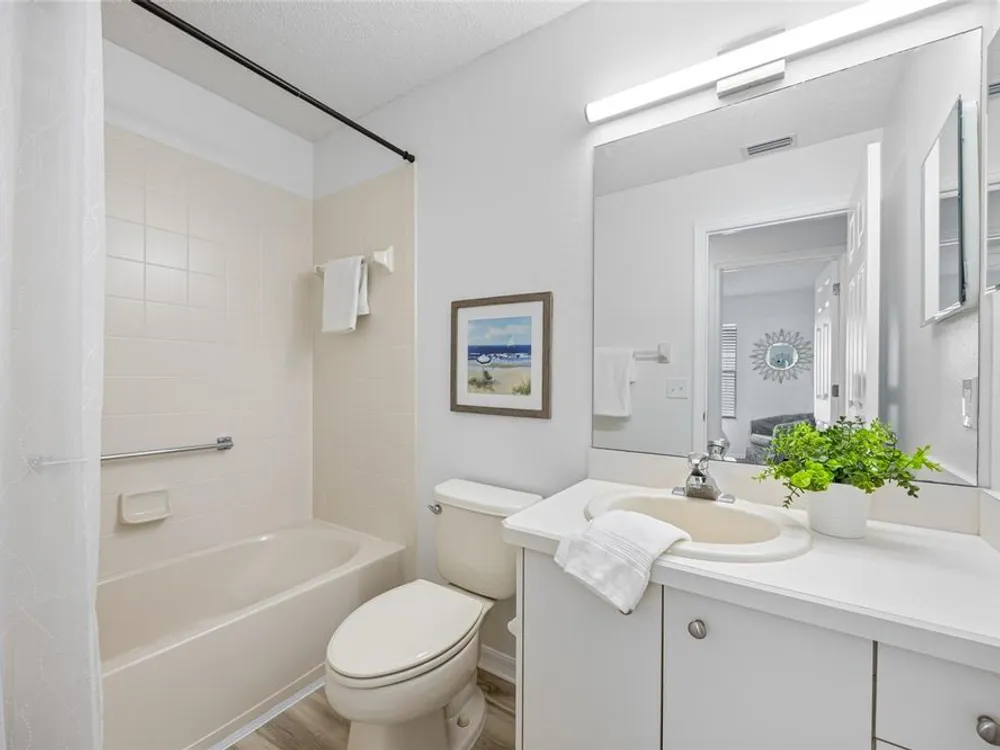 Welcome to your beautiful home in the highly desirable 55+ golf community of Heritage Pines. This spacious 3-bedroom, 2-bathroom residence with a 2-car garage has been thoughtfully refreshed and is ready for its new owners. Recent improvements include a brand-new roof, luxury vinyl plank flooring, fresh interior paint, and stylish new lighting and ceiling fans throughout, creating a modern and move-in ready feel. The home features soaring ceilings and a split-bedroom layout for comfort and privacy. The primary suite boasts dual walk-in closets and an en-suite bath with a dual-sink vanity and walk-in shower. Two guest bedrooms, each with new carpeting, share a full bath on the opposite side of the home. At the heart of the home, the kitchen offers brand new quartz countertops, newer appliances, a breakfast bar, closet pantry, and a sunny dinette area that flows seamlessly into the family room. A highlight of this property is the large, fully enclosed Florida room, complete with HVAC vents, giving this home 2,111 square feet of total cooled living space. Accessible from the dining room, dinette, and primary suite, this versatile space is perfect for entertaining or simply relaxing. Additional features include an indoor laundry room with washer and dryer included. Heritage Pines is a gated, amenity-rich, pet-friendly community offering an 18-hole championship golf course, clubhouse with restaurant and bar, fitness center, heated pool and spa, and courts for tennis, pickleball, bocce, and much more. The HOA fees cover cable, internet, lawn care, and irrigation, ensuring a low-maintenance lifestyle. Don’t miss the opportunity to make this home yours. Be sure to explore the 3D virtual tour and schedule your private showing today!