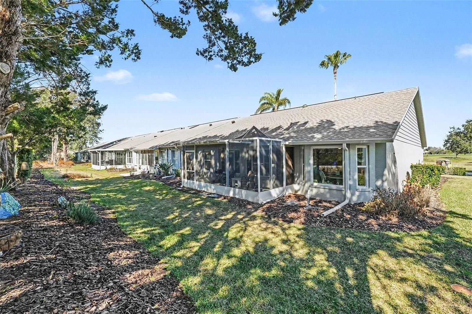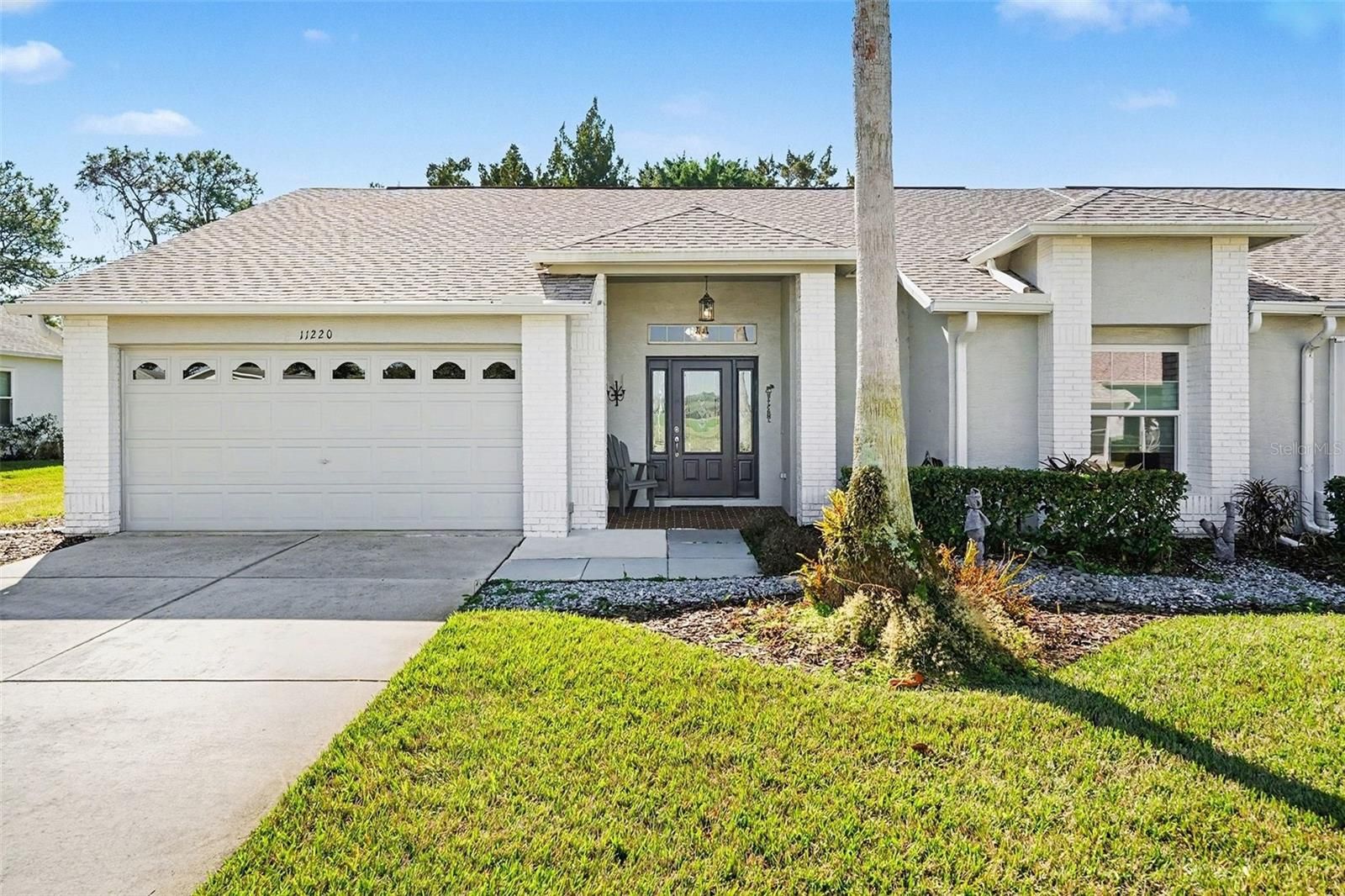 Discover this charming Heritage Pines villa, where low-maintenance living meets the best of the Florida lifestyle. This inviting residence offers a spacious 1,805 sq. ft. open floor plan with two bedrooms and two baths. The generous living area flows seamlessly to a screened patio—perfect for morning coffee, evening relaxation, or entertaining guests. The roof was replaced in September 2025. This well-maintained home also features new secure front and back doors, storm-proof double-pane windows, and a beautifully updated primary bathroom shower. The home includes an eat-in dining area, abundant natural light, and thoughtful design throughout. An attached two-car garage and mature landscaping reflect true pride of ownership. Located in a premier gated golf-course community, residents enjoy an impressive array of resort-style amenities, including a clubhouse, swimming pool, state-of-the-art fitness center, scenic walking trails, tennis courts, and pickleball—providing an active and vibrant lifestyle.