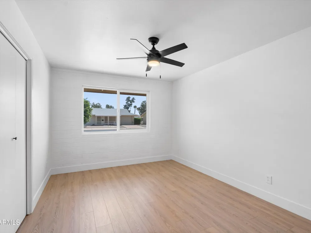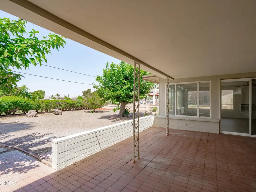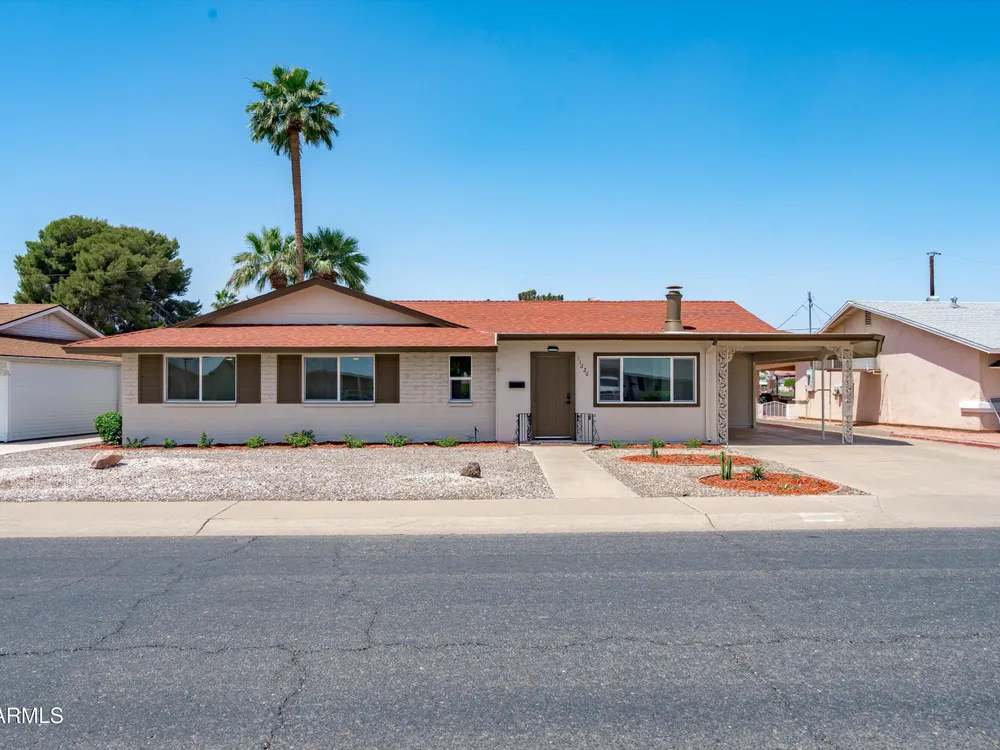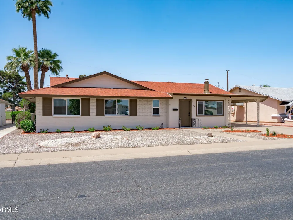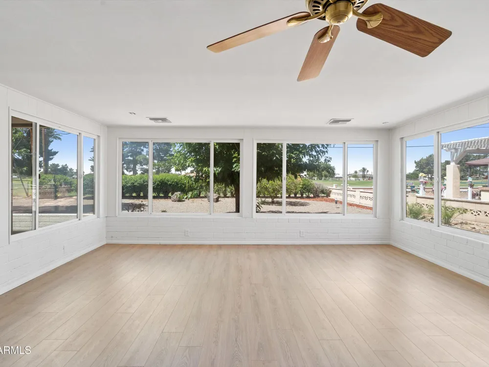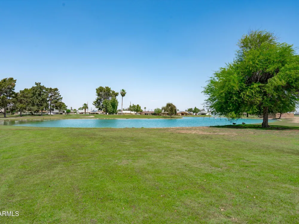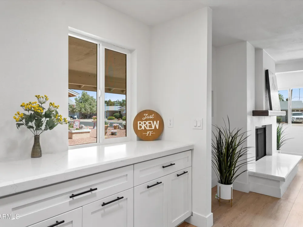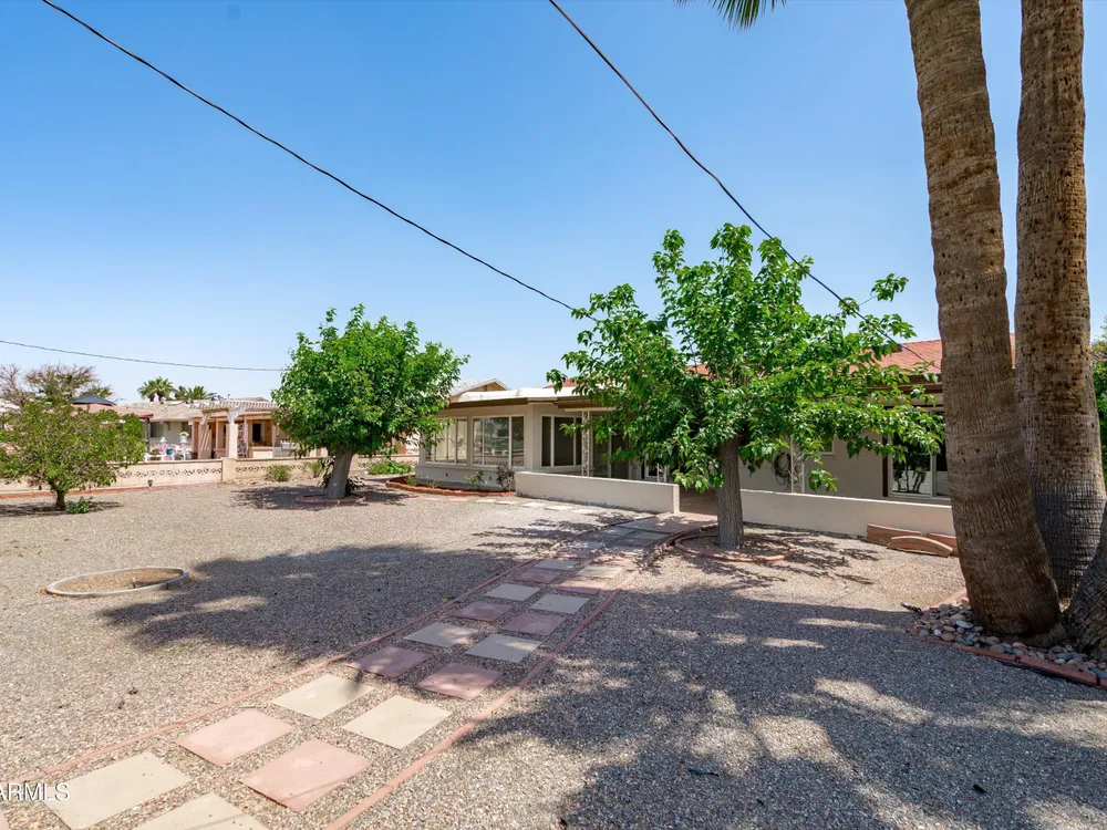 Move-in ready and beautifully remodeled, this 3-bedroom, 2-bath home in Sun City's desirable 55+ golf course community offers comfort, style, and convenience. Inside, you'll find a spacious layout with a large enclosed sunroom, new kitchen cabinets, countertops, appliances, updated bathrooms, fresh flooring, new windows, a hot water heater, and a reverse osmosis drinking system—all freshly painted inside and out. The backyard is both inviting and low-maintenance, featuring mature shade trees, rock landscaping, and a private walkway that leads directly to the golf course with serene lake views. With a motivated seller offering a special summer price, this home is ready for you to move in today and add your personal touches.