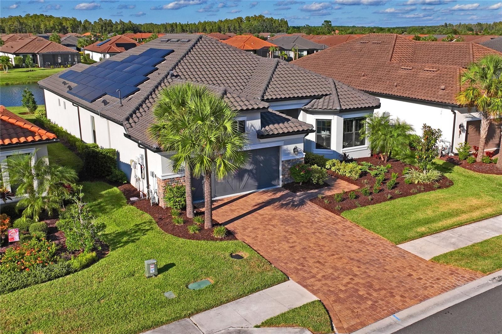 Ready for modern, energy-saving, upscale living? Welcome to your SMART and SOLAR ENERGY-EFFICIENT (Paying on average $30 a month for electric) home fully equipped with TESLA, OWNED 28 SOLAR PANELS AND EV CHARGER. This meticulously maintained, and beautifully designed Taylor Morrison PALLAZIO provides the perfect blend of comfort, modern elegance, and functionality. With $129K builder upgrades and $142K invested after, this 3 bedroom, 3 full bathroom, with DEDICATED DEN/OFFICE SPACE enclosed with CRYSTALIA SOUNDPROOF FROSTED GLASS PARTITION DOORS, is a standout in both design and livability. The spacious 4’ EXTENDED, 2-car garage comes equipped with $11k worth of built-ins perfect for keeping organized, FINISHED ATTIC FLOORING for STORAGE made easy with INSULATED STEEL LADDER. As you step inside, an open-concept layout is accentuated by MOHAWK LAMINATE REV WOOD SELECT FLOORING, NEUTRAL TONES, and timeless modern lighting and design selections. The GOURMET KITCHEN boasts QUARTZ COUNTER-TOPS, HIGH-END GAS APPLIANCES (with the OPTION for ELECTRIC), EXTENDED AMPLE CABINET SPACE with WINE FRIDGE and CASUAL DINING SPACE, CUSTOM BUILT PANTRY, and a spacious 10 ft. ISLAND perfect for entertainment. Adjacently, the living room features a STUNNING ACCENT WALL adding a true focal point that brings warmth and texture to the space. The home also provides a LUXURIOUS PRIMARY SUITE with 12 ft. WIDE WALK-IN SHOWER WITH, and EXPANSIVE WALK-IN CUSTOM BUILT CLOSET, while a PRIVATE JUNIOR SUITE provides comfort for guests or multi-generational living. The additional bedroom and full bath are ideally situated for maximum privacy and convenience with a POCKET SLIDER to convert into another PRIVATE SUITE. Enjoy the Florida lifestyle year-round from your COVERED and SCREEN ENCLOSED LANAI, overlooking WATER VIEW from backyard, surrounded by LUSH, TROPICAL LANDSCAPE. Entertain with ease using the PRE-PLUMBED FOR GAS OUTDOOR KITCHEN, complete for sink addition—perfect for weekend gatherings and sunset dinners. The home is equipped with 8 FT DOORS, 10 FT CEILINGS, MODERN WALL FEATURES, CUSTOM WINDOW SHADES, ROLLER BLINDS, BLACKOUT CURTAIN PANELS IN PRIMARY, MATTE ONYX HARDWARE and FIXTURES, LUTRON MOTION SENSOR LIGHT and DIMMER SWITCHES, TANKLESS WATER HEATER, HIGH-END LIGHTING & CEILING FANS, and LUXURY HOTEL INSPIRED BATH MIRRORS, TRAY CEILINGS, HURRICANE SHUTTERS, and a WHOLE-HOME WATER SOFTENER. HOA dues COVER ALL COMMUNITY AMENITIES, including clubhouse access, FITNESS CENTER, walking trails, HEATED POOLS AND SPA, FIREPIT, PICKLEBALL, TENNIS, and SHUFFLEBOARD COURTS, planned year-round community events, and so much more—along with COMPREHENSIVE LAWN MAINTENANCE, ensuring low-maintenance living. Plus, enjoy full access to all Starkey Ranch amenities including parks, pools, community garden, and recreational facilities. This home combines refined design with everyday practicality—ideal for those who appreciate thoughtful upgrades, modern convenience, and a vibrant, amenity-rich neighborhood. This exclusive gated community is strategically located near major highways for swift commute, shops, hospitals, local favorites, and much more. Whether you're looking to relax in style or entertain in elegance, this property delivers on every level. Don’t miss this rare opportunity to own one of the most beloved floor plan in one of the most desirable communities in the area. Schedule your private showing today and experience firsthand the exceptional lifestyle that awaits!