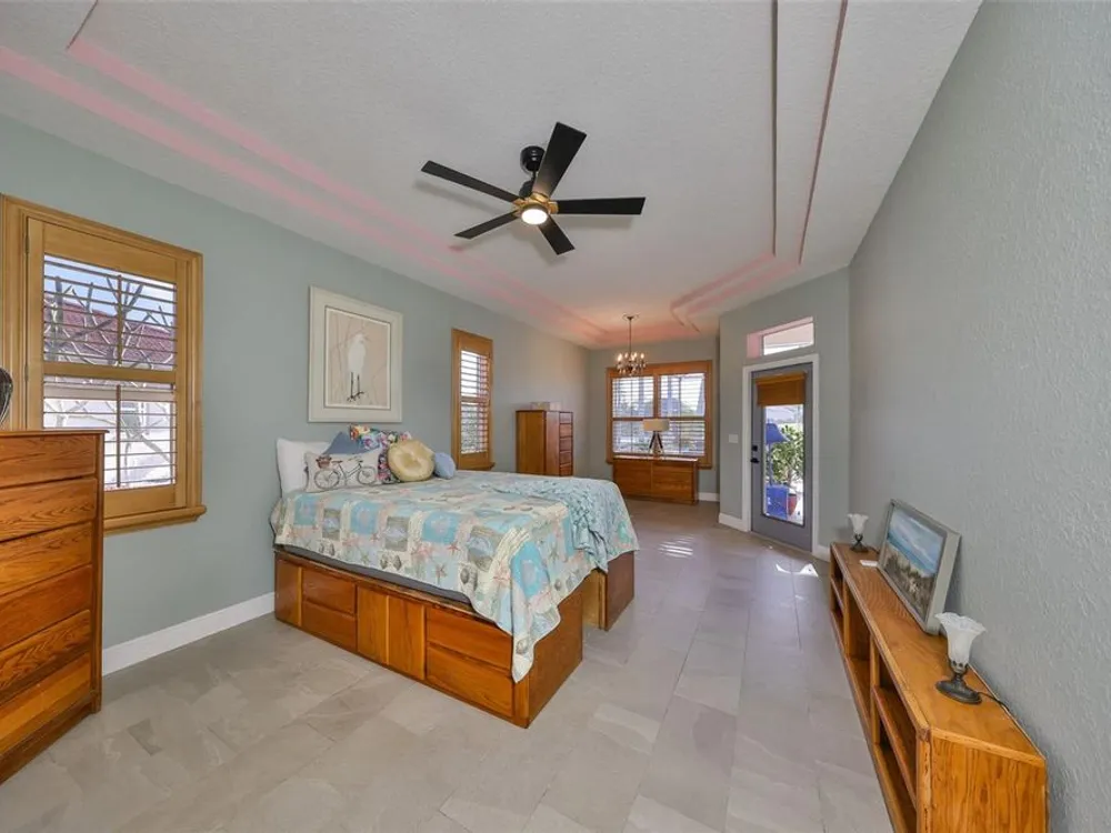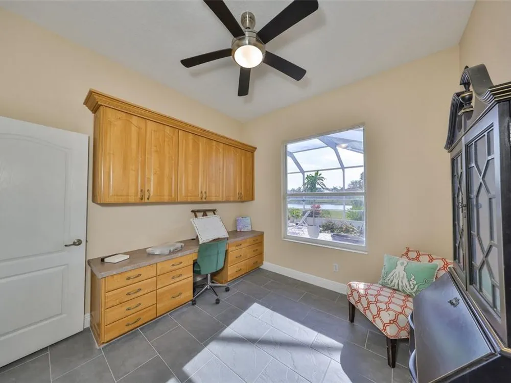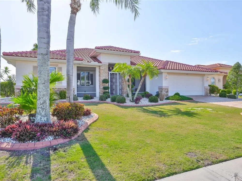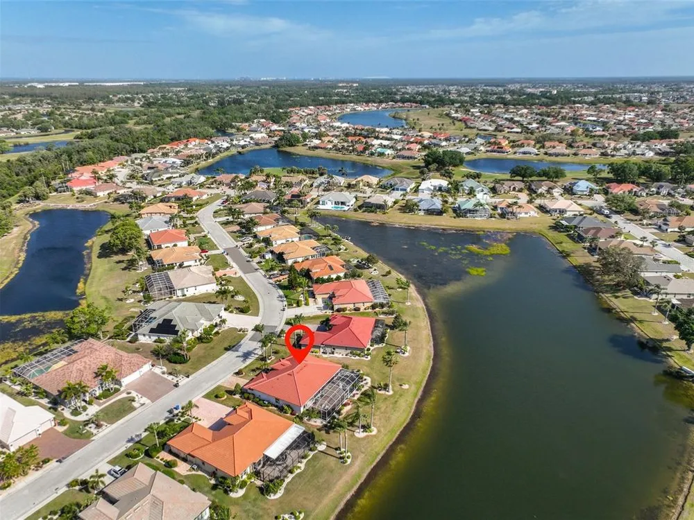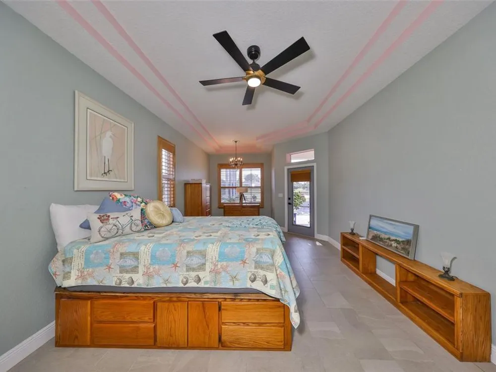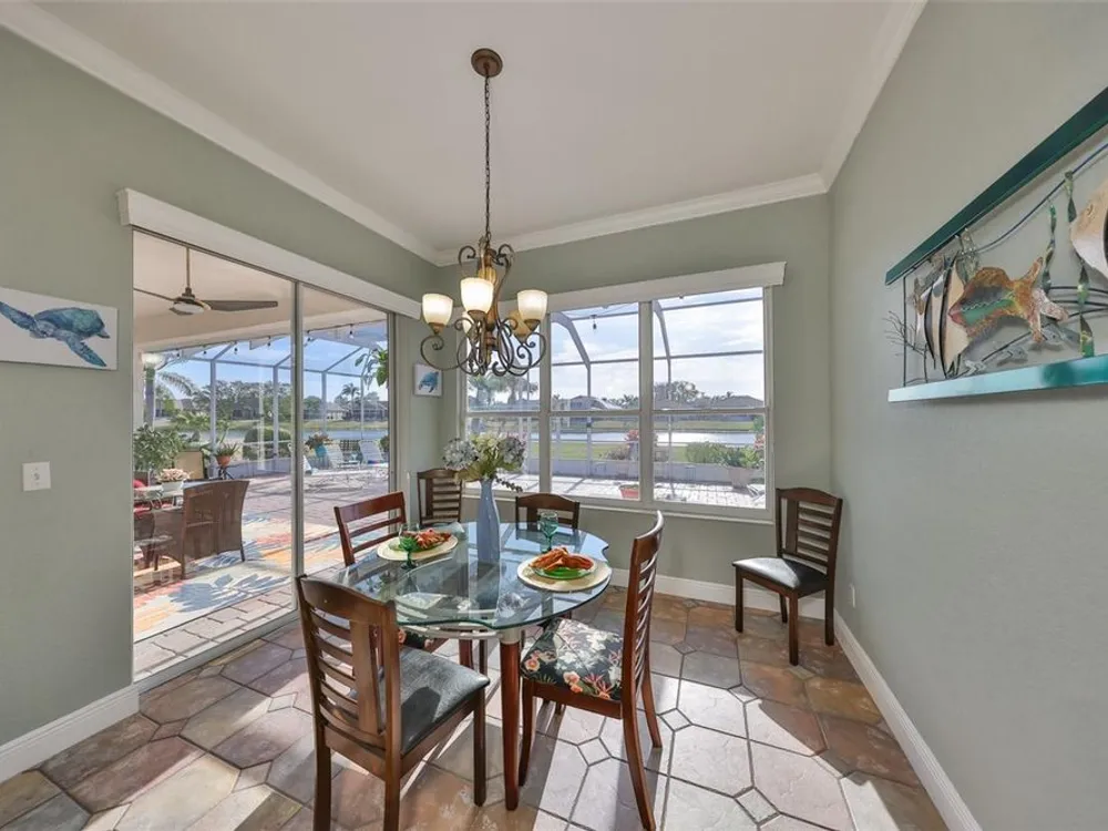 Welcome to Your Tranquil Lakeside Retreat! Discover the perfect blend of style, comfort, and modern amenities in this beautifully maintained Carrington floor plan, nestled in the prestigious Estates at Lake View on the desirable south side of Sun City Center (SCC). Enjoy exceptional curb appeal and outdoor Living as you step onto the oversized screened front porch and enter a home that exudes warmth and charm. High ceilings, elegant crown molding, upgraded lighting and fans, and classic plantation shutters set the stage for gracious living. The expansive living room features stylish gray plank tile that transitions seamlessly into vibrant Italian custom tiles, creating an inviting atmosphere throughout. The magnificent outdoor living space is the true showstopper! Enjoy year-round relaxation or entertain guests on the huge covered and screened lanai, offering serene water views and ample room for gatherings with friends and family. Whether you’re savoring your morning coffee or unwinding at sunset, this private oasis is sure to become your favorite retreat. The spacious kitchen is a chef’s delight, boasting abundant cabinetry with sliding shelves, solid surface countertops, stainless steel appliances, a large pantry, and a central island for effortless meal prep. The kitchen opens to a bright breakfast nook, perfect for casual dining. The luxurious extended primary bedroom suite is a true sanctuary, featuring direct access to the lanai, two generous walk-in closets, and a spa-like bathroom with dual vanities, a walk-in shower, a relaxing garden tub, and a beautiful custom stained-glass window. Two extra bedrooms, each with ample closet space, are designed for privacy. The third bedroom includes built-in desks and custom cabinetry, making it ideal for a home office or craft room. The guest bathroom, adorned with a custom stained-glass panel door, opens onto the rear lanai and can serve as a convenient pool bath. Additional home features include interior laundry room with extra storage, two-car garage with utility sink, water softener, and DIY workspace, new roof for peace of mind. Resort-Style Living where you will enjoy the vibrant 55+ golf cart community lifestyle, with access to exceptional amenities: indoor and outdoor pools, spas, fitness center, library, community hall, arts and crafts, sports courts, and golf. Conveniently located near airports, beaches, shopping, and big-city entertainment, this home offers endless opportunities for recreation and leisure This is more than just a home—it’s a lifestyle. Don’t miss your chance to own this beauty! Schedule your private showing today.