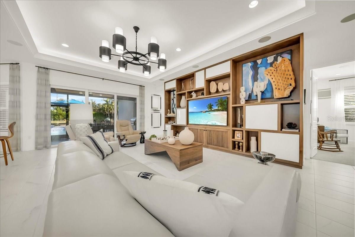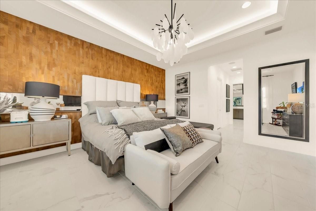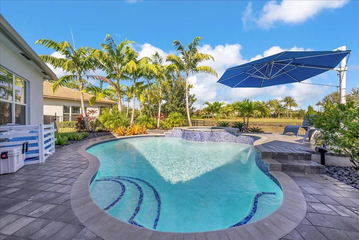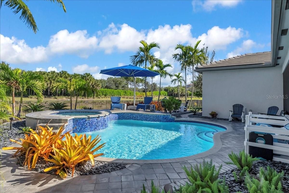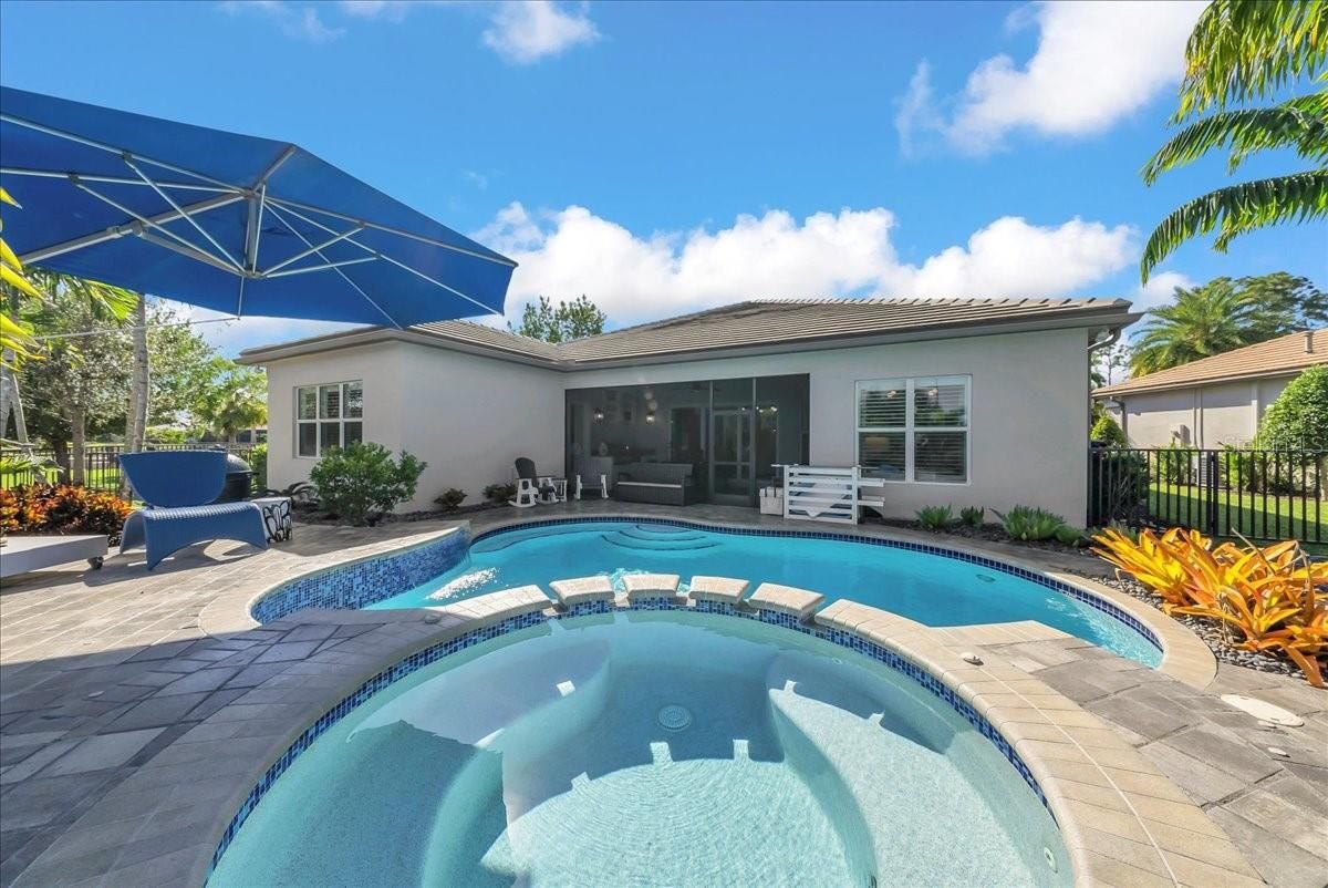 Luxury living in Valencia Trails Naples FL, one of Naples’ premier 55+ active adult communities. This highly upgraded 3-bedroom + office, 3.5-bath home offers a desirable en-suite split floor plan and is perfectly situated on a private cul-de-sac lot. The open-concept design features tray ceilings with crown molding, custom lighting, plantation shutters, built-in cabinetry, and designer finishes throughout. The gourmet kitchen includes upgraded cabinetry and flows seamlessly into the main living and dining areas—ideal for entertaining. The spacious primary suite offers custom detailing and private lanai access. Step outside to your screened lanai with a custom two-tier pool and spa, outdoor kitchen, sealed pavers, and lush professional landscaping. Whole-house generator included. The climate-controlled garage is fully customized with upgraded flooring, storage systems, enhanced lighting, refrigerator, and entertainment capability. Residents of Valencia Trails enjoy resort-style amenities including a luxury clubhouse, restaurant, resort pool, pickleball, tennis, bocce, fitness center, walking trails, and dog park, plus a calendar filled with activities just for the residents —just minutes from the beaches, dining, and shopping in Naples. Meticulously maintained and move-in ready.