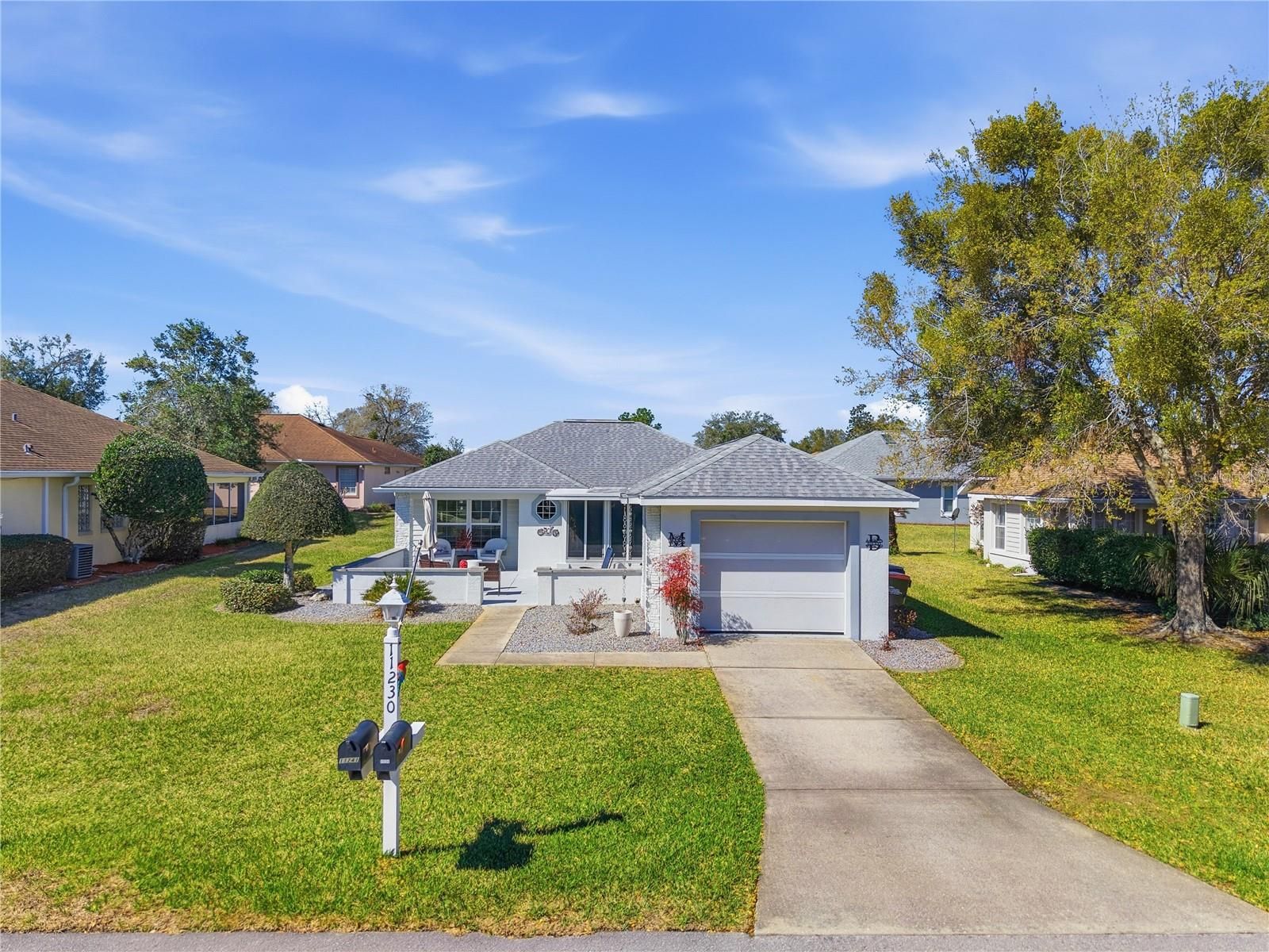 Welcome to 11230 SW 72ND AVE. Located in the desirable 55+ community of Oak Run!! This beautiful 2-bedroom, 2-bath block home has been lovingly cared for. Major updates include a new roof (2017) AC Unit (2016) and new windows in the whole house (2020) offering peace of mind for years to come. Step inside to a welcoming main living area that flows effortlessly into the beautifully eat-in kitchen, complete with a breakfast bar and pass-through to the dining area—perfect for easy entertaining. Master bedroom has walk in closet a skylight and a sliding door for outdoor access. The enclosed lanai has energy efficient blinds that were recently installed. You will also note there will be no painting needed it is all done. Community offers 5 other pools, 4 other hot tubs, tennis, pickleball, volleyball, fitness center, library, billiards room, a Dog Park and more. Plenty of activities including dances, bingo, and lots of clubs to join if you want to. Additionally, its central location provides easy access to shopping, dining, medical facilities and public parks. Come enjoy the active lifestyle of Oak Run. Don't miss this move-in ready property.