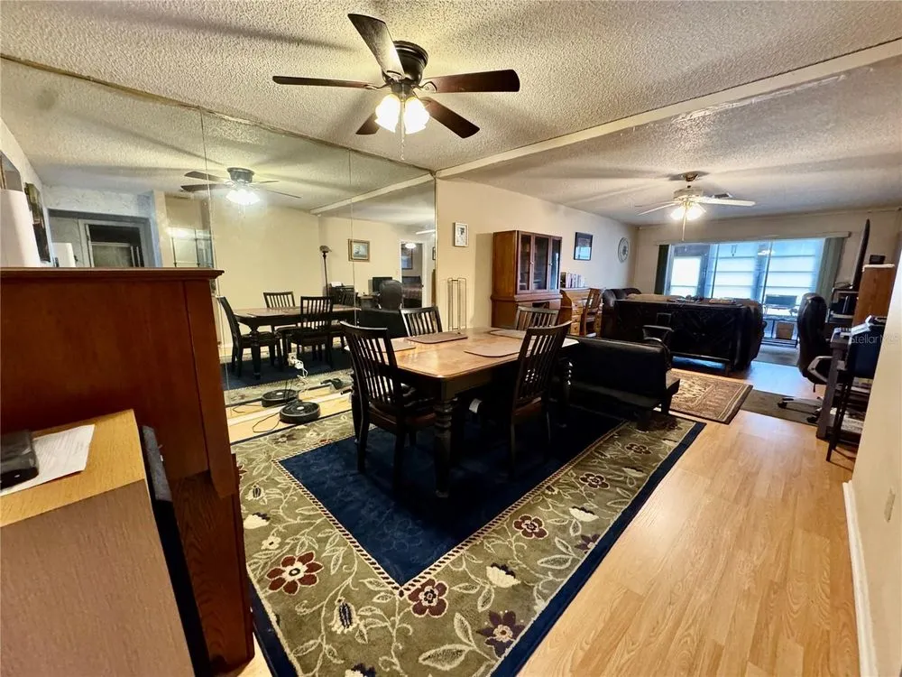 - Ceiling Fan(s), Eat-in Kitchen, Living/Dining Room, Open Floorplan, Main Level Primary, Solid Surface Counters, Split Bedrooms, Tray Ceiling(s), Walk-In Closet(s), Window Treatments