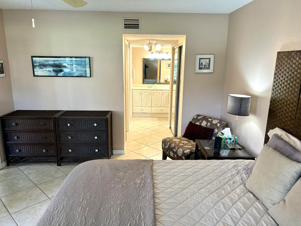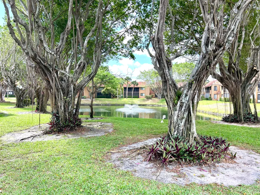 Beautiful corner unit on the ground floor, featuring 2 bedrooms and 2 bathrooms. Stylishly decorated with modern taste, this condo is located directly across from a pond and just steps from the pool. Ideal for those seeking a peaceful and tranquil environment. Optional membership available at Indian Spring Country Club.