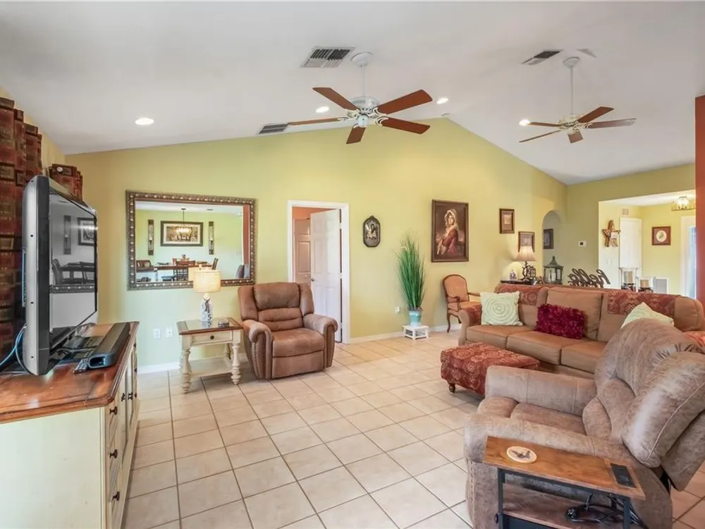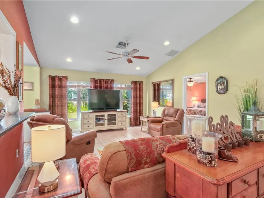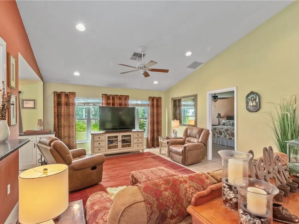 Welcome to this beautifully updated Turnberry Extended model located on a desirable corner lot in Oak Run, a vibrant 55+ community. This home offers 2 bedrooms, 2 bathrooms, and a versatile bonus room currently used as a guest space but perfect for an office, hobby room, or whatever fits your lifestyle. With 1,637 heated sq ft, it features a new roof (2024), HVAC (2016), newer appliances, indoor laundry, a front storm door for added security, high toilets, and an open floor plan filled with natural light. Every room is finished with elegant white faux wood blinds, and the kitchen boasts ceiling-height cabinets that provide abundant storage and a sleek, polished look. The two-car garage with screened doors offers excellent airflow, plenty of storage, room for your golf cart, and still space to park your car. Oak Run residents enjoy an active lifestyle with three clubhouses, five pools, five hot tubs, two fitness centers, a golf course, restaurant, pickleball, tennis, shuffleboard, bocce ball, horseshoes, and more than 110 clubs and activities. Don’t wait on this one—it won’t last long! Schedule your private tour today!