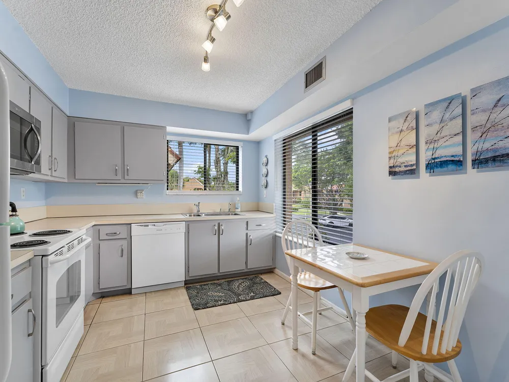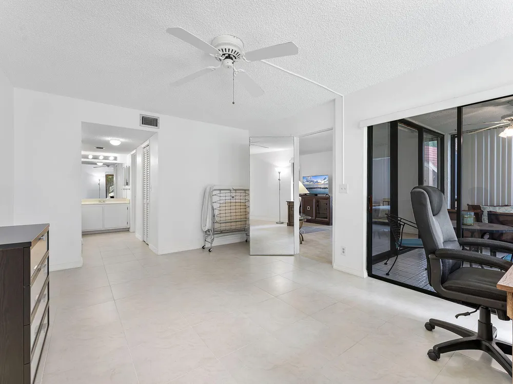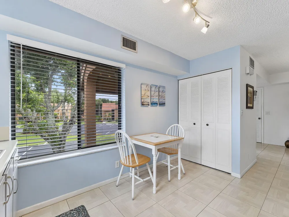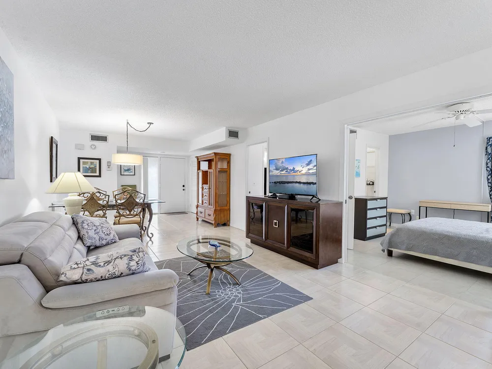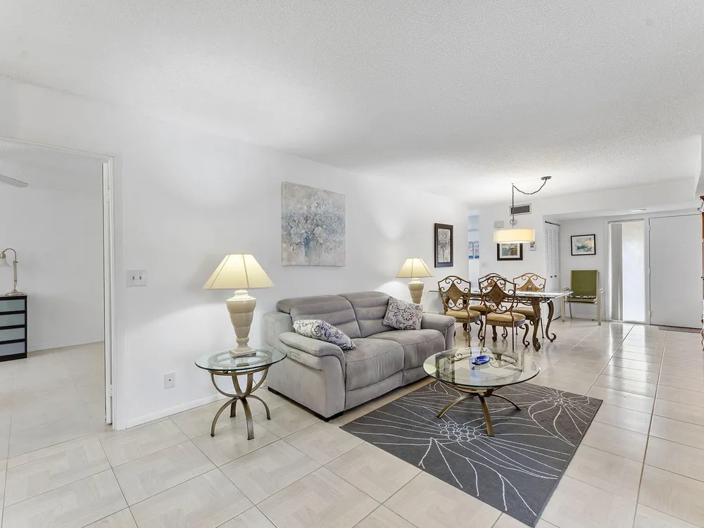 Welcome to this well-maintained 2-bedroom, 2-bathroom condo with golf course views in Indian Springs. This unit features an open floor plan with neutral tile flooring throughout, making it bright and comfortable for daily living. The living and dining areas flow nicely together, with large sliding glass doors that bring in plenty of natural light and provide access to the enclosed Florida room where you can relax while enjoying views of the golf course and landscaping.