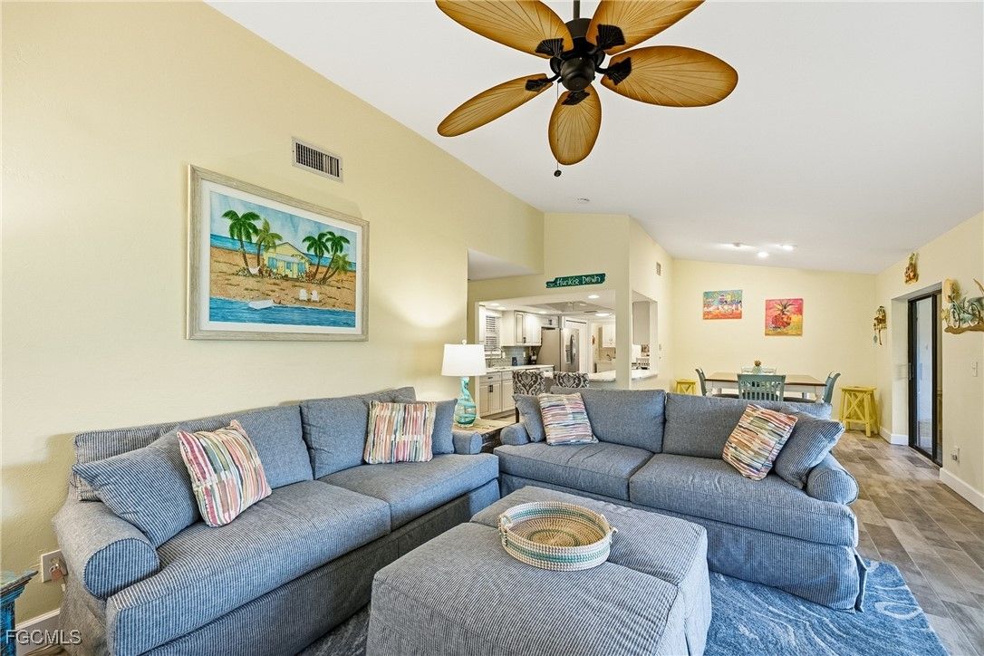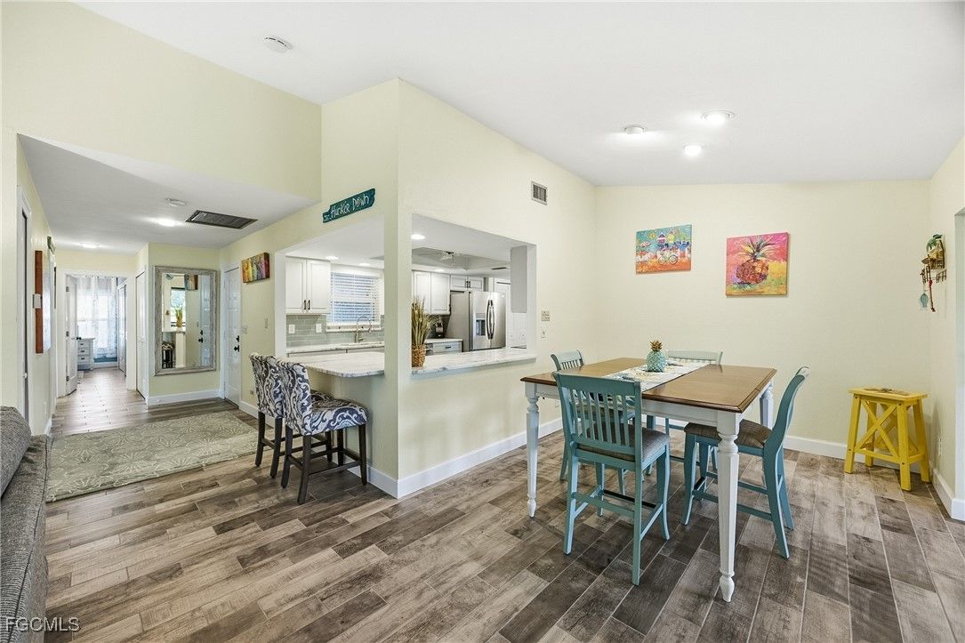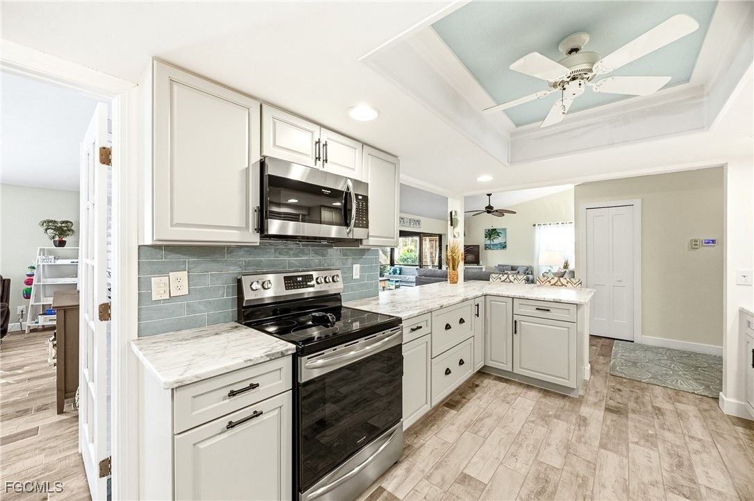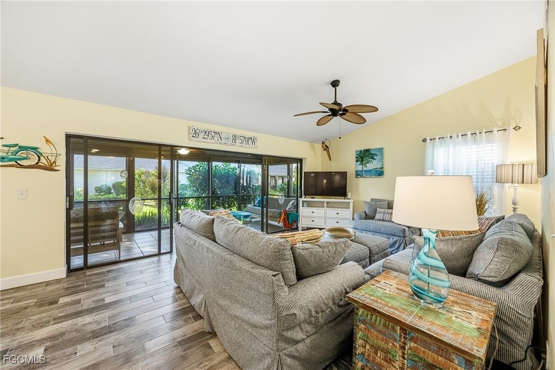 HUGE PRICE REDUCTION! HOMEOWNER'S AND FLOOD INSURANCE INCLUDED IN HOA! Don't pass this one up! This house is MOVE-IN READY and GORGEOUS! MUST SEE in the highly sought-after gated community of Cinnamon Cove, located just 3 MILES from Fort Myers Beach and 4 miles from the Sanibel Causeway! This impeccably remodeled single-family home offers the space you desire with the convenience of maintenance-free living, as the association covers exterior maintenance—including flood insurance, exterior homeowner's insurance, exterior paint, roofs, lawncare and exterior pest control. Thoughtfully updated throughout, the home features brand-new hurricane-impact windows, new gutters, beautiful wood-plank tile flooring, and completely renovated bathrooms and kitchen. The stunning kitchen boasts soft-close cabinetry with pull-out drawers, a striking tile backsplash, “leather-finish” granite countertops, stainless-steel appliances and a large pantry. The bright and airy primary suite includes a dual-sink vanity and walk-in shower, while the enclosed Florida room—equipped with electric roll-down hurricane shutters—offers additional under-air living space with an outdoor feel. This rare Beechwood model is one of the lowest price/sqft in the community and presents the largest floor plan available, enhanced by an additional family room or den that can serve as a third bedroom with its own half bath. The garage includes storage shelving and screen doors and the laundry room just off the kitchen provides additional storage and a laundry tub sink. This home is even better in person - it is truly move-in ready with nothing left to do. Cinnamon Cove offers an exceptional array of amenities, including four pools, a clubhouse, fitness center, tennis, pickleball, bocce, shuffleboard and water aerobics, along with a full-time Recreation Director who coordinates live music, food trucks, socials, community meals, and special events. Residents also enjoy access to billiards, ping pong and a library. The association also allows 12 leases per year with a 30 day minimum making this a great investment property. This quiet, convenient location is close to I-75, RSW International Airport, Red Sox and Twins training facilities, hospitals, shopping, dining, entertainment, the beach trolley and the spectacular beaches of Southwest Florida.