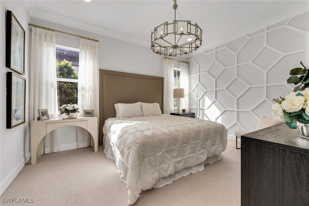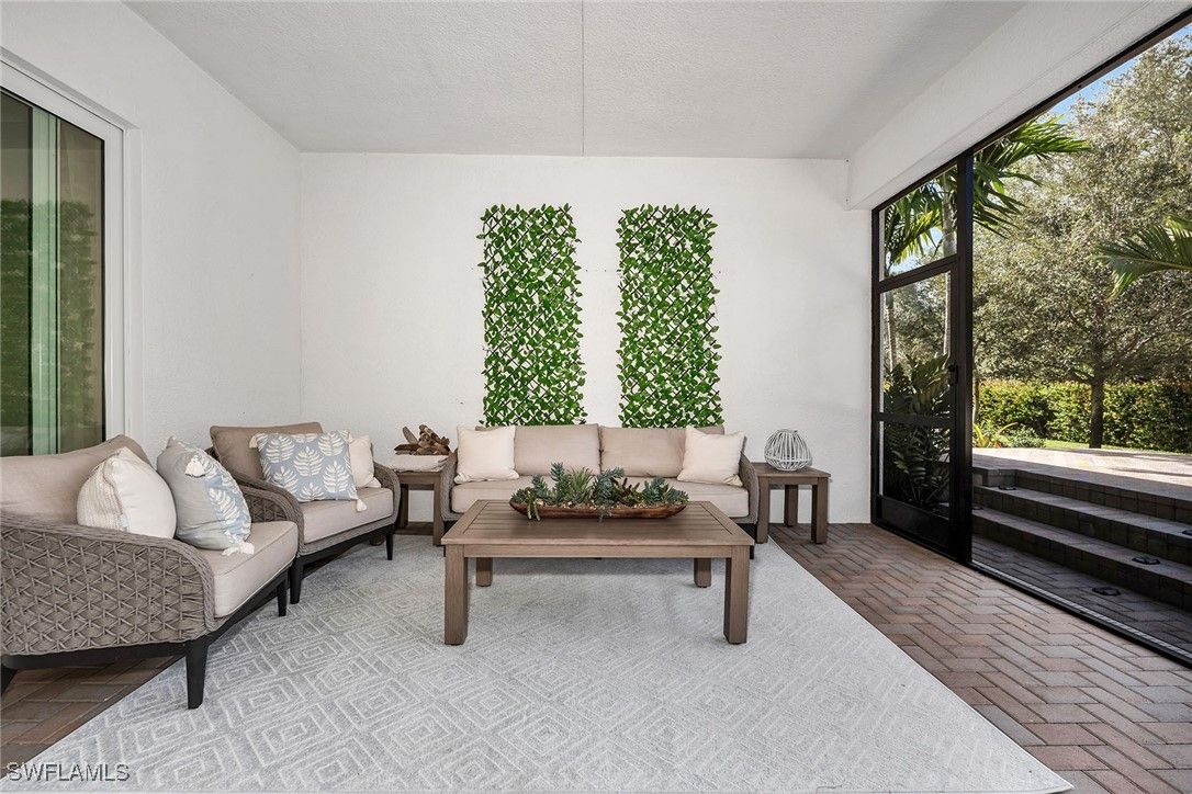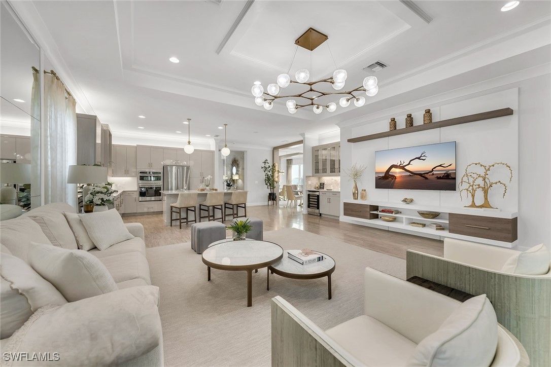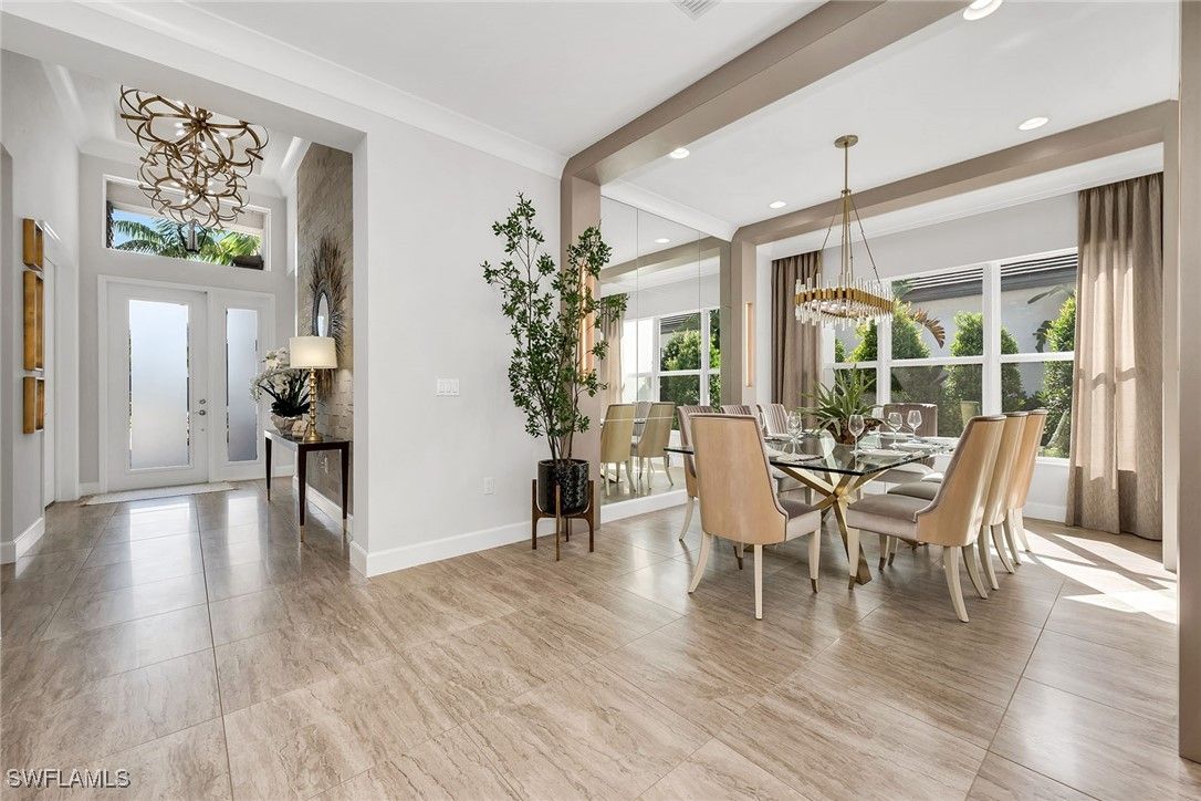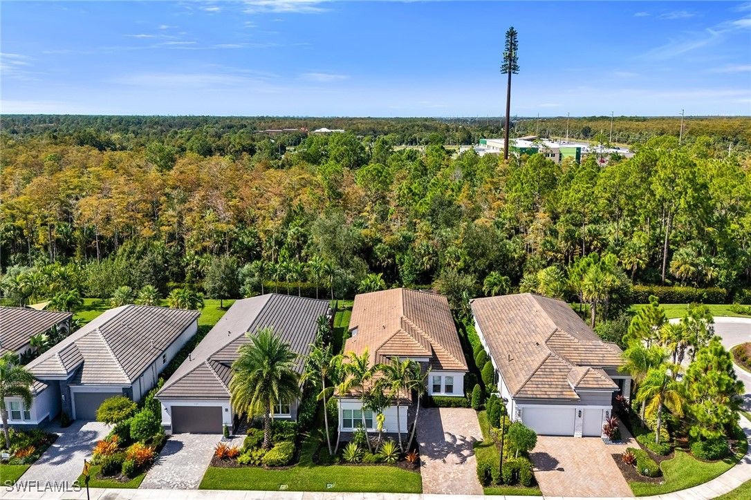 Former Sanddollar model being sold turnkey. This hardly lived-in and beautifully enhanced by owner is on a lovely landscaped, former parade of model homes on a cul-de-sac! New community in a no flood zone. Beautiful open floor plan includes all furniture and accessories as seen, complete with upgrades galore by renowned builder/developer GL Homes is now available for sale in the 55-plus new, resort-style gated community, Valencia Trails. This former model is 2,469 square feet with two bedrooms plus den/optional third bedroom, 2.5 baths, extended/oversized and screened picturesque lanai with stunning private views of the preserve, and rear and side door entry leading to a beautiful multi-level custom pavers patio with romantic bougainvillea arbor, decorative chandelier and fire pit, all visible from front entry. Absolutely stunning and spacious open floor plan with soaring 14-foot entryway ceilings. Upgraded lighting, generous custom built-in closets, coffered ceilings, upgraded millwork and bath fixtures. Oversized dining area, and beautifully integrated custom wine bar/coffee station. Gorgeous contemporary kitchen features recessed lighting, upgraded appliances, oversized island and plenty of cabinetry. Reasonable dues, and no annual fees or membership. Dues include central station alarm system with a medical alert system, rubbish removal, landscape maintenance services and staffed main gate. Enjoy your new state-of-the-art clubhouse featuring a restaurant and bar, resort-style pool, lap pool, resistance pool, gym, live music, art classes, cooking classes, day spa, tennis, pickleball, group activities, numerous clubs, Broadway-style shows, trips, visiting farmers markets, vendor shopping, large and small dog parks, and miles of walking/biking trails. Easy maintenance and luxury lifestyle, one of a kind. Enjoy your three clubhouse pools and let someone else handle the maintenance. Save the headache, hassle and thousands of dollars moving your furniture.
