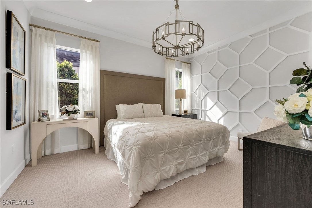 Former developer-owned, fully furnished and professionally decorated Sanddollar model, this turnkey residence has been hardly lived in and beautifully enhanced by the owner. Ideally on a lushly landscaped cul-de-sac within a former Parade of Homes enclave, the setting offers privacy and showcase appeal. New community in a no-flood zone. Beautiful open floor plan includes all furniture and accessories as seen, complete with upgrades galore by renowned builder/developer GL Homes is now available for sale in the 55-plus new, resort-style gated community, Valencia Trails. This former model is 2,469 square feet with two bedrooms plus den/optional third bedroom, 2.5 baths, extended/oversized and screened picturesque lanai with stunning private views of the preserve, and rear and side door entry leading to a beautiful multi-level custom pavers patio with romantic bougainvillea arbor, decorative chandelier and fire pit, all visible from front entry. Absolutely stunning and spacious open floor plan with soaring 14-foot entryway ceilings. Upgraded lighting, generous custom built-in closets, coffered ceilings, upgraded millwork and bath fixtures. Oversized dining area, and beautifully integrated custom wine bar/coffee station. Gorgeous contemporary kitchen features recessed lighting, upgraded appliances, oversized island and plenty of cabinetry. Reasonable dues, and no annual fees or membership. Dues include central station alarm system with a medical alert system, rubbish removal, landscape maintenance services and staffed main gate. Enjoy your new state-of-the-art clubhouse featuring a restaurant and bar, resort-style pool, lap pool, resistance pool, gym, live music, art classes, cooking classes, day spa, tennis, pickleball, group activities, numerous clubs, Broadway-style shows, trips, visiting farmers markets, vendor shopping, large and small dog parks, and miles of recreational/biking trails. Easy maintenance and luxury lifestyle, one of a kind. Enjoy your three clubhouse pools and let someone else handle the maintenance. Save the headache, hassle and thousands of dollars moving your furniture.