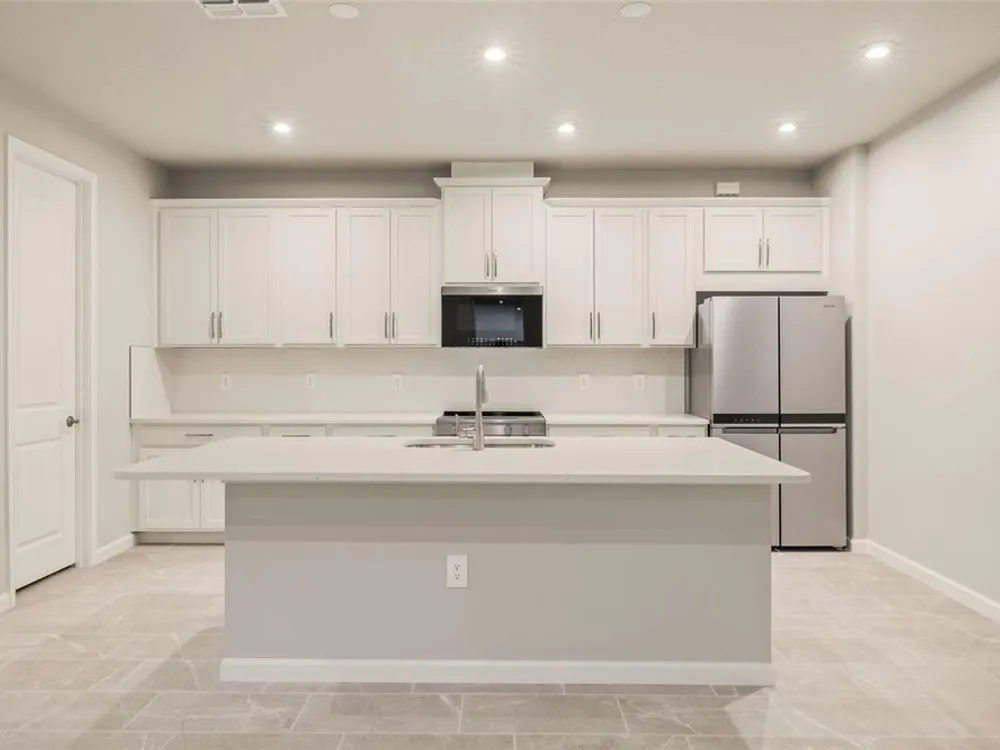 - Eat-in Kitchen, High Ceilings, In-Wall Pest Control, Open Floorplan, Main Level Primary, Solid Surface Counters, Thermostat, Tray Ceiling(s)