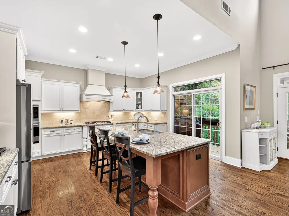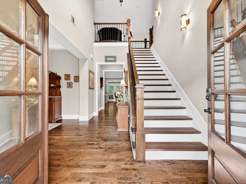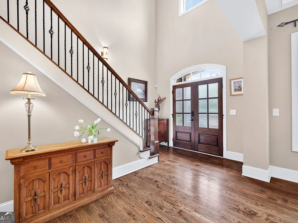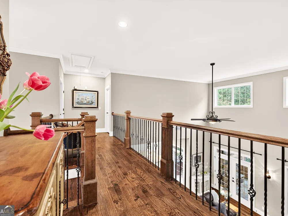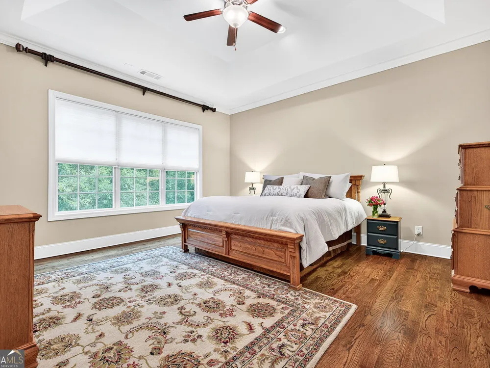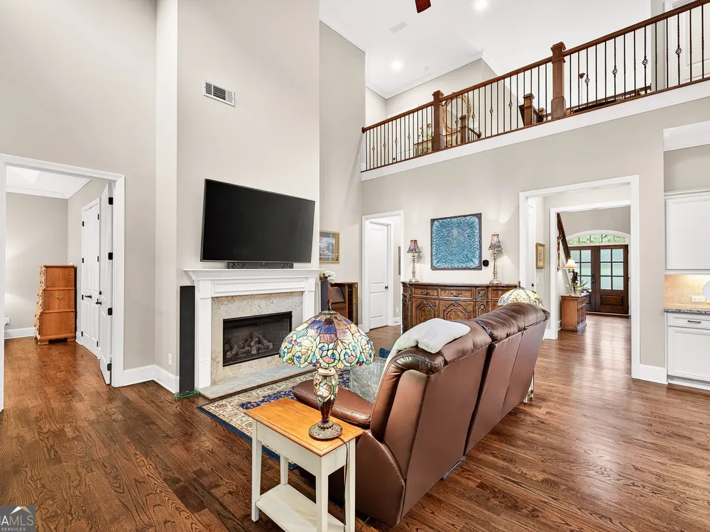 ABSOLUTELY IMMACULATE and METICULOUSLY maintained! Versatile floor plan in award winning Active Adult 55+ Community. Gorgeous wooded view. MAIN LEVEL: Gracious two-story foyer with lots of natural light. Stunning hardwood floors throughout main level really emphasize the open concept. Dining Room with coffered ceiling. Spacious family room is open to the kitchen and lanai. Fireplaces in both the living room and lanai create a cozy and congenial entertainment space. Lanai has insulated casement windows and stacked stone fireplace - a perfect four-season living space. You'll especially love the private and tranquil wooded view that's perfect for watching TV, reading, dining, or just relaxing. Creamy cabinetry, great lighting, and lots of granite countertop space offer ample storage and workspace in the kitchen. A grill deck off the kitchen makes outdoor cooking a year 'round pleasure. Primary Suite is spacious with huge walk-in shower, soaking tub, double sink vanities with granite countertops and linen tower for storage. HIS and HER custom closets are simply fabulous providing individual organized space for your wardrobe. UPSTAIRS, you'll find three additional bedrooms and a bonus/media room. Walk-in closets in each bedroom provide generous storage. The unfinished TERRACE level expands your living possibilities even further. It offers great options for another bedroom and full bath (already plumbed), workshop, recreation space, storage. A sense of COMMUNITY is so important to an Active Adult lifestyle. This community offers resort-like amenities that enhance your lifestyle. Enjoy the pool, well-appointed clubhouse, state-of-the-art fitness center, tennis and PICKLEBALL courts, community garden, and scenic walking trails. You'll love the many planned activities - a wonderful way to meet neighbors and friends. CONVENIENCE is key!! Easy access to a variety of restaurants, shopping destinations, Emory hospital and medical facilities, and several golf courses and country clubs. Come and check this out - the perfect combination of classy design, practical comfort and a vibrant community.
