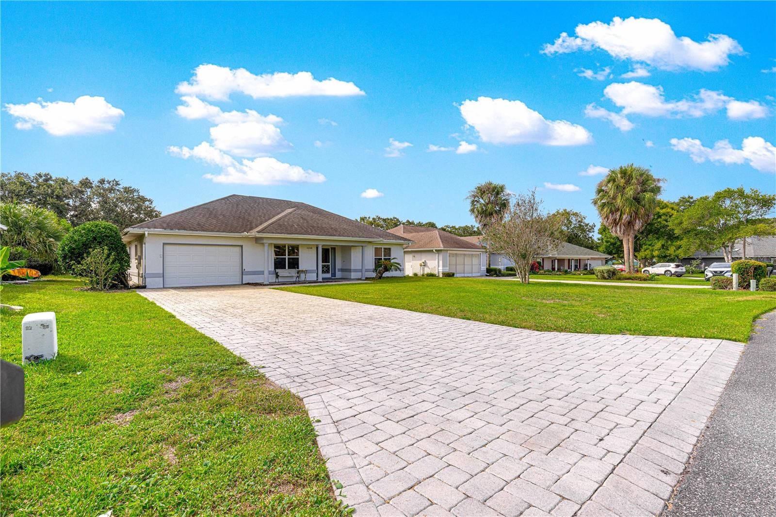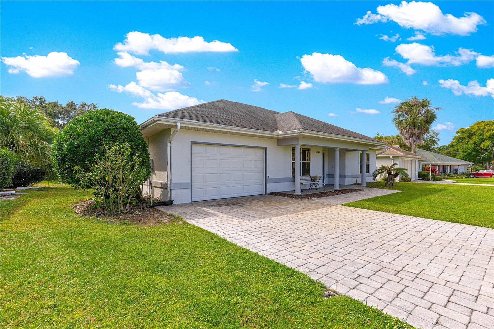 Welcome to the great community of Stonecrest. No CDD or Bond. This two bedroom two Bathroom home is ready for you to remodel and to make your own. As you drive up to this beautiful home you will notice the very large driveway that will accommodate a lot of your friends vehicles so they won't have to park on the street. The driveway has been covered in brick pavers and as you park your car you will notice the covered front porch a great place to enjoy your morning coffee in any weather. As you walk into the front door you will notice the open floor plan but also notice the convenience of both bedroom entrances just inside the front door. As you walk in the home further you will see the great view of no rear neighbors and the view of a very large pond across the street from this home. Being located very close to the main entrance of Stonecrest you have the convenience of walking to a large amount of the great activities we have here. As you walk through the dining room and into the large Kitchen you will see the large open areas that are great for entertaining all your friends. The large lanai is a great place to have an open air dinner and the added bird cage is some great added room if some friends stop over for an afternoon visit. The A/C was replaced in 2020. This home is ready to make your visions and dreams come true. Hurry before it's gone.