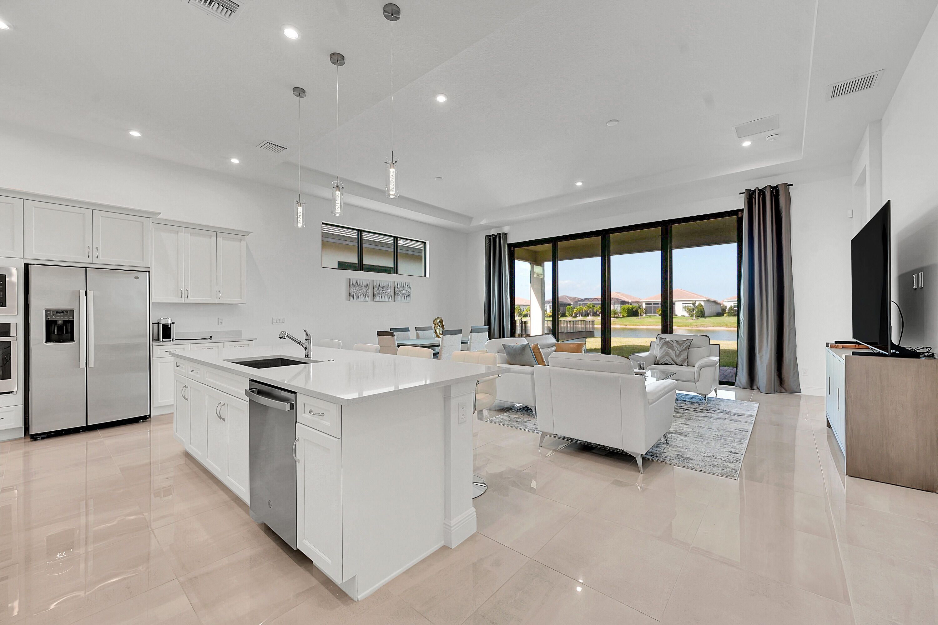 This 2024 CBS home in PGA Verano offers a split floor plan, premium upgrades and a move-in-ready lifestyle. Featuring 3BR/2BA, this bright and open layout includes impact glass, sleek tile flooring, quartz counters, stainless appliances, 16'x10' sliders, and a large kitchen island. The extended lot showcases long lake views, ideal for a future pool. Enjoy a spacious primary suite with spa-like bath and walk-in closet. Verano's resort-style amenities include indoor/outdoor pools, 27 pickleball courts, clubhouse, fitness, tennis, and more. HOA includes cable, internet, lawn care, and security.
