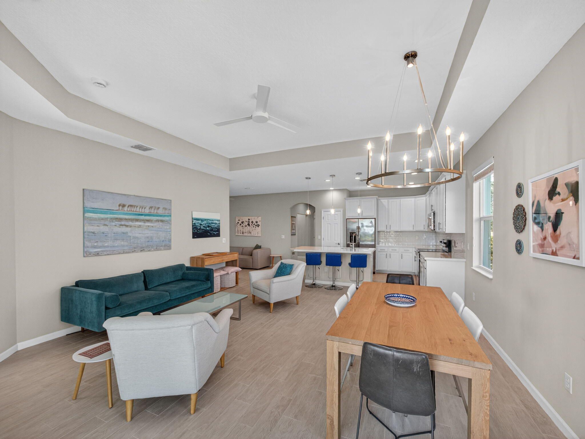 Experience refined Florida living in this exquisite Mahogany model villa, perfectly situated in the coveted LakePark at Tradition community. Designed with modern elegance in mind, this 2-bedroom plus den, 2-bathroom residence showcases a seamless blend of style, comfort, and tranquility. Step inside to an open-concept floor plan featuring contemporary tile flooring throughout, gorgeous quartz countertops, and full-impact glass windows that invite natural light and provide year-round peace of mind. The gourmet kitchen flows seamlessly into the spacious living and dining areas--perfect for entertaining or unwinding in style. Your private outdoor oasis awaits with a resort-style pool and spa overlooking lush preserve views, creating a tranquil retreat that feels worlds away.