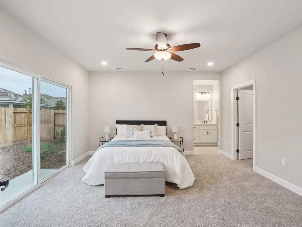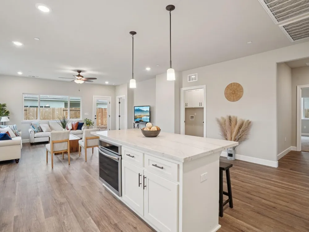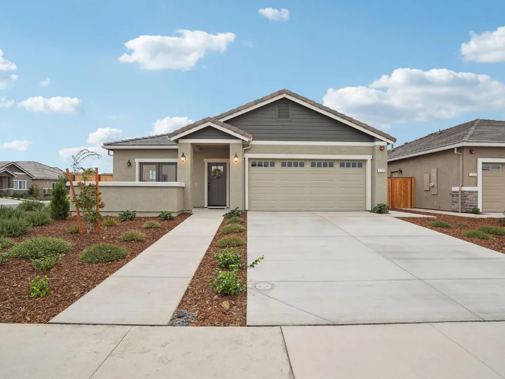 New - Beautiful - Energy Efficient. Price INCLUDES granite counters, custom shaker cabinets, stainless steel appliances, luxury vinyl plank flooring & two covered covered patios. Dry Creek Oaks, a gated active adult community in Galt (short drive to Sacramento). 4,500 square foot clubhouse on-site with swimming pool, pickle ball courts, bocce ball, putting green, horseshoes, walking trail. Walk to Golf Course.