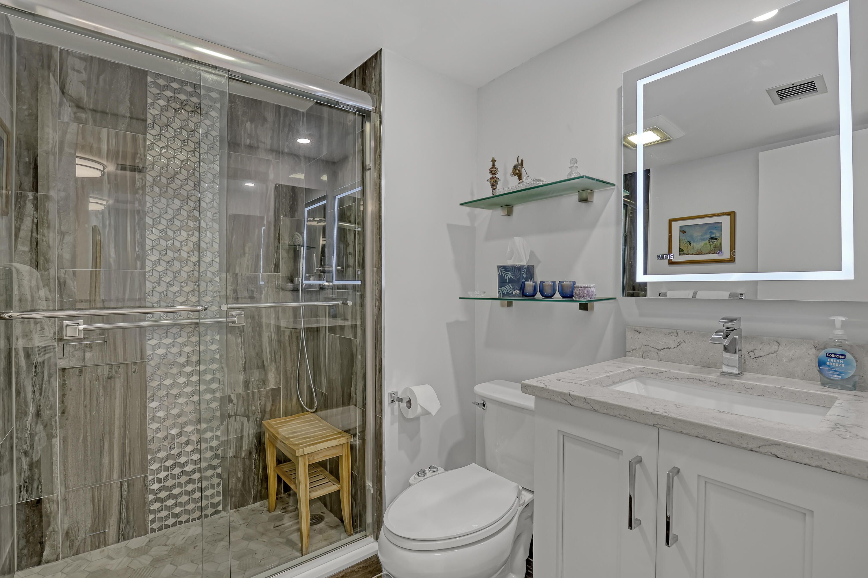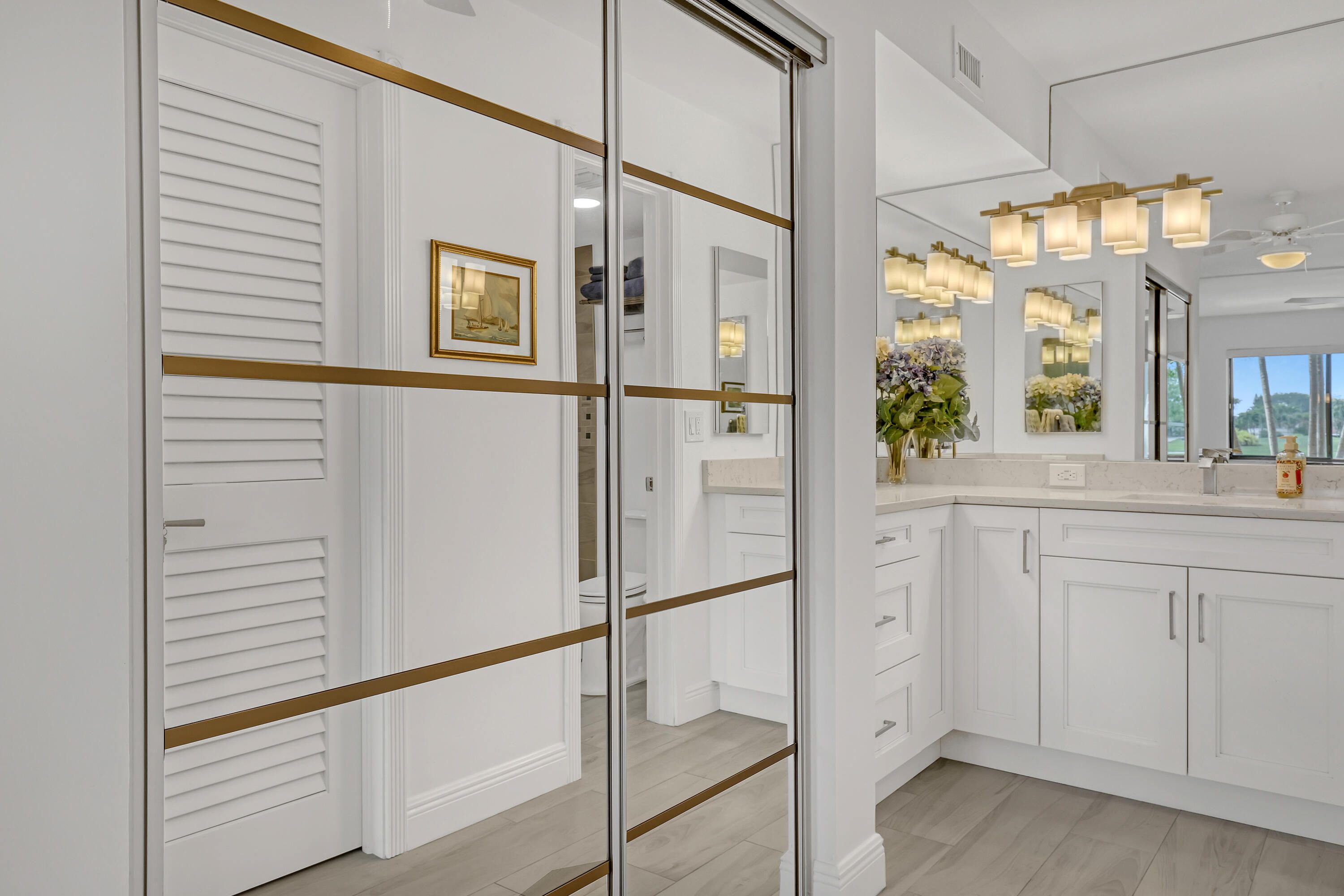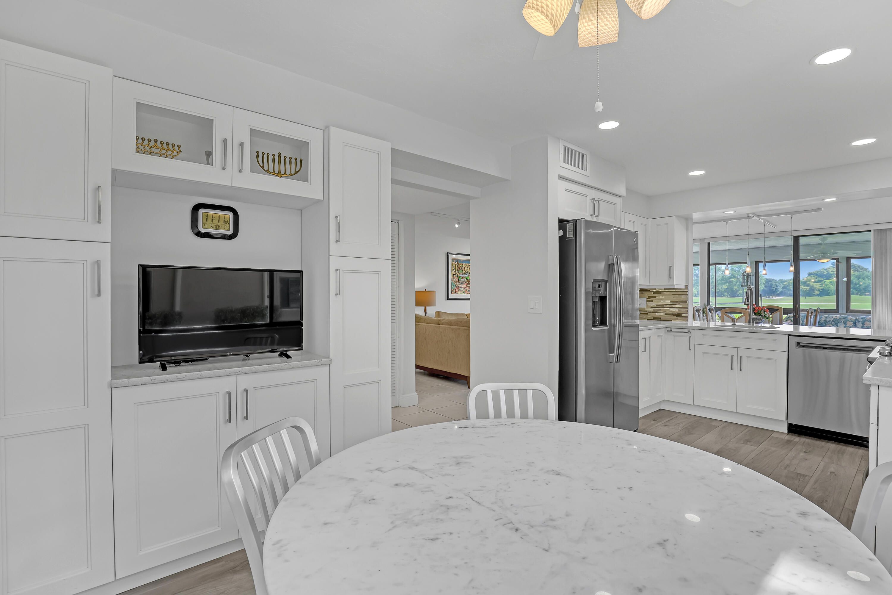 Wonderful rare FIRST floor corner Condo in the Green Lakes Village of Indian Springs, a +55 community. This 3 bedroom -2 bathroom Condo is ready for someone who wants the work done and move in ready. Primary and 2nd bathrooms have been attractively remodeled as well as the kitchen, all with quartz countertops. Relaxation at its best, views from primary bedroom, living room and spacious patio of the lake and golf course. This home is very bright with lots of windows. Stainless steel appliances 2018, dishwasher 2026, HWH 2017, AC 8/2024 and electrical panel 2018. Roof 2023 by Condo Association. Come and see this home, you will happy to didn't miss this one. leasing rules, no renting for 1st 2 years, 90 day minimum and can only rent once a year. Capital Contribution paid by buyer at closing $1,517.50. Green lakes Condo Association $1,578.17/Quarter and Indian Springs Master Association $607/quarter. Excluded from purchase but negotiable are the shelves in primary bathroom, primary bedroom and living room and safe in Primary closet. Indian Springs Country Club is an available option for residents but not mandatory.