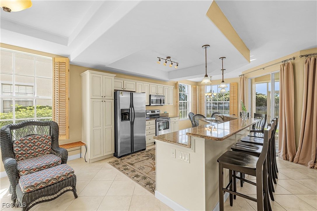 First floor renovated turnkey furnished condo with tranquil lake view. This unit features a beautifully renovated kitchen with an open-concept floorplan, allowing seamless flow between the kitchen, dining, and living areas. This airy layout allows you to cook, entertain, and unwind all in one connected space. Tile flooring throughout the entire condo, granite and custom cabinets in the kitchen and dining rooms, plantation shutters on the kitchen and dining area windows, and updated bathrooms. Enjoy lakefront bird watching from your patio and convenient access to the Tamarind Cay pool and spa which also includes a grill for BBQ's. Ideal for comfortable living or as a seasonal retreat! Some amenities herein available but not offered - Country Club membership is required for club amenities and is available for purchase separately through the clubhouse.