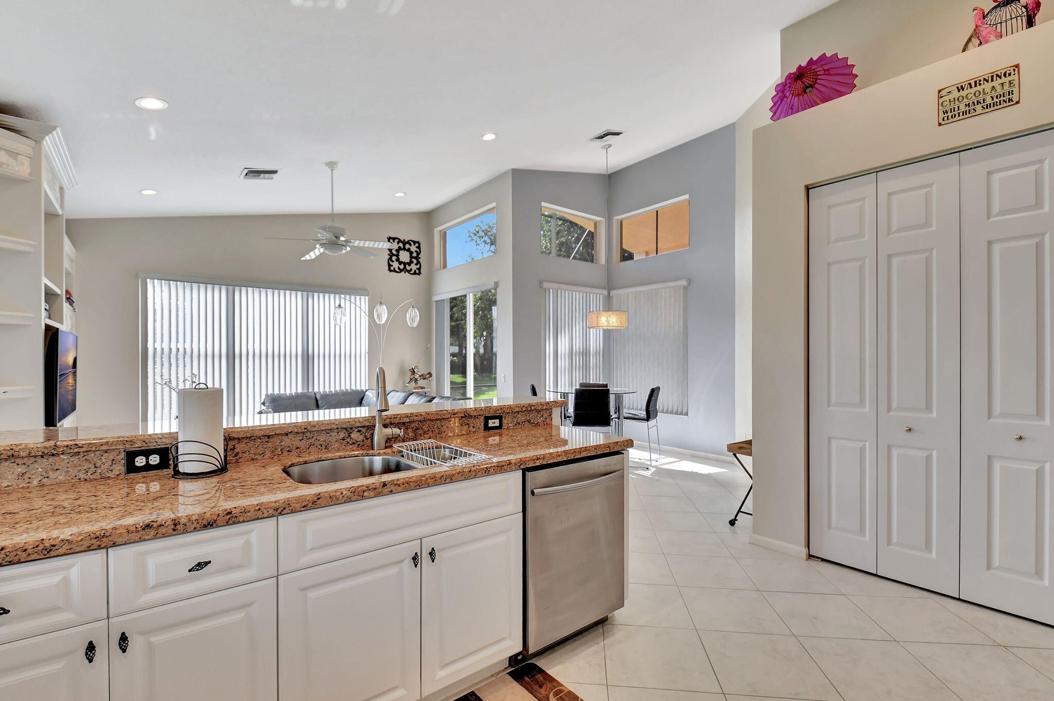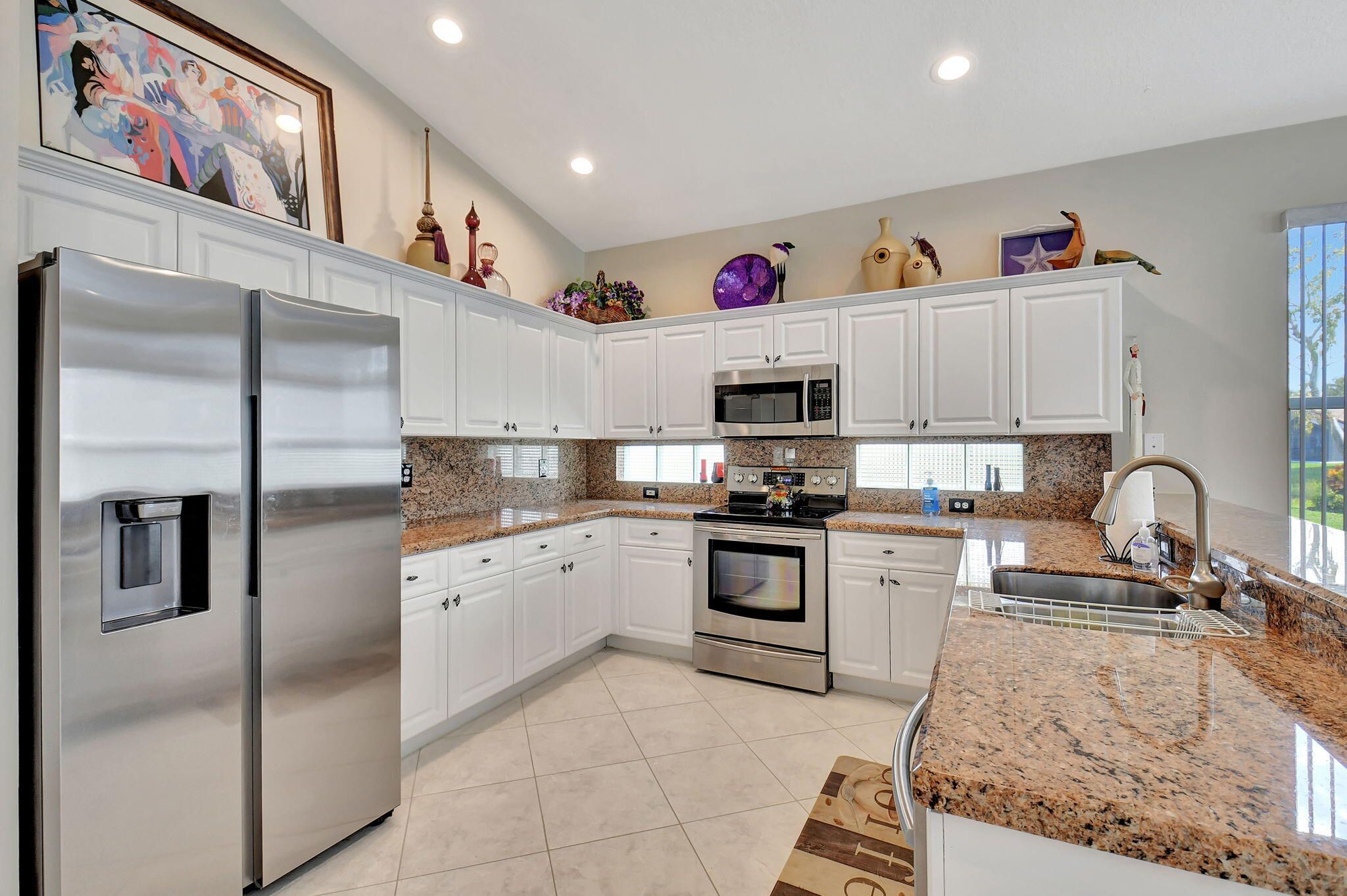 PROBATE HAS BEEN DELAYED AND BUYERS DO NOT WANT TO WAIT. THEIR LOSS IS YOUR GAIN! This stunning property with a NEW ROOF (2023) and New AC (2023) boasts 3,077 square feet of living space, featuring vaulted ceilings and picturesque views of a serene lake and garden. Perfect for entertaining, this residence offers an open concept kitchen, family room, formal dining room, formal living room, and a spacious screened patio. The open concept kitchen flows seamlessly into the family room and is equipped with granite countertops and backsplash, ample cabinets, stainless-steel appliances, a snack bar, and a large pantry. The family room provides a welcoming space for relaxation and gatherings, with easy access to the kitchen.