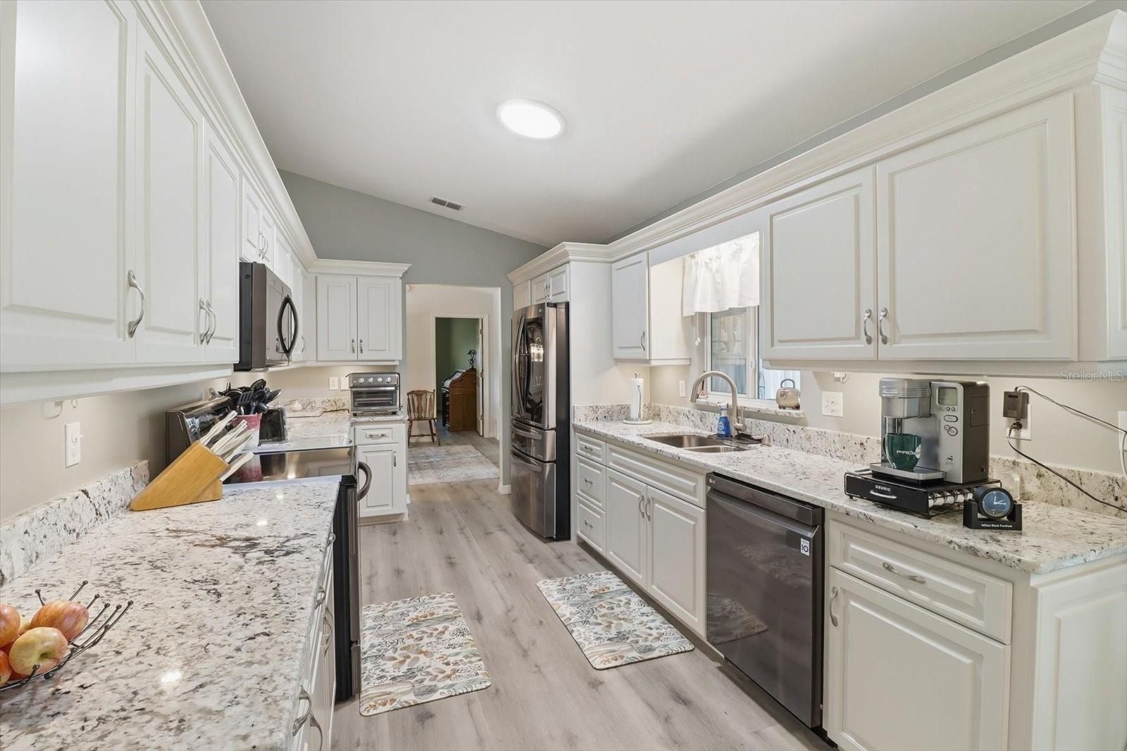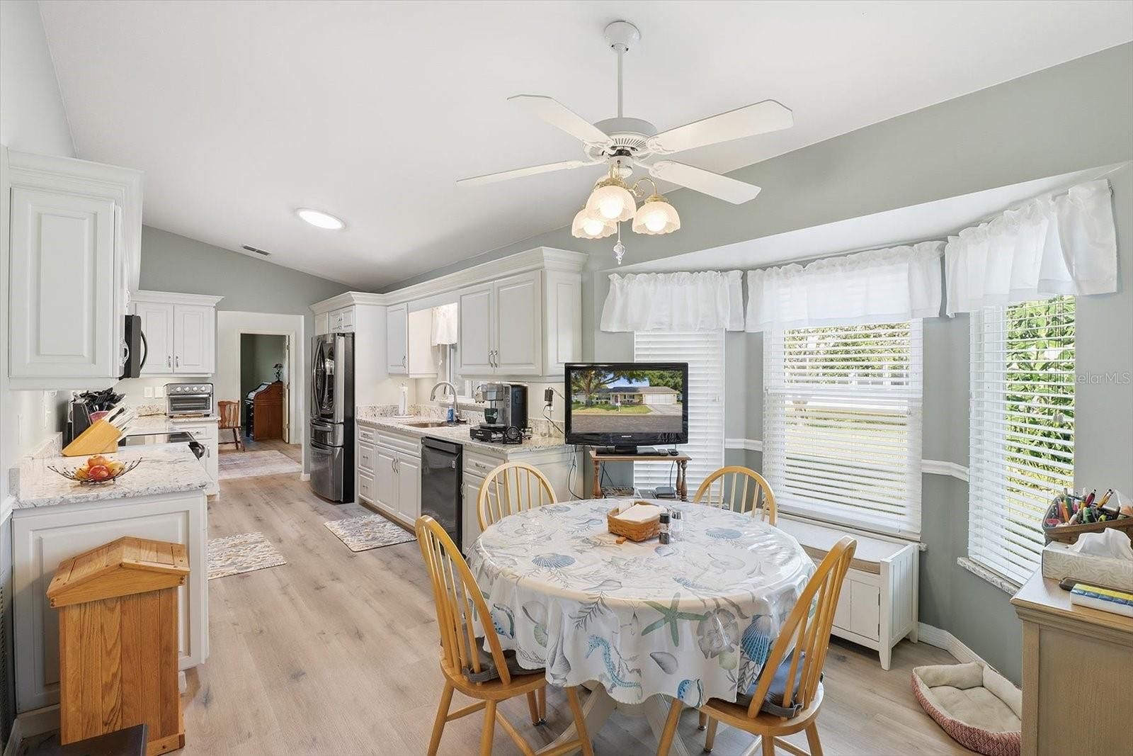 This beautiful 2 bedroom, den and 2 bathroom updated home in the gated, 55+ Spruce Creek Preserve golf community, this property offers easy, carefree Florida living just 15 minutes from downtown Ocala. Located close to nature, you’ll be feet from a wildlife preserve and a short drive to Rainbow Springs State Park, making outdoor adventures a daily possibility. The home sits in a welcoming neighborhood with fantastic amenities at the community center, perfect for social events, activities, and staying active.Inside, you’ll find thoughtful updates and quality finishes throughout. A new roof (2022) and a transferable preventative termite bond provide peace of mind, while solar tubes brighten the living spaces and newly installed LVP flooring adds a modern, low-maintenance touch. Granite countertops grace the kitchen and bathrooms, and the updates extend to stylish, refreshed baths. The large primary bedroom features a walk-in closet for ample storage, and the sliding screened garage door adds convenience and a touch of charm. Public water and sewer keep utility bills predictable, and the screened Florida room invites relaxing evenings year-round