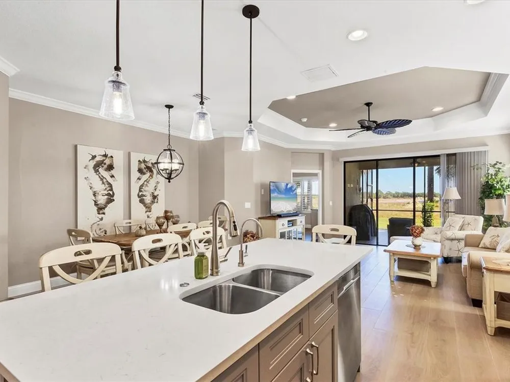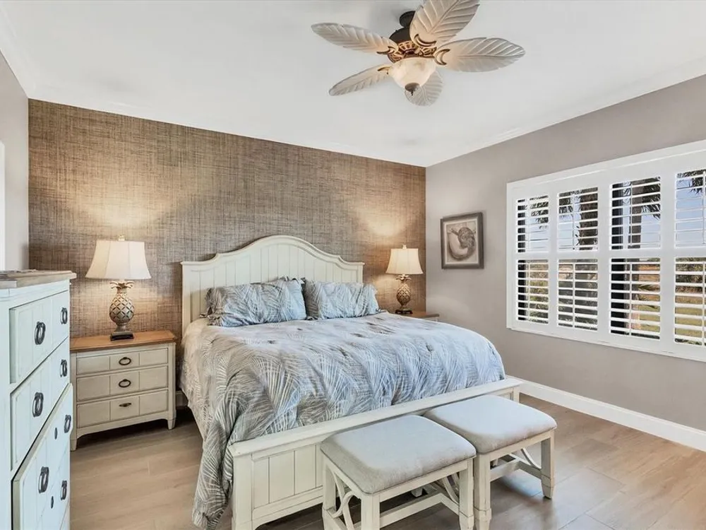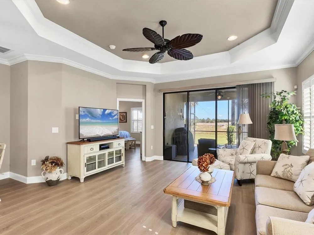 Turnkey Luxury Living at Boca Royale Golf & Country Club Move-in ready—just bring your suntan lotion and golf clubs! Nestled amidst serene lakes and lush natural preserves, Boca Royale Golf & Country Club offers a private sanctuary just moments from Southwest Florida’s most stunning beaches. This prestigious gated community defines luxury living with a perfect blend of sophistication, recreation, and leisure. Tucked within this luxurious gated enclave, this completely remodeled villa-style home exudes timeless elegance and modern comfort. Spanning 1,638 square feet, the sought-after Tidewinds floor plan is surrounded by tropical palms and peaceful water view, creating a serene retreat that feels like a permanent vacation. Step inside and you’ll be greeted by a beautifully upgraded front glass door leading into a welcoming foyer. Every detail has been thoughtfully curated—from crown molding, designer wallpaper, and plantation shutters to plank-style porcelain tile flooring throughout. The den at the front of the home provides a versatile space ideal for a home office or library. The chef’s kitchen is a true showstopper, featuring quartz countertops, upgraded stainless steel appliances, under-cabinet lighting, glass subway backsplash, walk-in pantry, and additional cabinetry with pull-out shelving for optimal storage. The great room with tray-ceiling flows effortlessly onto the tiled and screened lanai, complete with a pull-down sunshade—perfect for relaxing with a morning coffee or entertaining friends. The primary suite offers a peaceful retreat, complete with dual closets and a spa-like bath featuring dual sinks and a luxurious walk-in Roman shower. A secondary bedroom and full guest bath provide comfort and privacy for visiting family and friends. Modern conveniences abound, including a laundry room with Samsung appliances, 42-inch cabinets, and an upgraded utility sink. The two-car garage is equipped with a central vacuum system, ceiling-mounted bike racks, and a Level 2 EV charger. Additional upgrades include a Guardian security system, Wi-Fi-controlled thermostat, UV-protected HVAC system with germicidal and odor-control features, gas water heater, and a state-of-the-art water treatment system. This prestigious gated community defines luxury living with a perfect blend of sophistication, recreation, and leisure. Enjoy an exceptional array of amenities tailored to your lifestyle. Golf enthusiasts will love the meticulously maintained 18-hole, par-72 championship golf course with a driving range, putting green, and Pro Shop. Tennis and pickleball players can take advantage of six lighted Har-Tru clay courts, while fitness, dining, and social memberships cater to every interest. The Georgian-style Clubhouse serves as the community’s centerpiece, offering sweeping golf course views and multiple dining options from casual to fine. Resort-style amenities at The Resort include a pool, spa, fitness center, and clubroom facilities—all designed to complement a life well lived. Set on over 1,000 acres of privacy and natural beauty, Boca Royale offers an exceptional haven for those who value elegance, community, and a relaxed Florida lifestyle away from the crowds. This is more than a home—it’s a way of life. Whether you’re a golf aficionado, tennis enthusiast, or simply seeking peaceful, upscale living, Boca Royale Golf & Country Club is where your Florida dreams become reality.