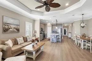 - Ceiling Fan(s), Central Vacuum, High Ceilings, Living/Dining Room, Open Floorplan, Main Level Primary, Stone Counters, Tray Ceiling(s), Walk-In Closet(s), Window Treatments