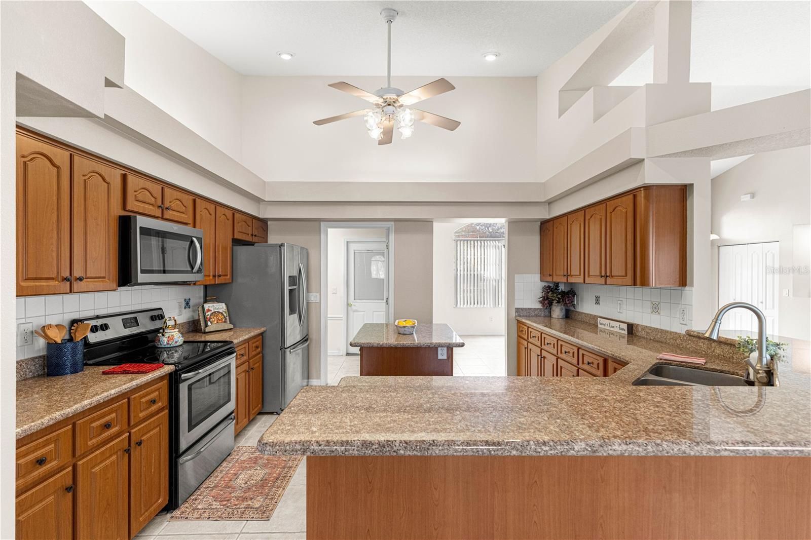 Poolside Living on an Oversized Cul-de-Sac Lot! Set on a generous .61-acre lot in a quiet cul-de-sac, this 3-bedroom, 2-bath pool home offers space, privacy, and classic Florida living. With 2,150 square feet of living space and an expansive driveway, there’s room for everyday life plus guests without playing musical cars. Inside, vaulted ceilings and abundant natural light create an open, welcoming atmosphere. The kitchen is both functional and inviting, featuring granite countertops, a coordinating backsplash, stainless steel appliances, ample cabinet and counter space, and a built-in wine rack—ideal for cooking, entertaining, or casual gatherings. The primary suite is thoughtfully expanded and serves as a true retreat, complete with wood flooring, a tray ceiling, and private access to the pool. The en-suite bath offers dual sinks, a walk-in shower, and a relaxing garden tub. Step outside to a screened-in pool overlooking a spacious backyard. The oversized lot offers ample space for gardening or outdoor projects, complemented by a powered shed ideal for storing tools, additional storage, or a hobby space. A dedicated irrigation well helps keep gardens and landscaping thriving year-round. Additional features include a two-car garage with utility sink and pull-down attic access, a newer roof (2022), and a water heater replaced in 2025. Enjoy privacy, space, and the laid-back Florida lifestyle in a desirable setting. Schedule your private showing today.