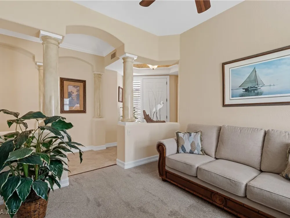 Welcome to your slice of paradise, a meticulously maintained first-floor coach home nestled within the prestigious Gulf Harbour Yacht & Country Club in Fort Myers. This residence offers around 2,000 square feet of living space, featuring 2 bedrooms, den and 2 bathrooms, providing ample room for comfort and relaxation. Upon entering, you'll be greeted by an open and inviting floor plan that seamlessly blends the living, dining, and kitchen areas, ideal for both everyday living and entertaining. The southern exposure ensures abundant natural light throughout the day, creating a warm and welcoming ambiance. The well-appointed kitchen boasts modern appliances, ample cabinetry, and a convenient breakfast bar, making meal preparation a delight. The primary suite serves as a tranquil retreat, complete with a spacious walk-in closet and an en-suite bathroom featuring dual vanities and a luxurious soaking tub. Additional highlights of this condo include a private screened lanai, perfect for enjoying serene golf course views and the famous SWFL sunsets, as well as an attached two-car garage offering both convenience and extra storage space. Gulf Harbour Yacht & Country Club offers world-class amenities just moments away, including a championship golf course, tennis courts, a marina, fitness center, and fine dining. Whether you’re an avid golfer, a boating enthusiast, or simply seeking the ultimate in luxury living, this home delivers it all. Exciting developments are on the horizon with a newly approved clubhouse renovation, set to enhance the member's lifestyle even further. Now is the perfect time to secure your place in this sought-after neighborhood. NEW Sports Membership Fee Just Announced – NOW ONLY $20,000! Take advantage of this limited-time opportunity to join Gulf Harbour’s prestigious Sports Membership at a fraction of the original cost. Previously $52,000 – now just $20,000. Enjoy world-class amenities, championship golf, tennis, fitness, and social events in one of Florida’s most desirable communities.