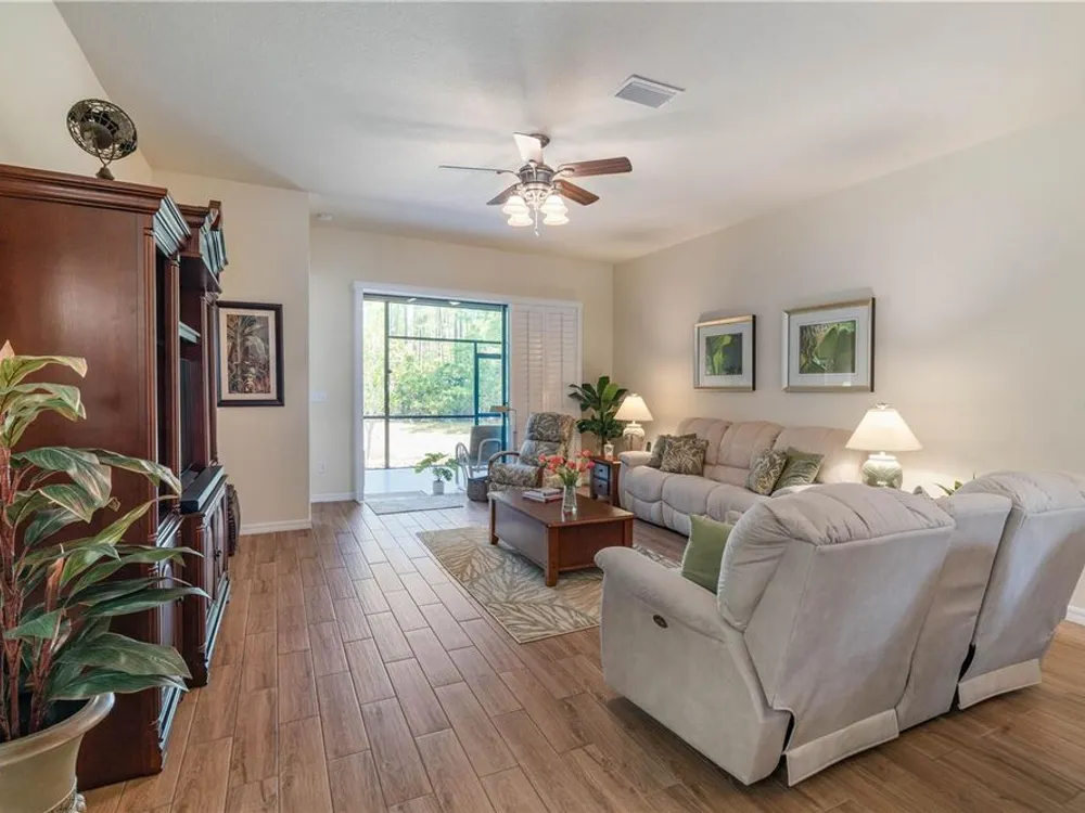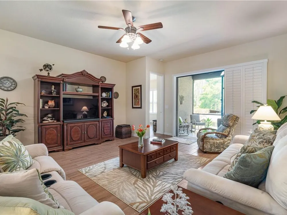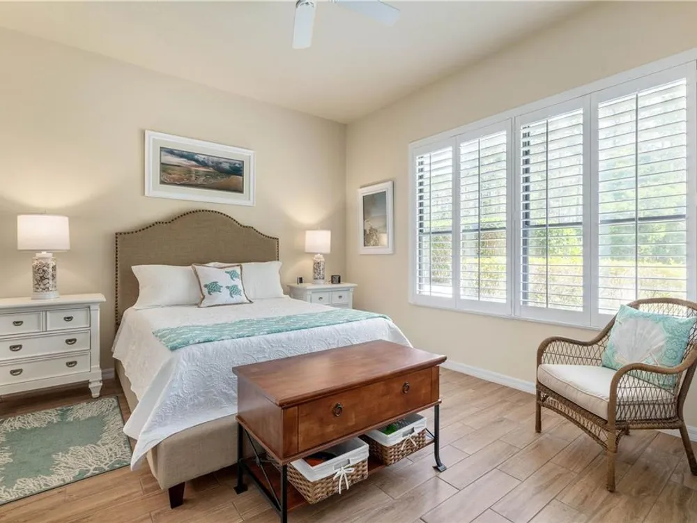 Being sold FURNISHED !Beautiful 2 bedroom, 2 bath townhome overlooking the pond! Foyer leads to an open combination dining/family room combination, with 10 ft. ceilings. Kitchen features a breakfast bar, cabinets and granite countertops. Newer dishwasher and refrigerator is 1 year old. The master bedroom overlooks the pond, plantation shutters, ensuite with double sinks, large walk in shower & closet. Split bedrooms add privacy for guests with a full hall bathroom. Enjoy your private lanai off the family room, that has Plantation shutters. Lanai floor is tiled & matches the front door entrance! New plank tile flooring, HVAC was replaced in 4/17, new roof 3/22. New lanai screens were just installed 4/25. Come enjoy the Plantation Bay Lifestyle! 45 holes of golf, tennis, pickle ball, 2 pools, cabana, spa/fitness center & our new clubhouse! Buyers of this home will receive a substantial discount on the initiation fees, when they join within 30 days of closing!