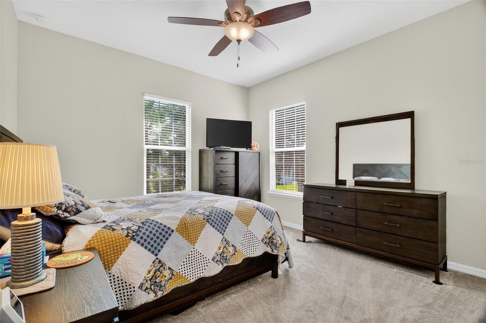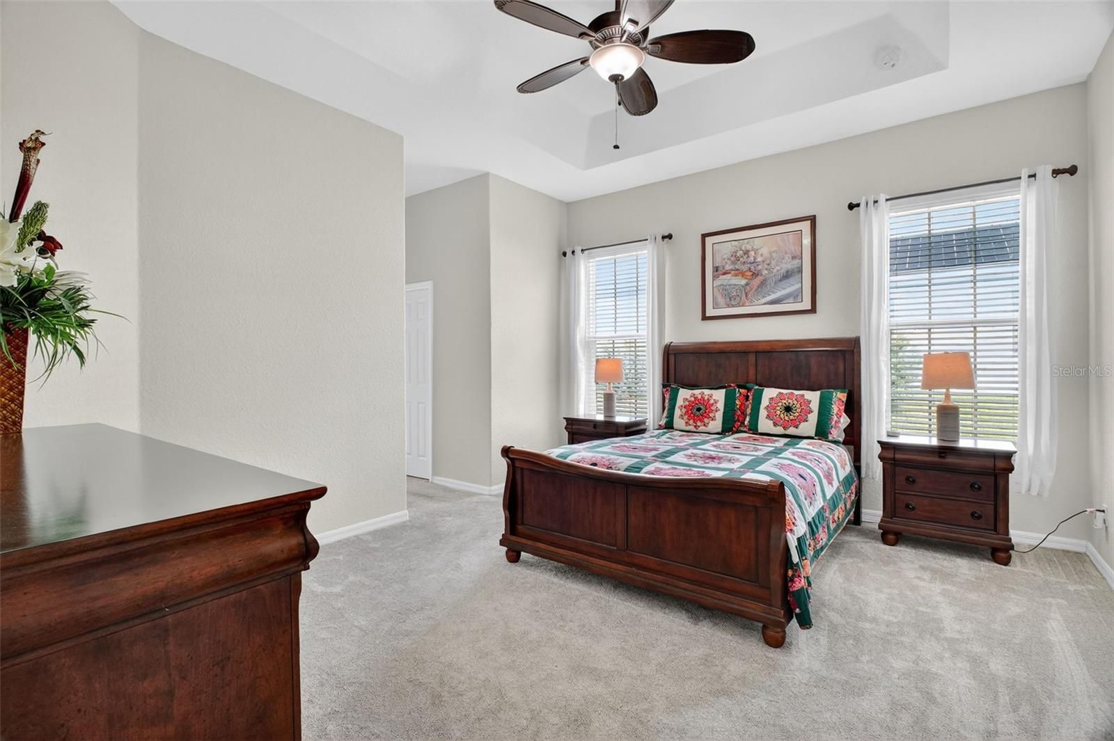 - Ceiling Fan(s), Eat-in Kitchen, Living/Dining Room, Open Floorplan, Main Level Primary, Stone Counters, Tray Ceiling(s), Walk-In Closet(s), Window Treatments