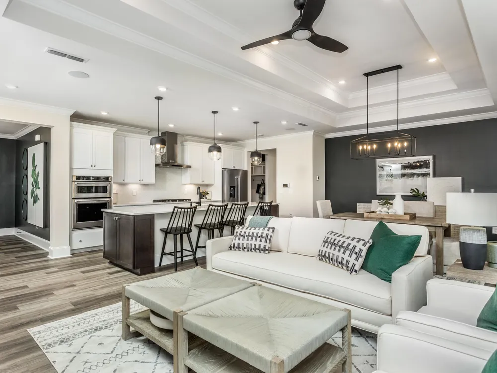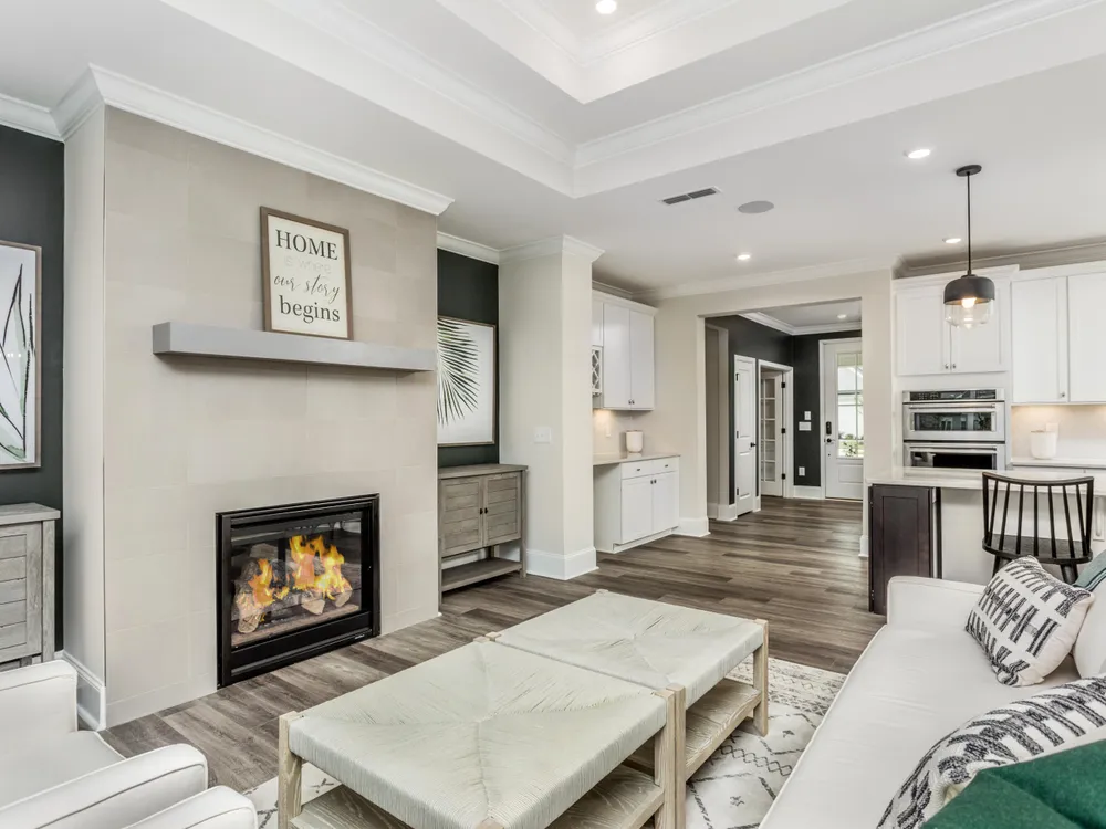 Former Design Center location! Enjoy this beautiful home with sunroom, only Stardom plan with this included feature. Great location on corner homesite, short walk to mailbox. Garage features ample additional storage space, check out the huge laundry room! Lawn maintenance included! Private Club includes tennis, pickel ball, bocce, fitness center and indoor and outdoor pools! Lifestyle director and club and meeting space. HOA also includes high speed internet and cable TV with Spectrum. Come Enjoy this amazing lifestyle. This former design center home won't last long. Inside, you'll find a gourmet kitchen that's a chef's dream, complete with premium finishes, expansive countertops, and a spacious island. The gathering room is warm and inviting with a cozy fireplace and tray ceilings that add architectural elegance. The owner's suite is a true sanctuary, featuring its own tray ceiling, spa-like bath, and serene backyard views. Additional highlights include a 3-car garage, ideal for extra storage or workshop space, and thoughtfully designed living areas that combine style, comfort, and functionality. Don't miss the chance to own this extraordinary home that brings together modern luxury and timeless charm.