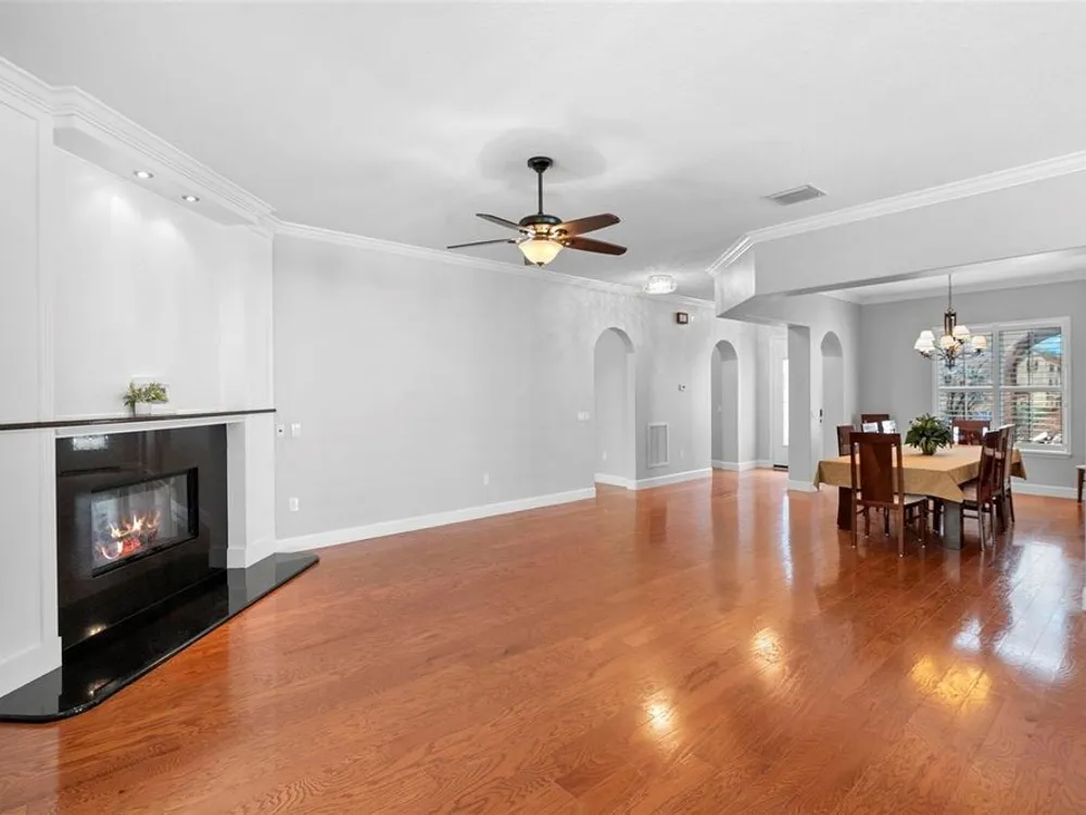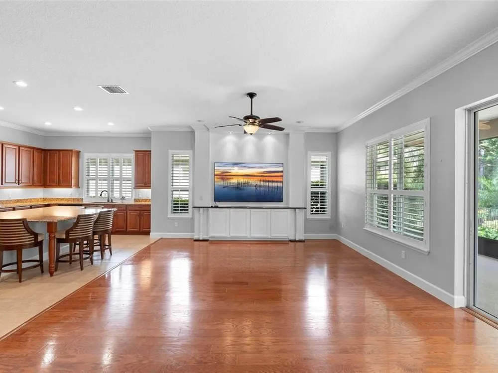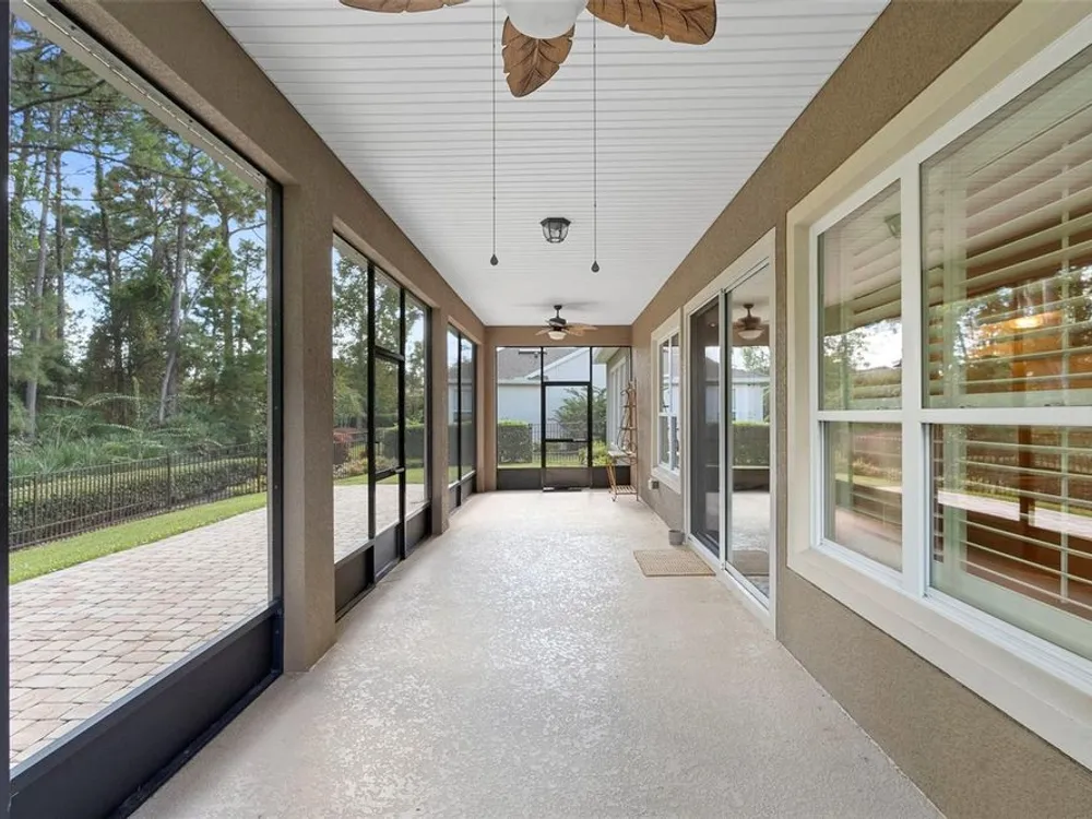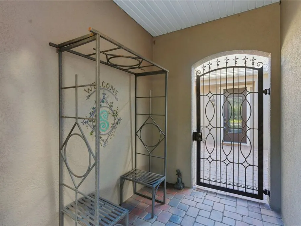 Welcome to this stately home in one of Central Florida’s most sought-after 55+ gated communities. This stunning 2-bedroom, 2.5-bath residence is packed with upgrades and thoughtful details that make it truly better than new. From the moment you arrive, you will be greeted by lush landscaping and a charming Italian Villa-style courtyard—a beautiful prelude to what awaits inside. Step through the front door and experience a spacious open-concept floor plan with luxurious touches throughout. The gourmet kitchen is a chef’s dream, featuring granite countertops, a built-in oven, microwave, refrigerator, kitchen island, and butler’s pantry. With loads of cabinetry, meal prep and entertaining are a breeze. Just off the kitchen, the family room flows seamlessly into the formal living room, where a gas fireplace sets the mood for cozy Florida evenings. Hosting guests? The expansive formal dining room offers plenty of space for gatherings and special occasions. This home is adorned with plantation shutters on every window, ceiling fans, and decorative light fixtures that elevate each space with style and comfort. Need a quiet space to work or reflect? The study offers a serene setting complete with a custom mural of the Mediterranean Sea. Your primary en-suite is a personal sanctuary, featuring his-and-hers sinks, a luxurious garden tub, an oversized walk-in shower, and a show-stopping walk-in closet with room for everything. The second bedroom boasts a grand closet with built-ins. The additional powder room adds extra convenience for guests and showcases a beautiful mirror and soft lighting. The private screened porch overlooks a dense conservation area, offering peaceful views and privacy. Step outside to enjoy a beautifully paved patio—ideal for morning coffee or evening cocktails. If you have been searching for a home that combines elegance, function, and peace of mind, Close to schools, shopping, I4, and beautiful downtown DeLand! 1128 Heron Point Way delivers in every way. Welcome home!