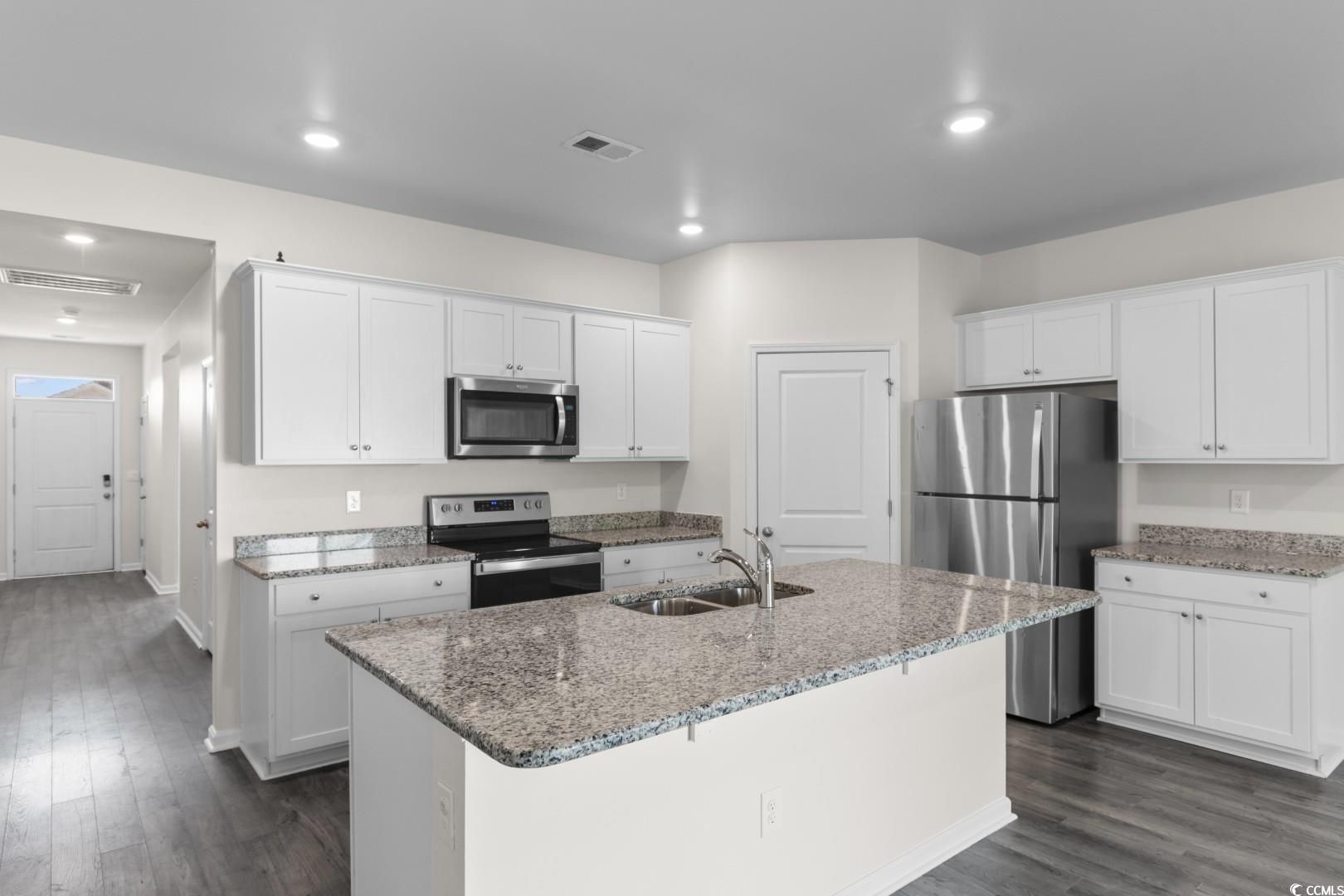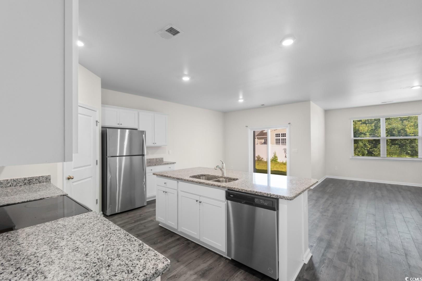 Welcome to 1128 Sennema Circle, where modern comfort meets coastal charm. This beautifully appointed 4-bedroom, 2-bath home features an open-concept design, ideal for both everyday living and entertaining. The gourmet kitchen is equipped with granite countertops, stainless steel appliances, crisp white cabinetry, and a spacious breakfast bar that flows effortlessly into the bright and airy living area. Luxury vinyl plank flooring has been recently added to all bedrooms, combining style with durability. The tranquil primary suite offers a large walk-in closet, dual vanities, and an oversized, spa-inspired shower for the ultimate retreat. A brand-new washer and dryer are also included for your convenience. Additional highlights include a two-car garage and smart home technology with a video doorbell, smart thermostat, and keyless entry for added ease and peace of mind. Ideally located just minutes from the sandy shores of Myrtle Beach, the Intracoastal Waterway, Market Common, and the Murrells Inlet MarshWalk, you'll also enjoy quick access to premier golf courses, boat landings, shopping, dining, and entertainment. Experience the perfect blend of luxury and coastal living--schedule your private tour today!