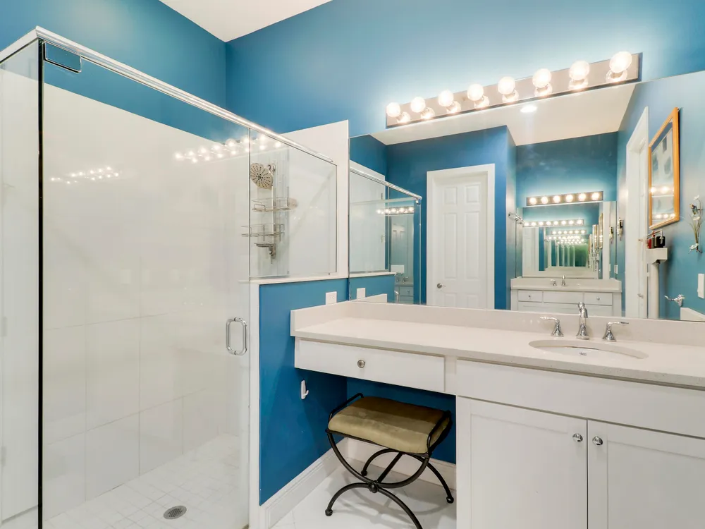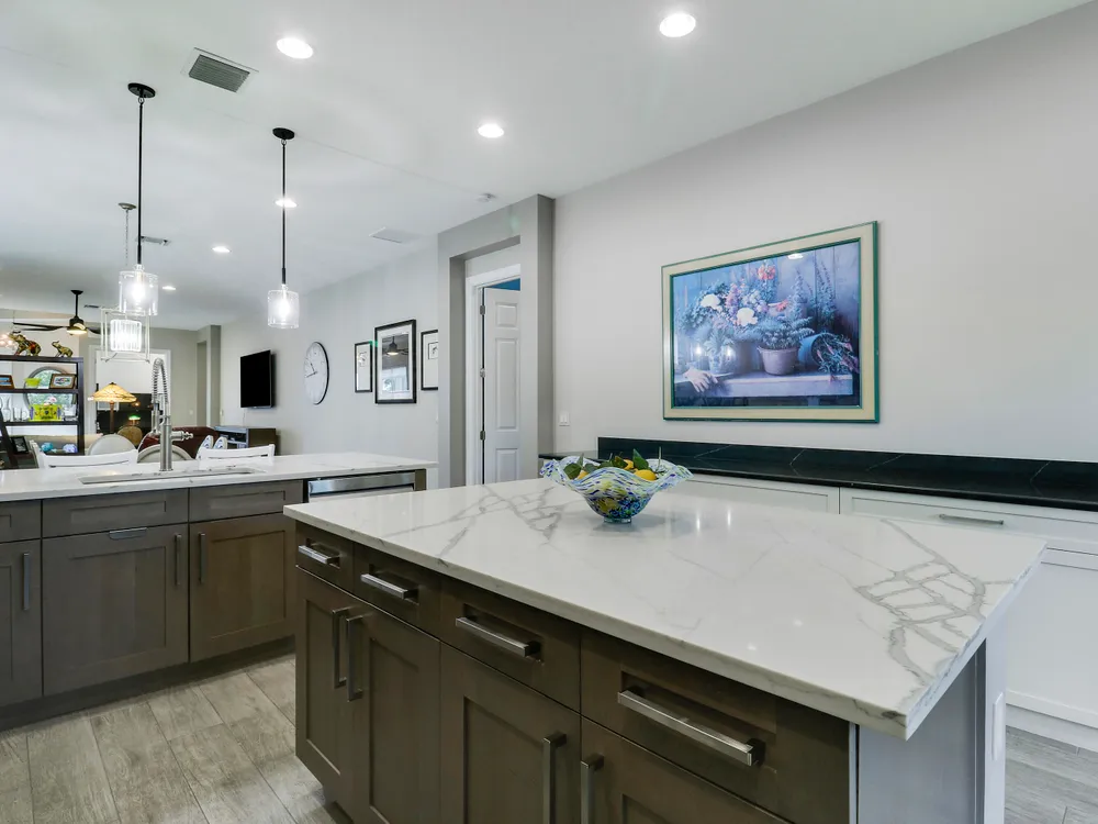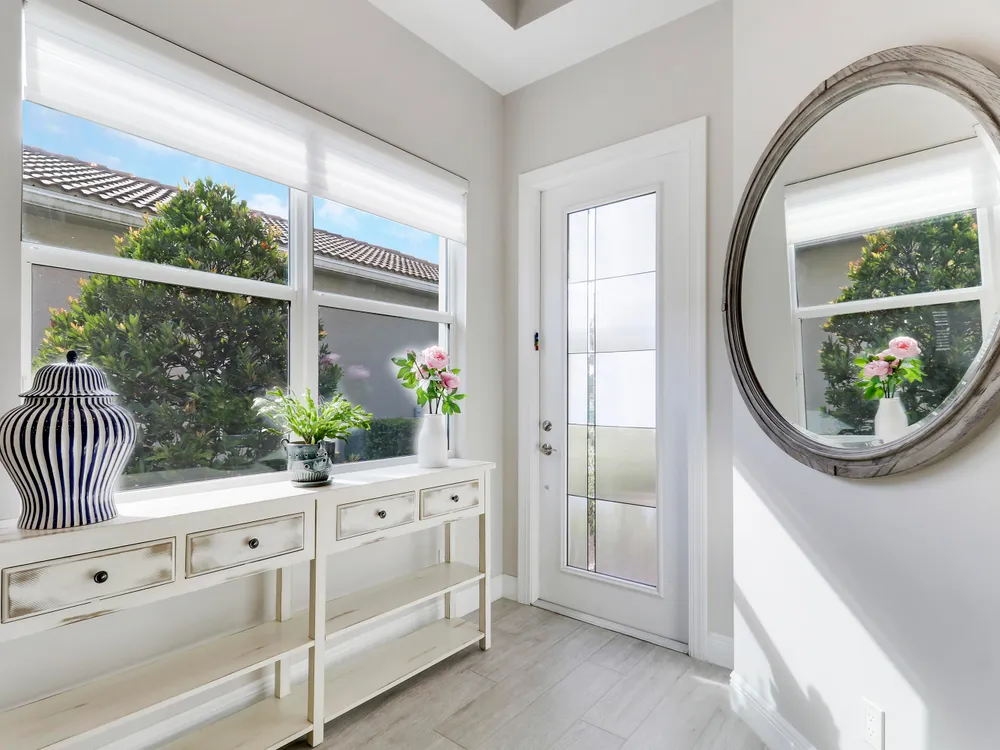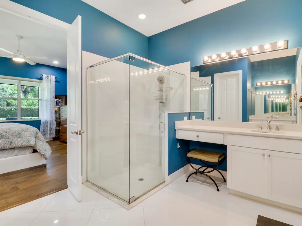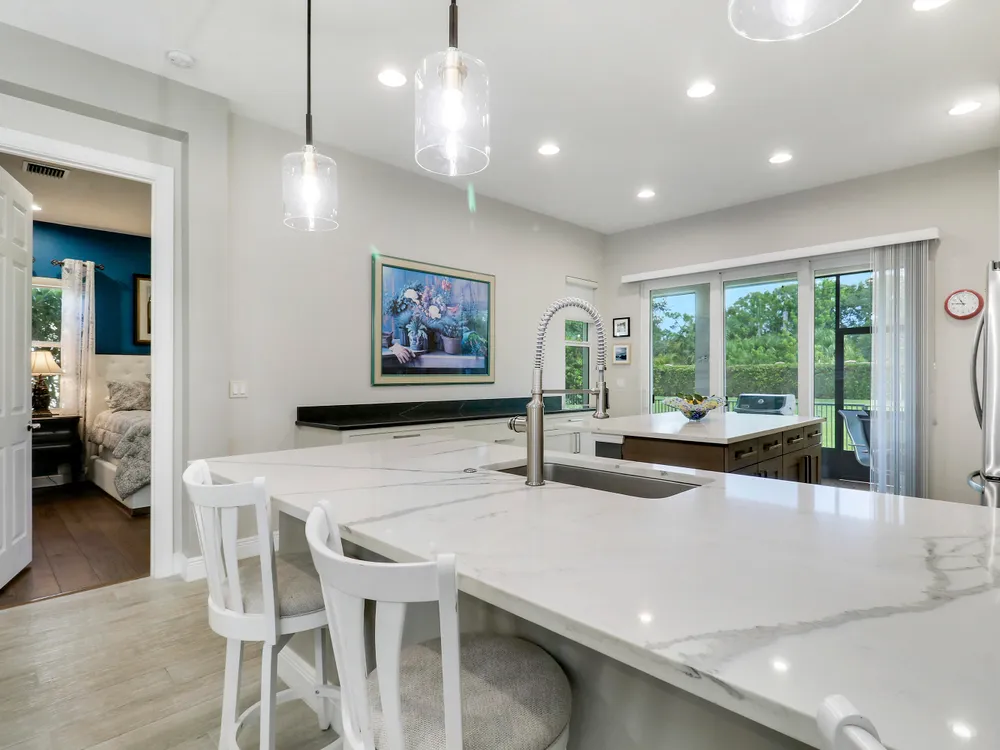 - Entry Level Living Area, French Door(s)/Atrium Door(s), Pantry, Split Bedrooms, Walk-In Closet(s), Home Office, Living/Dining Room, Snack Bar, Impact Glass, Dual Sinks, Primary Downstairs, Separate Shower