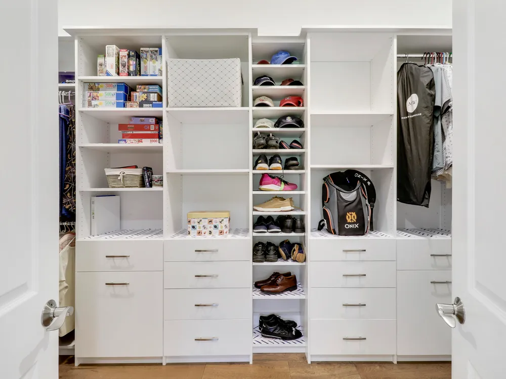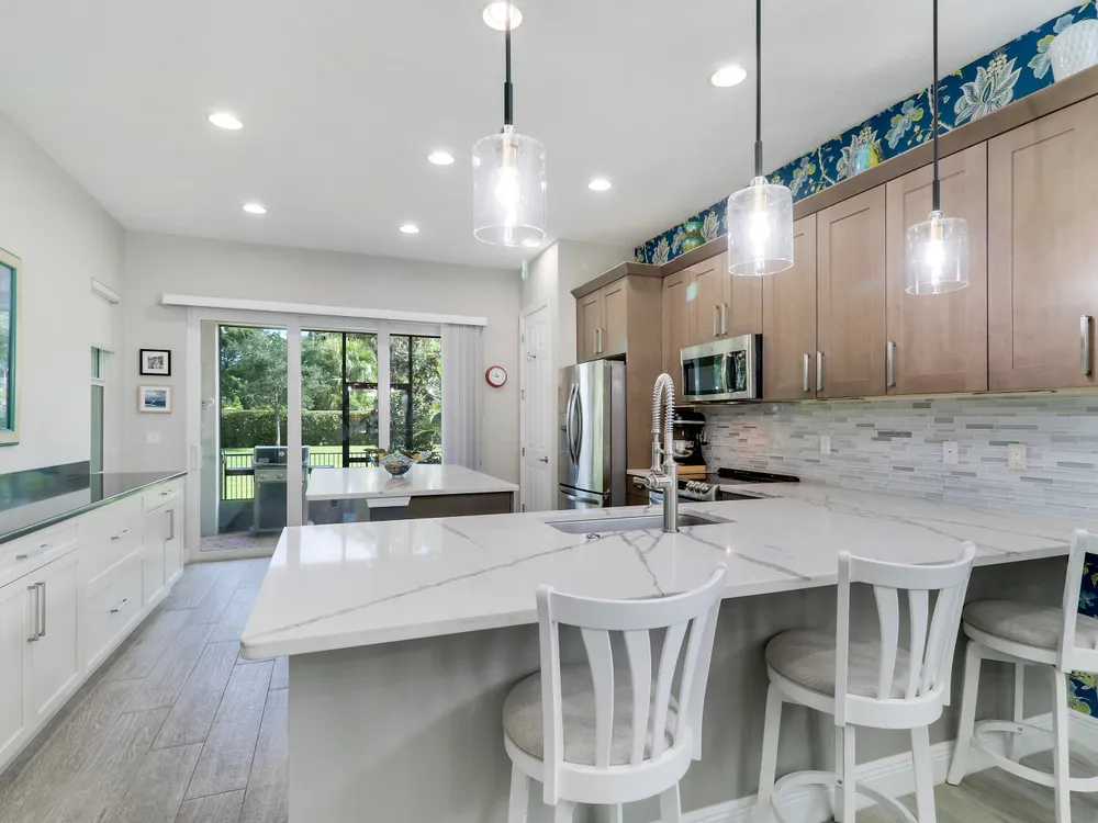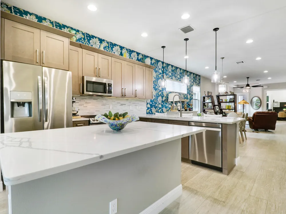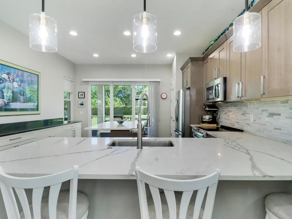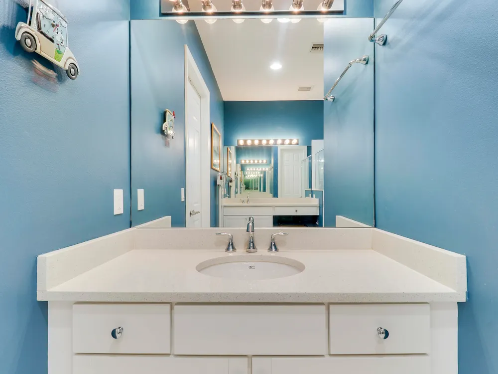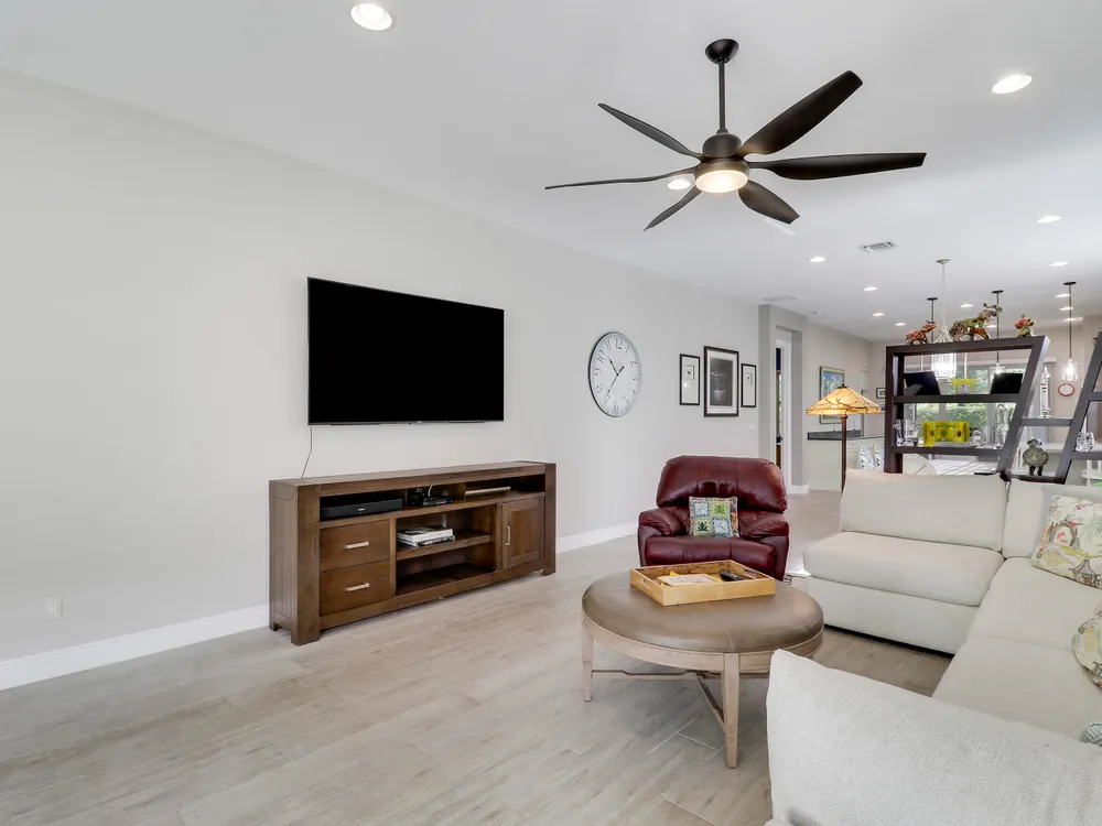 - Entry Level Living Area, French Door(s)/Atrium Door(s), Pantry, Split Bedrooms, Walk-In Closet(s), Home Office, Living/Dining Room, Snack Bar, Impact Glass, Dual Sinks, Primary Downstairs, Separate Shower