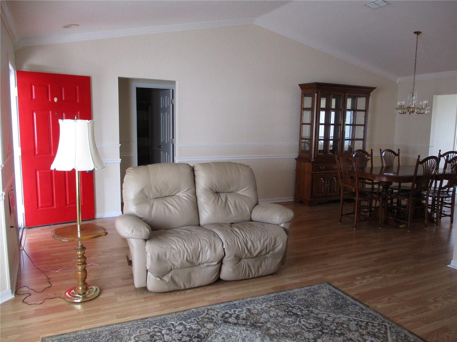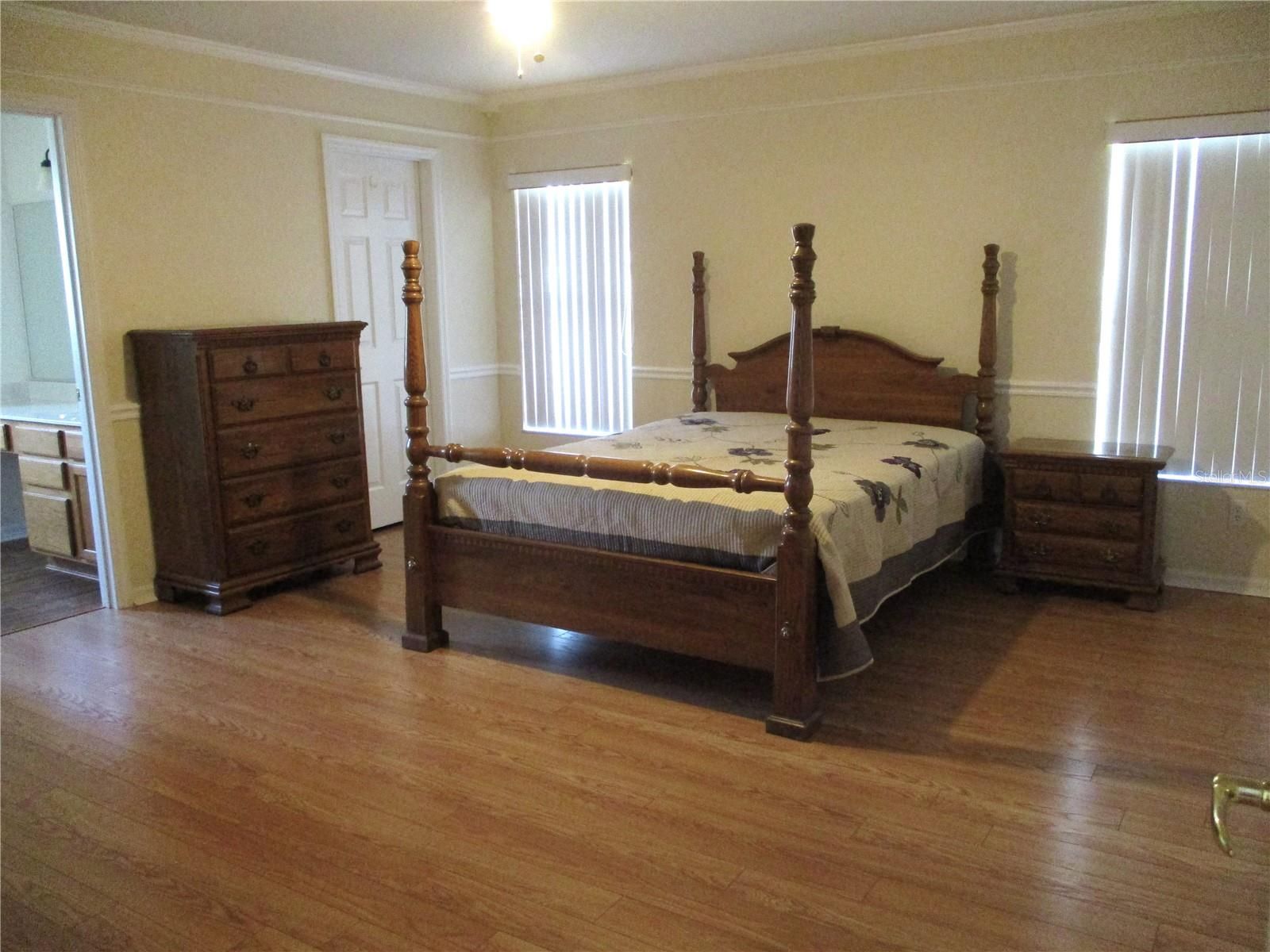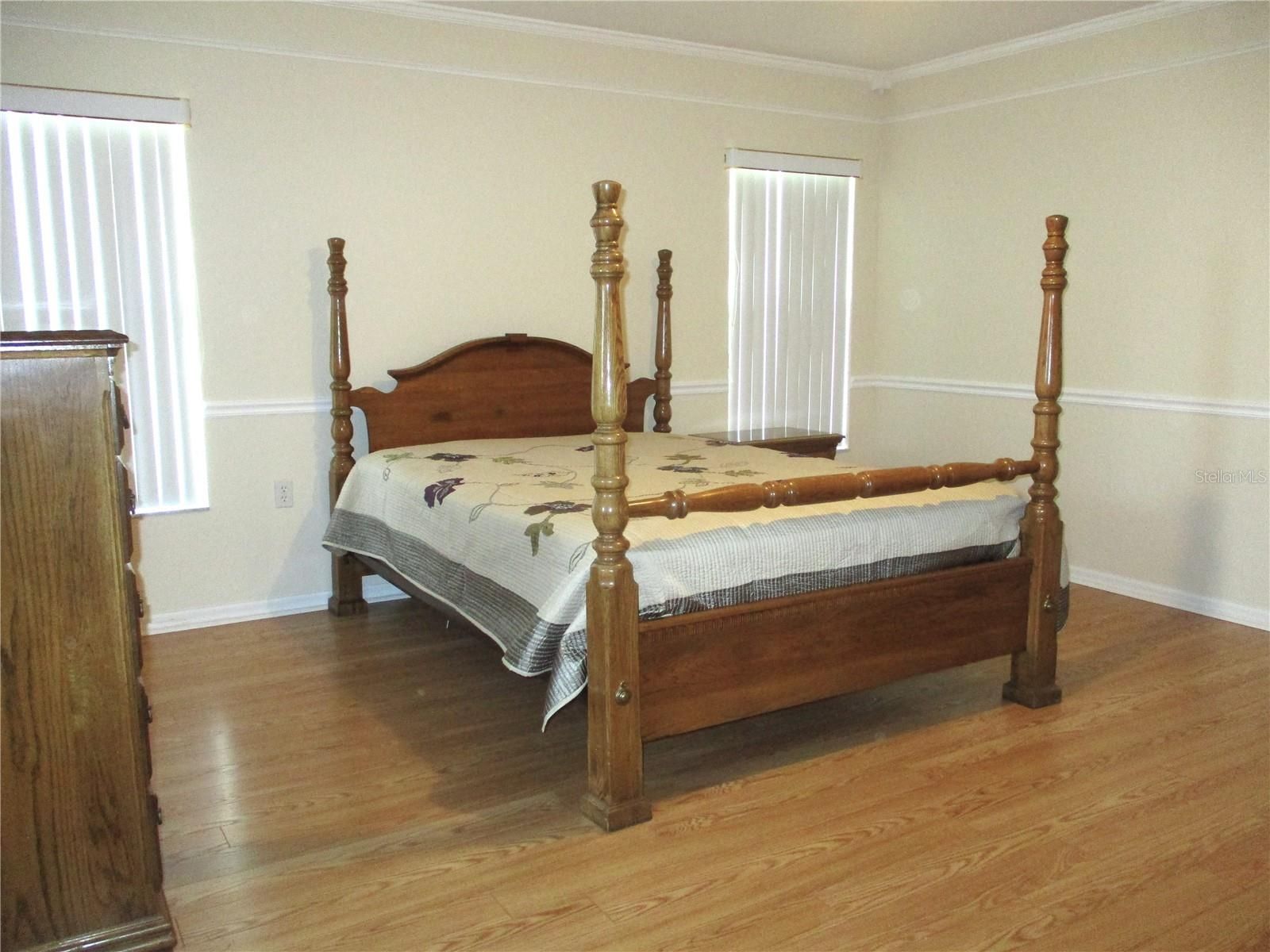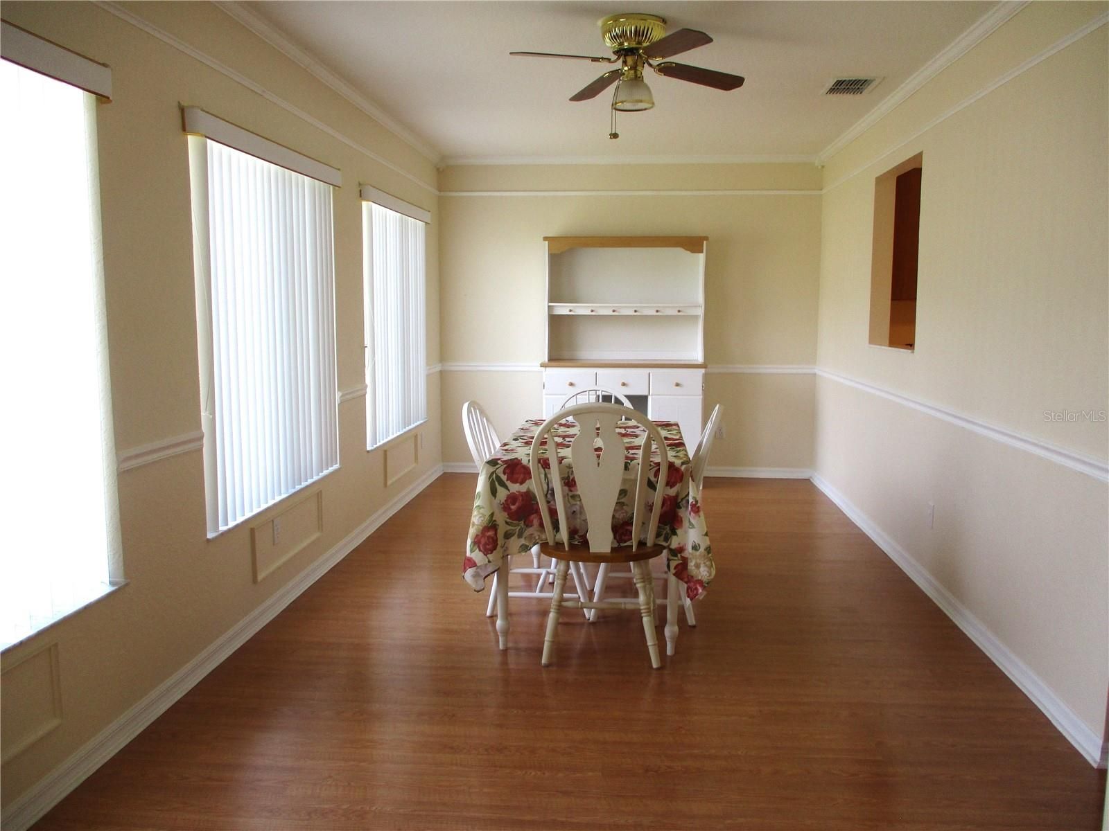 - Cathedral Ceiling(s), Ceiling Fan(s), Chair Rail, Crown Molding, Eat-in Kitchen, Main Level Primary, Split Bedrooms, Thermostat, Walk-In Closet(s)