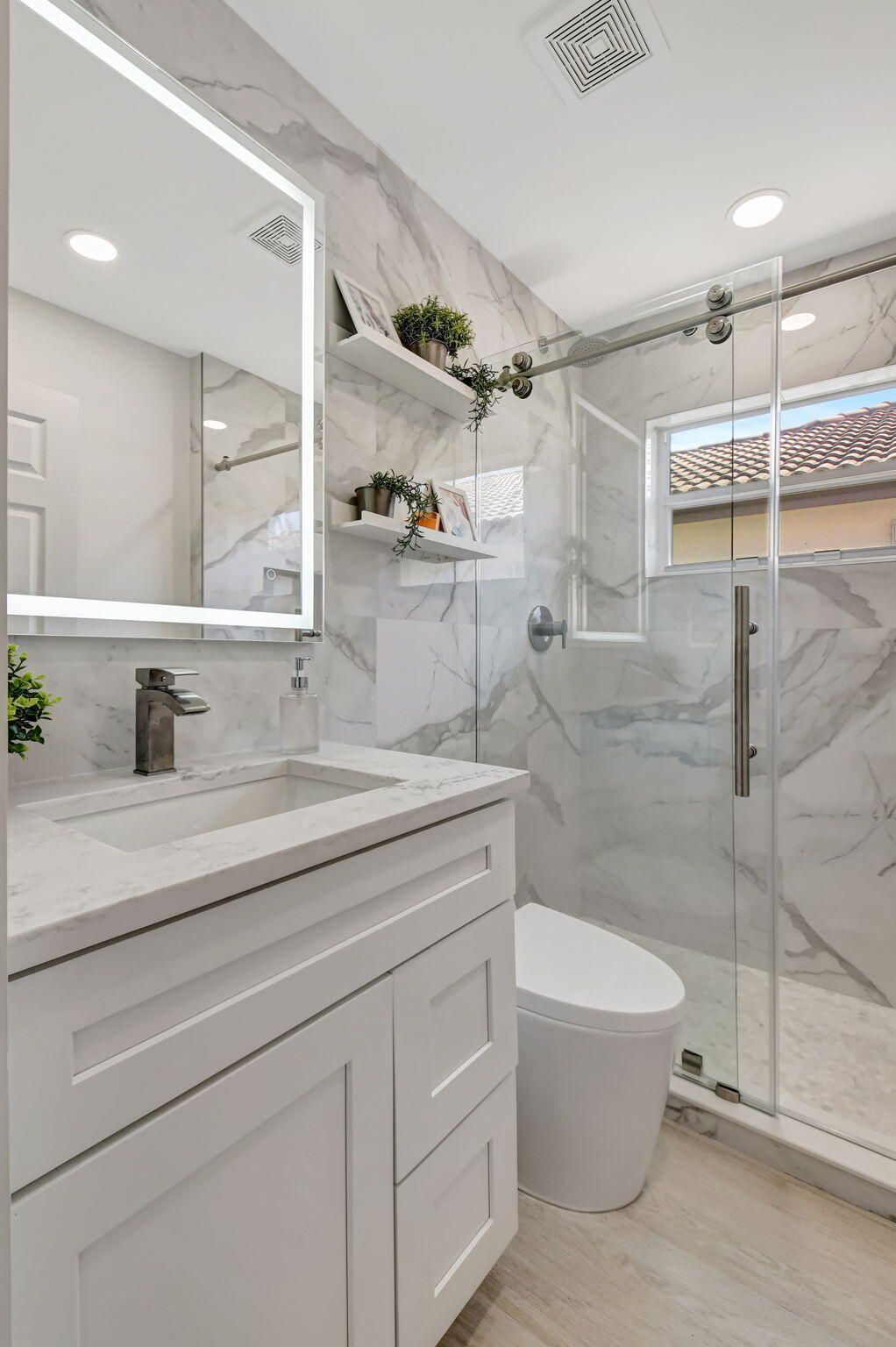 New Roof Installed! Beautifully renovated home in the sought-after 55+ Valencia Lakes community. This modern residence features premium finishes, large-format porcelain tile, and a stunning new kitchen with custom cabinetry, waterfall quartz countertops, and a spacious island perfect for entertaining. The spa-inspired primary bath offers floor-to-ceiling porcelain tile, a sleek walk-in shower with dual rain heads and handheld wand, and upgraded LED lighting. With stainless steel appliances and numerous premium upgrades, this move-in-ready home delivers exceptional style, comfort, and value. Don't miss this opportunity!